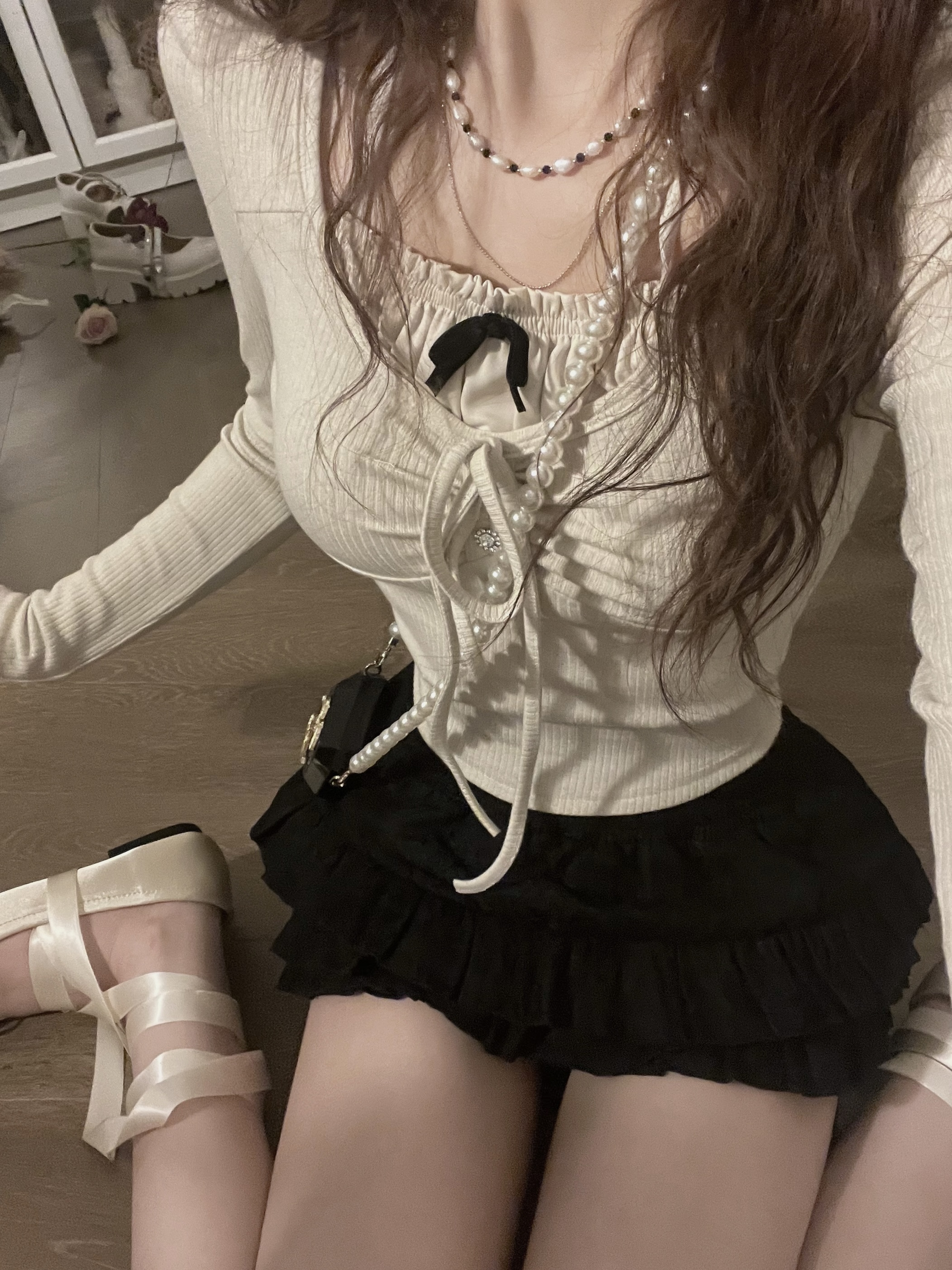Ежедневный матч с короткими юбками или брюками с высокой талией высокий и тонкий