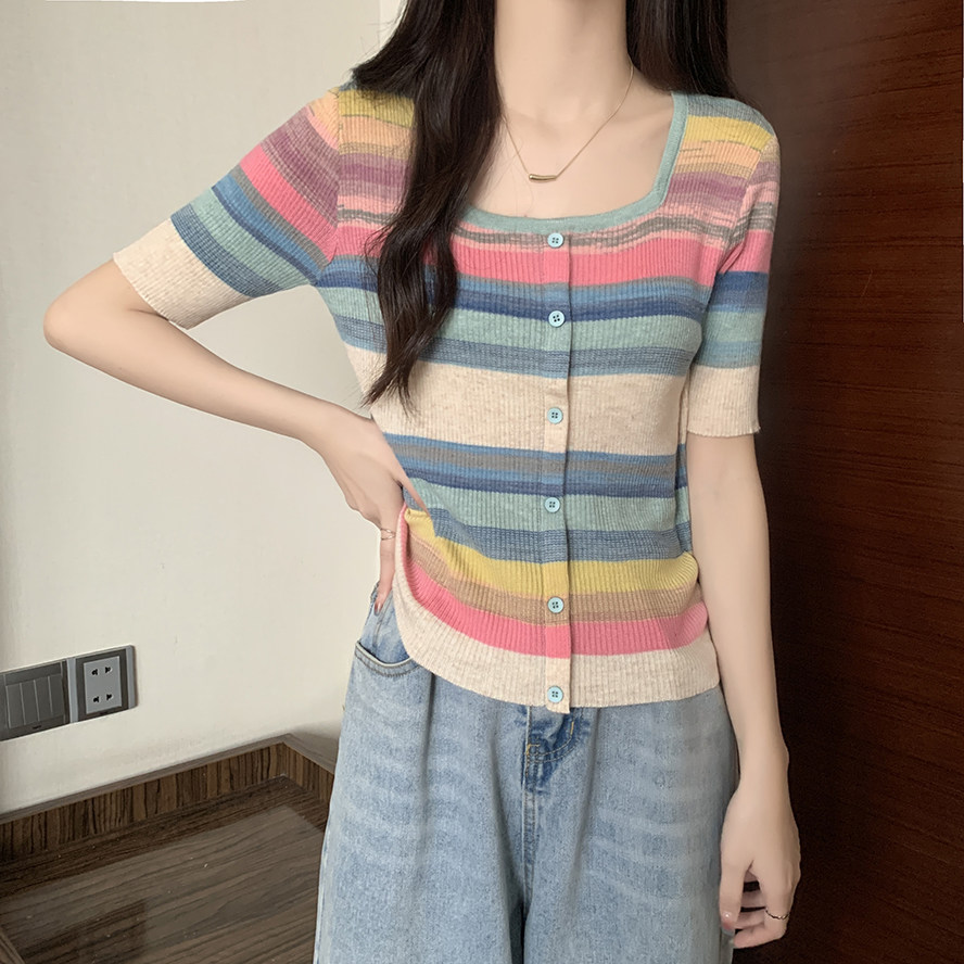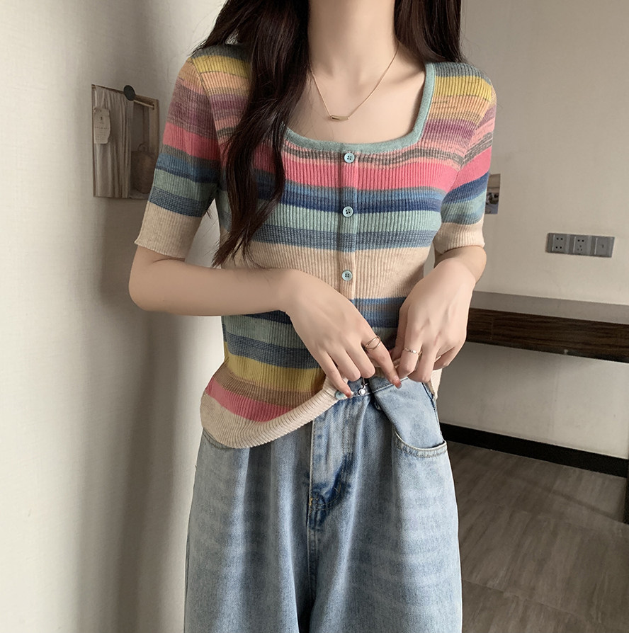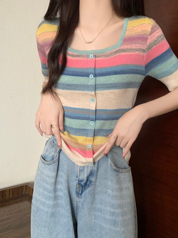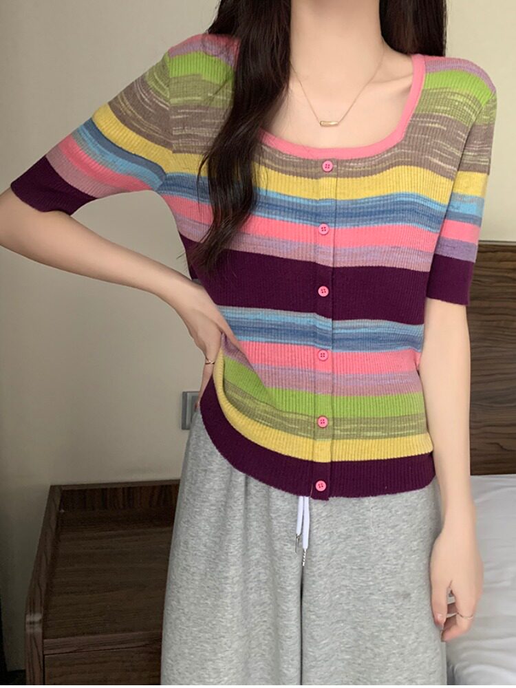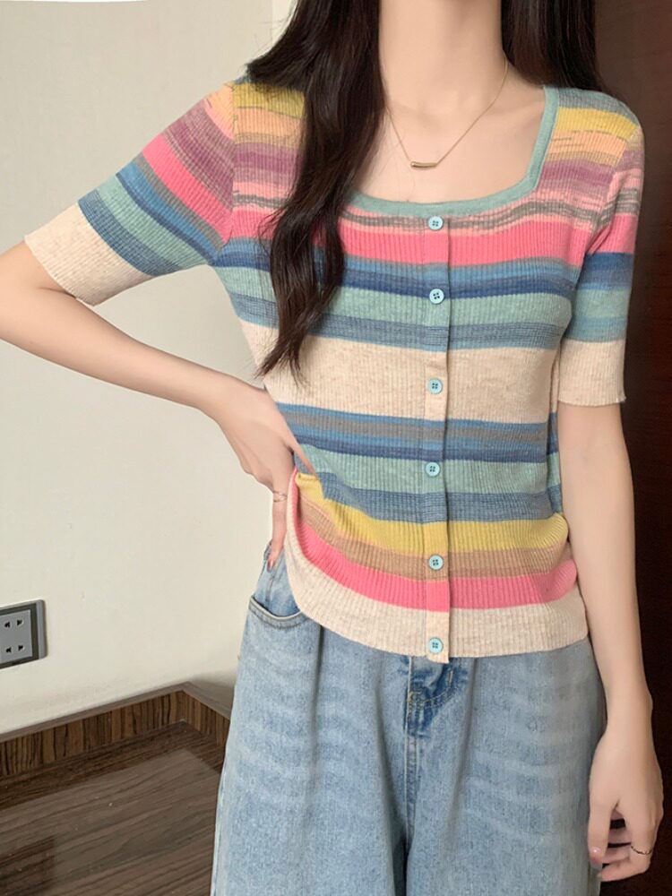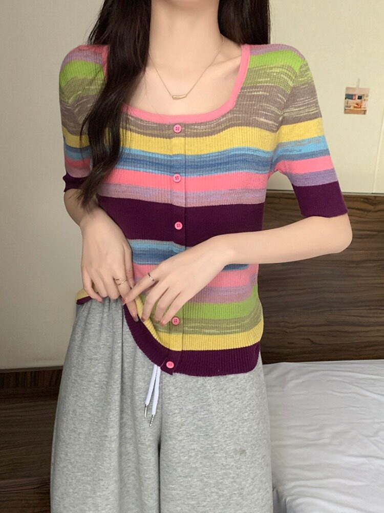 Летний трикотажный свитер, футболка, 2024 года, большой размер, короткий рукав