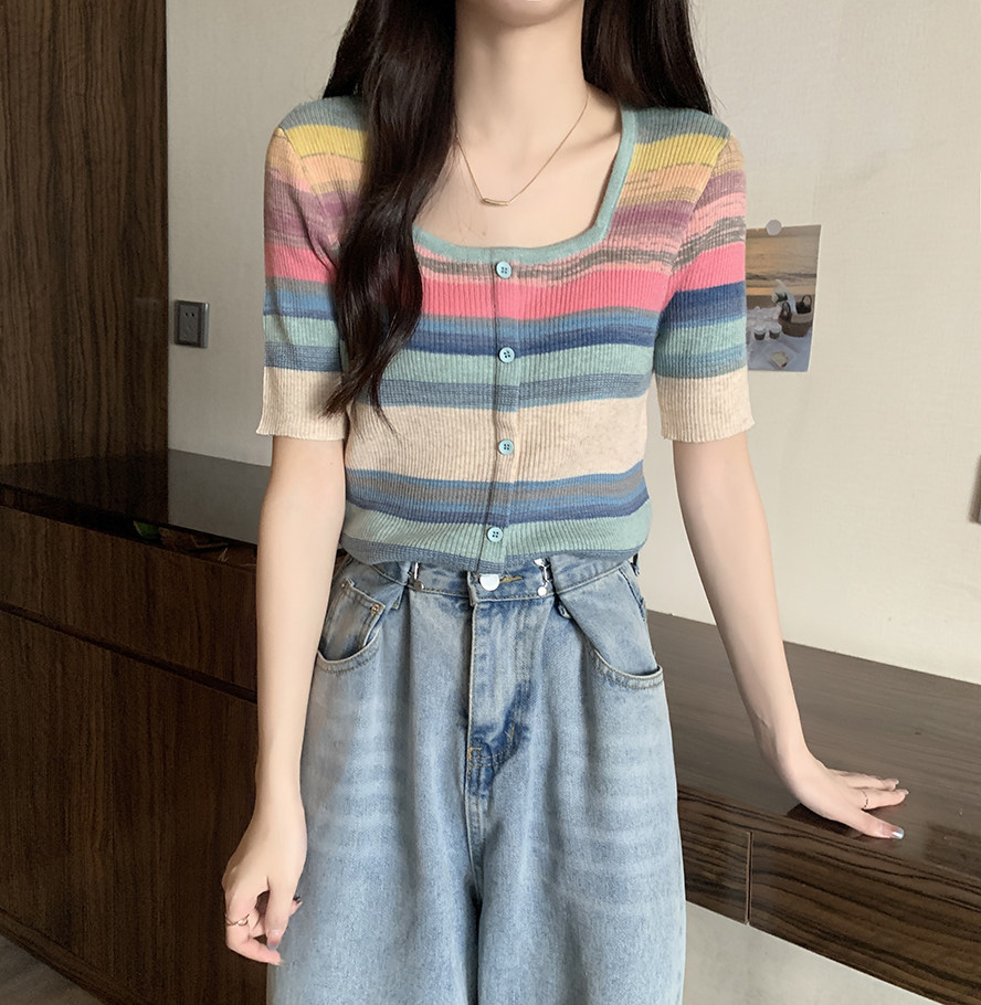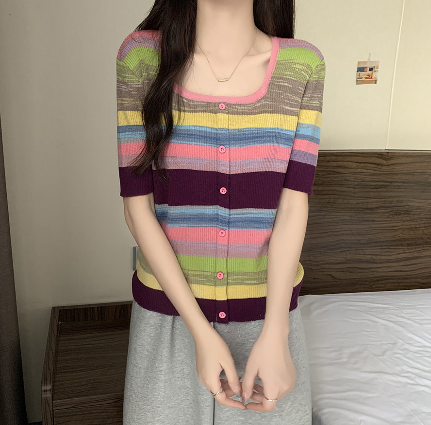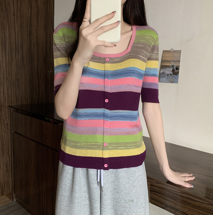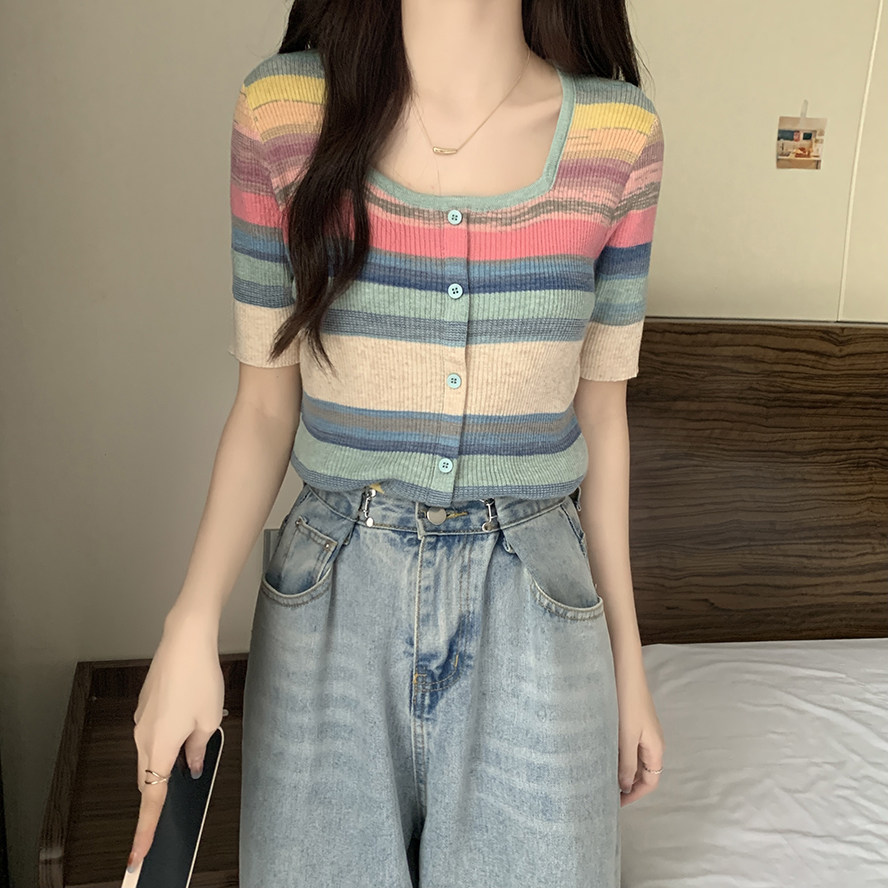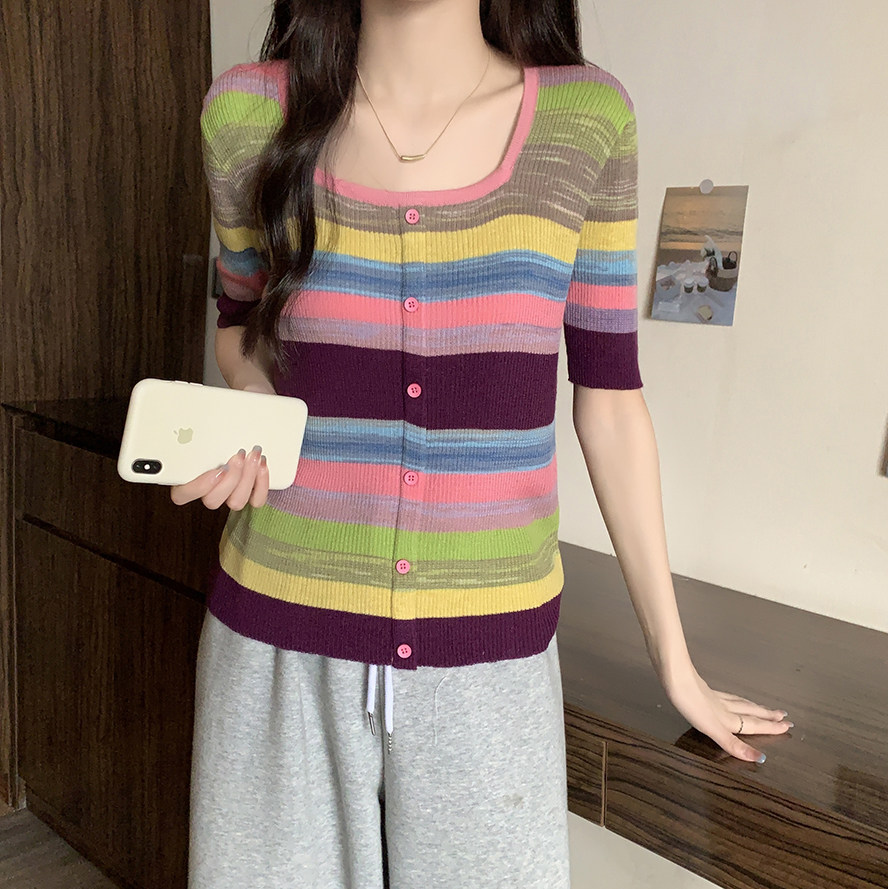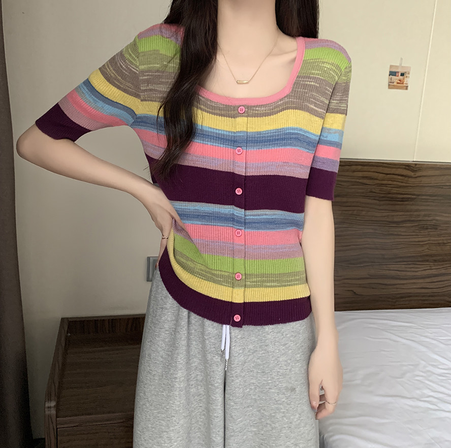 Летний трикотажный свитер, футболка, 2024 года, большой размер, короткий рукав