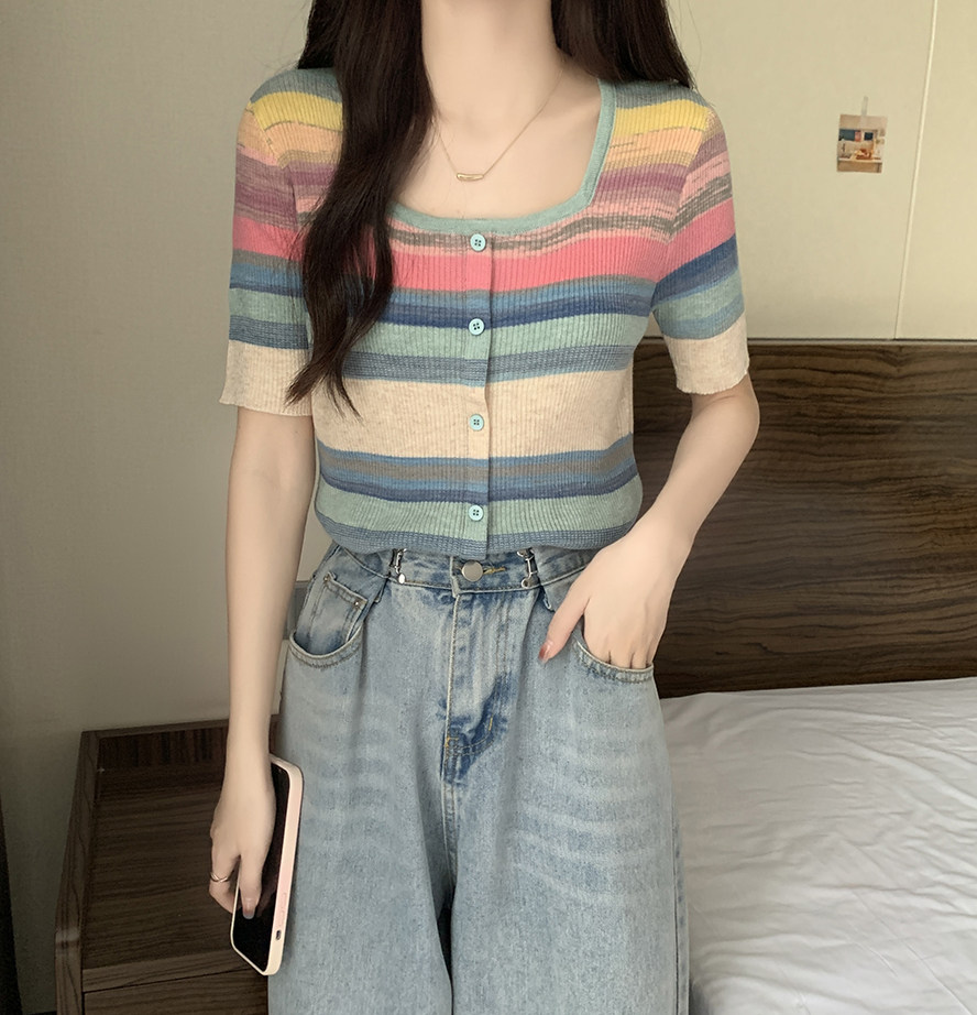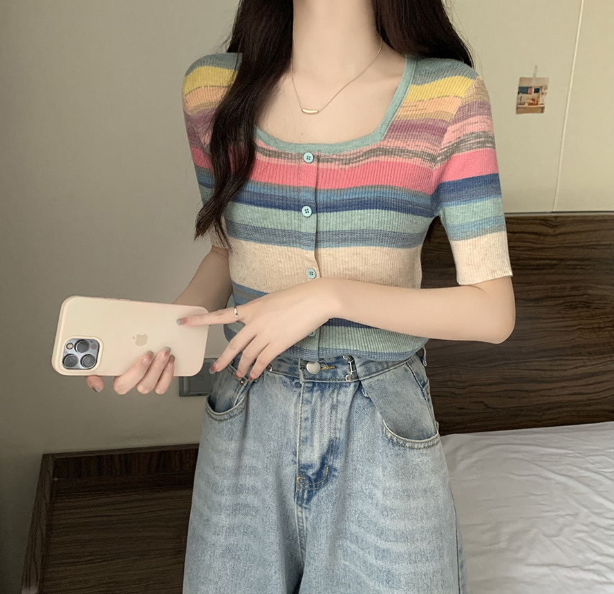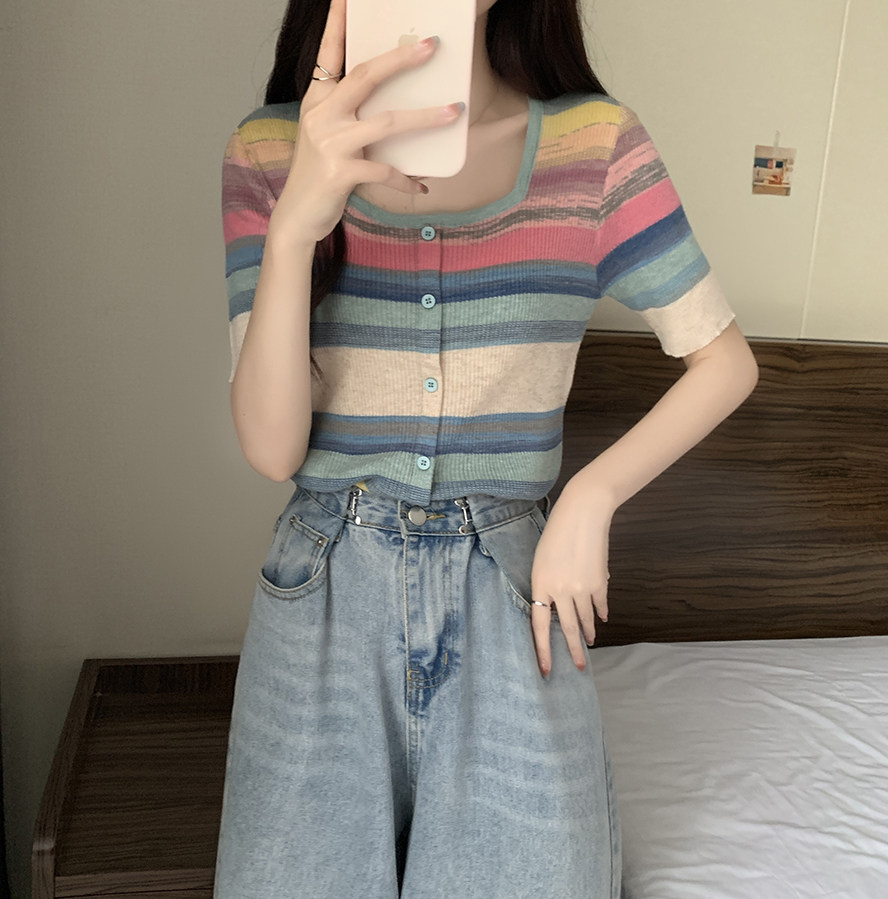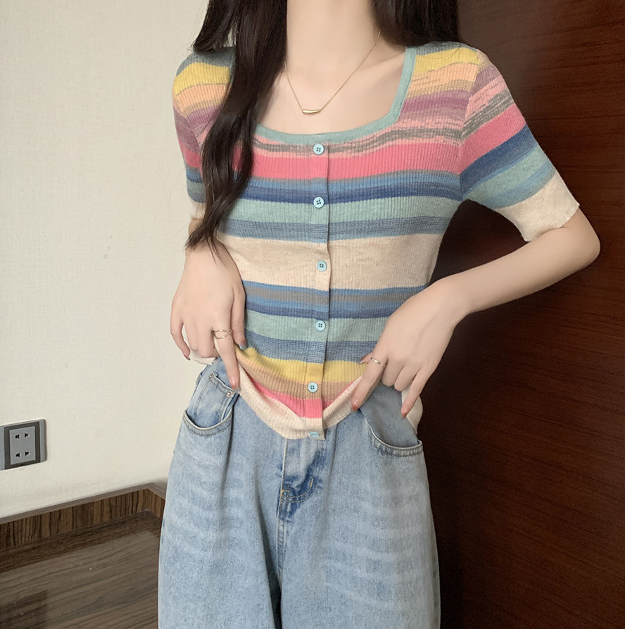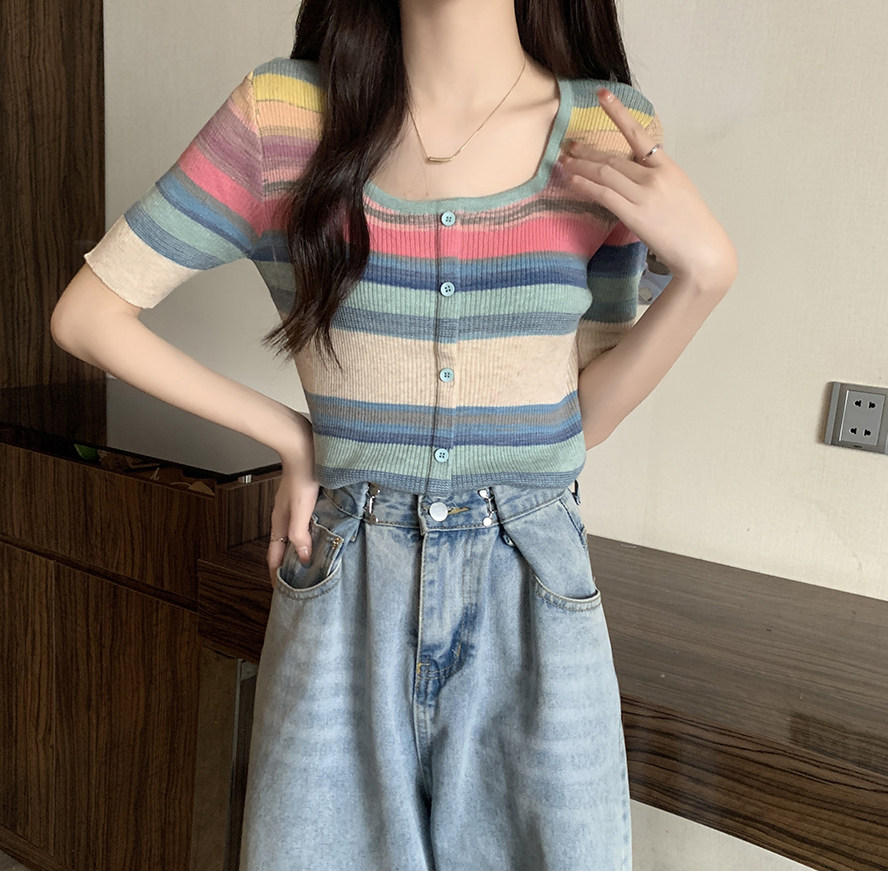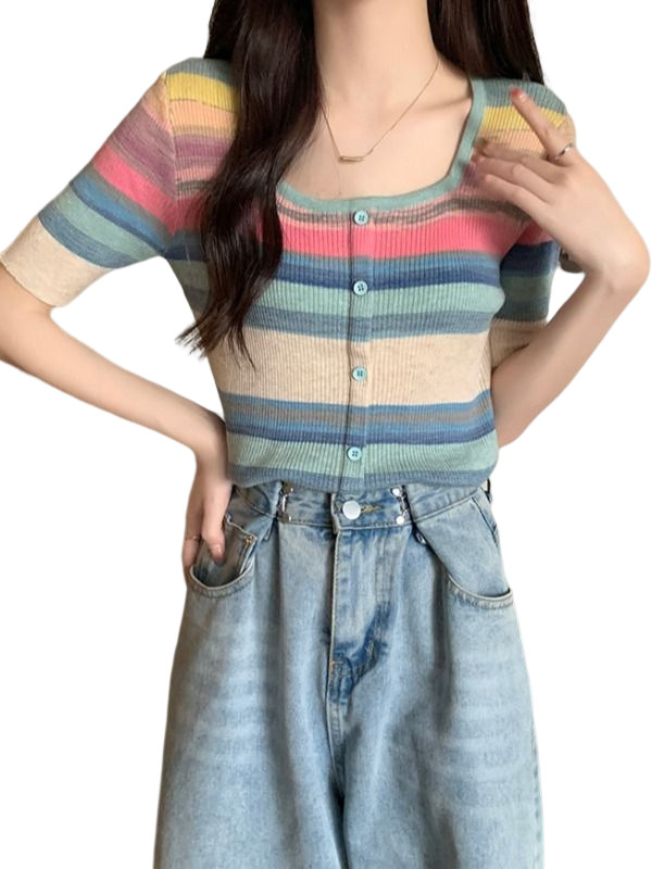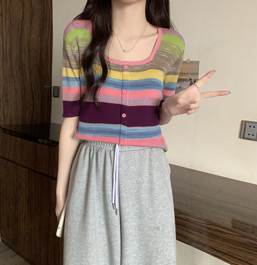 Летний трикотажный свитер, футболка, 2024 года, большой размер, короткий рукав
