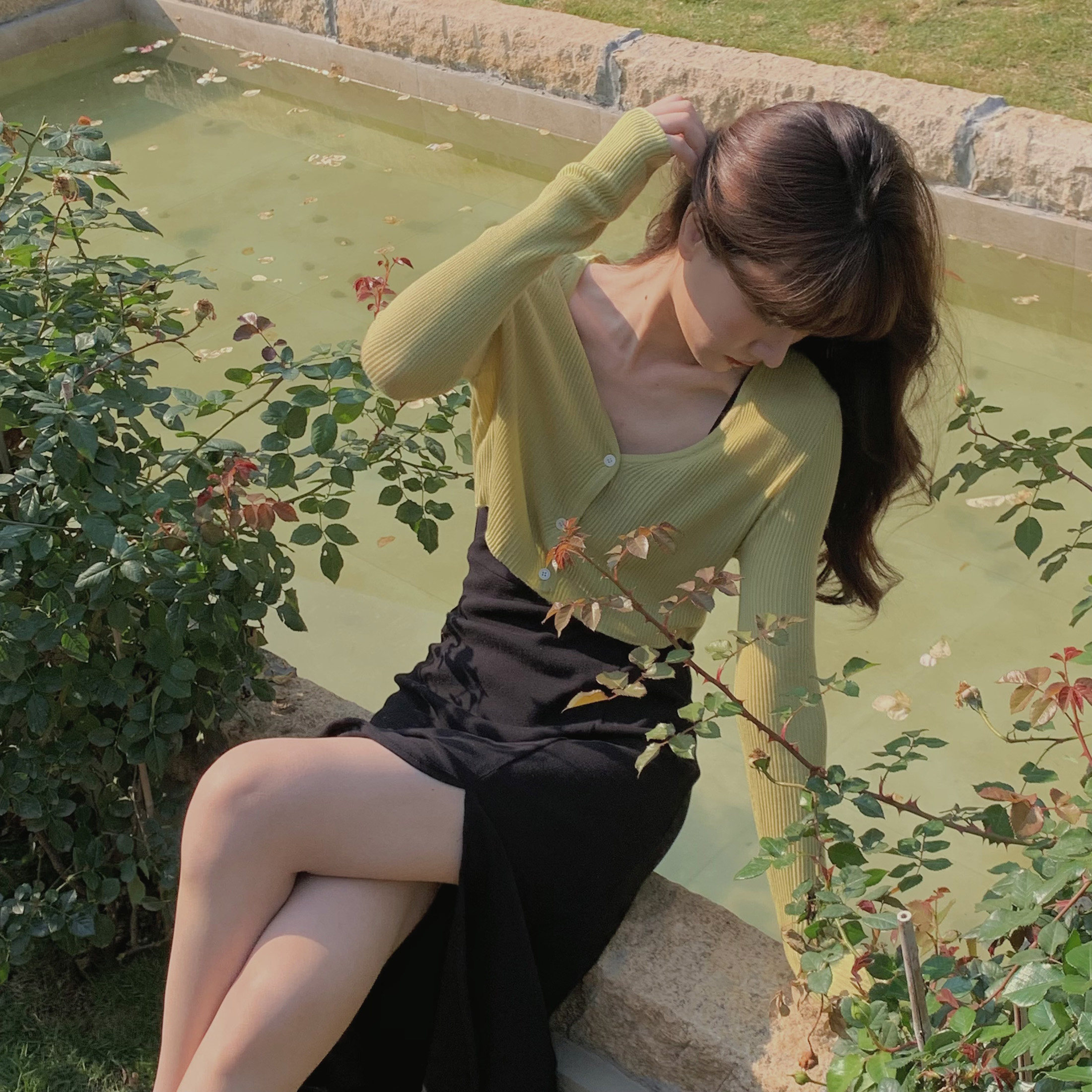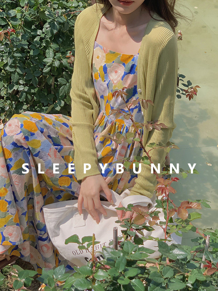 瞌睡兔 Шерстяной кардиган, весенний тонкий лонгслив, куртка, V-образный вырез