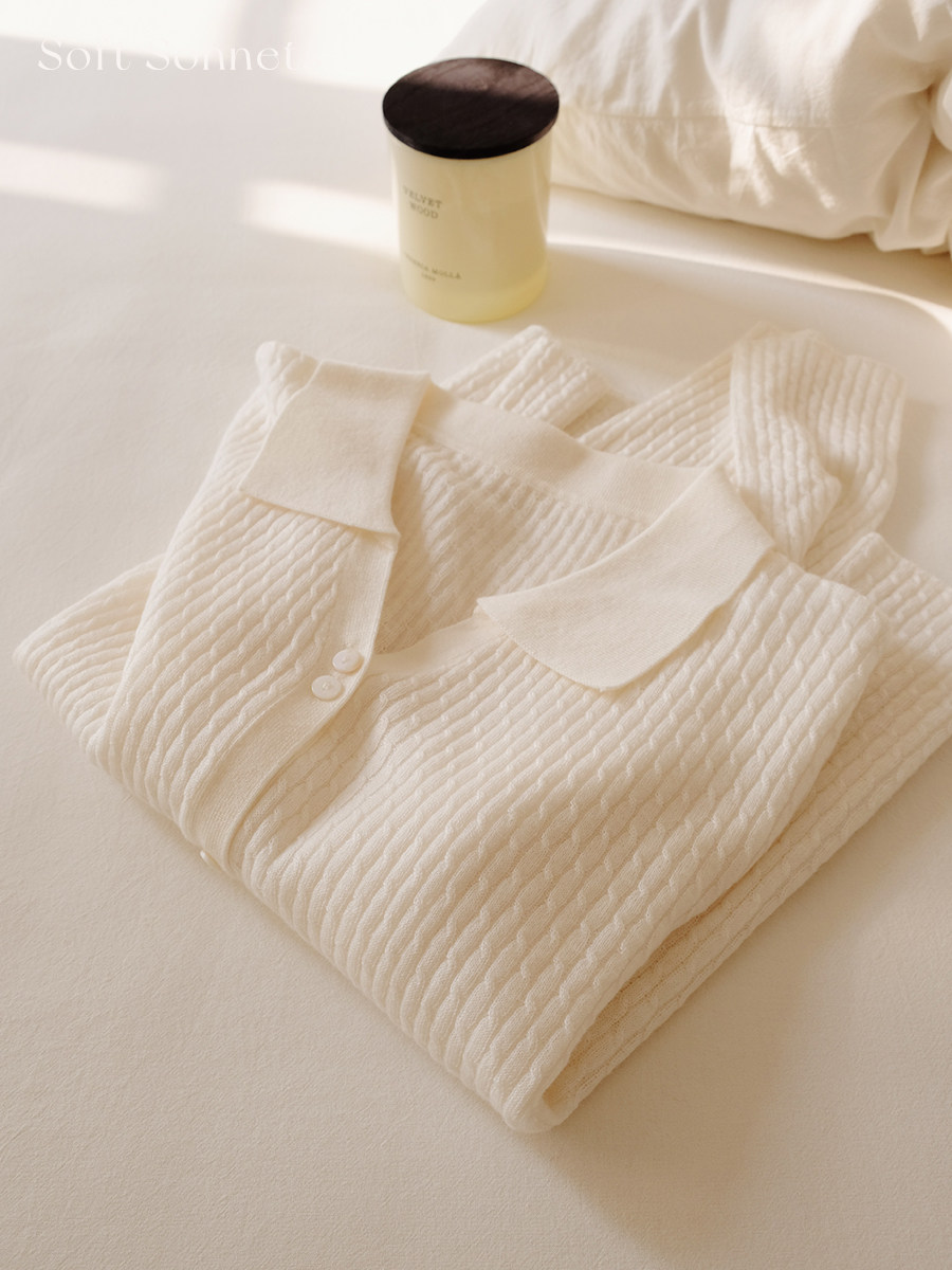Трикотажный осенний шерстяной кардиган, тонкий ретро свитер, французский стиль, воротник поло
