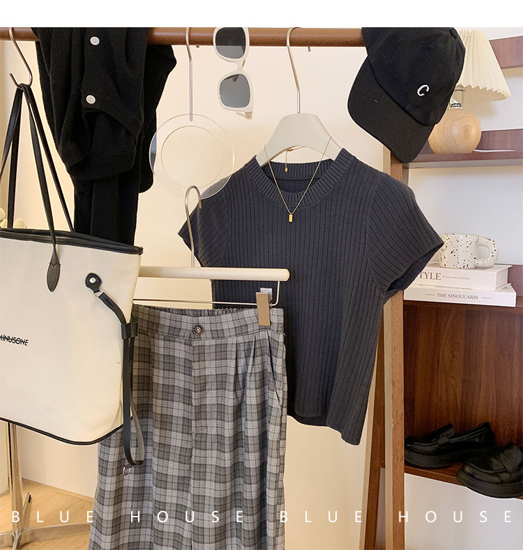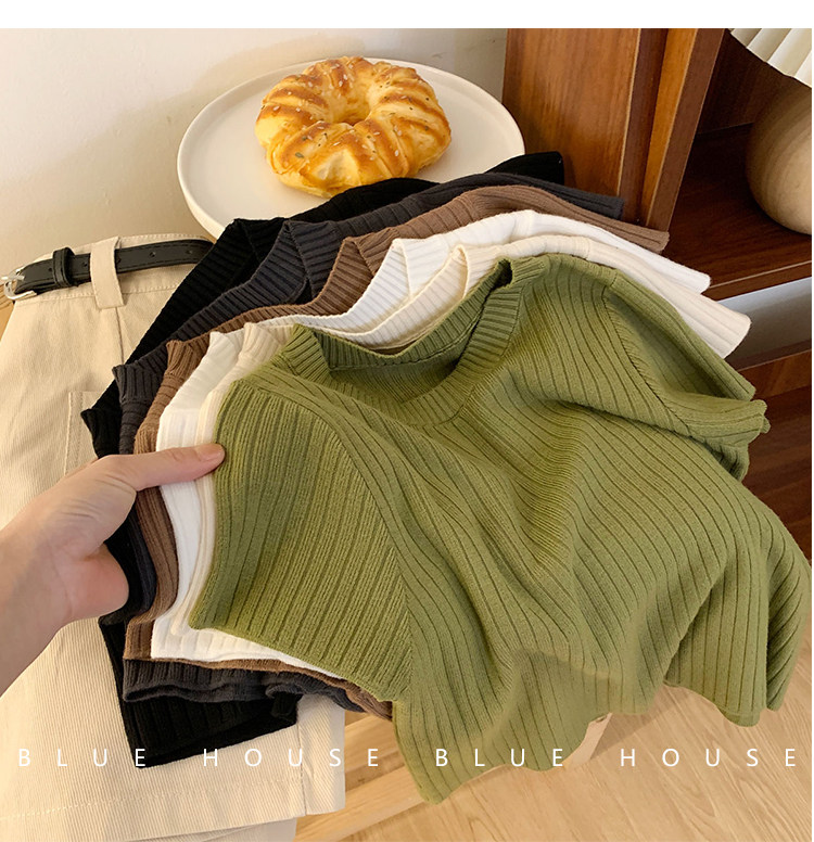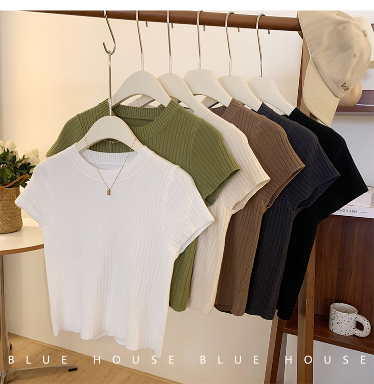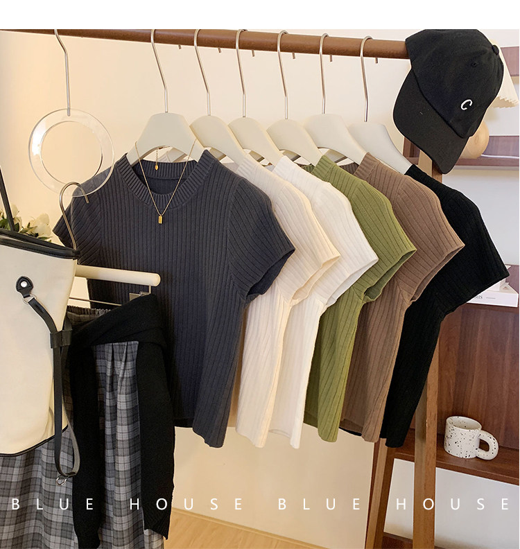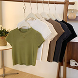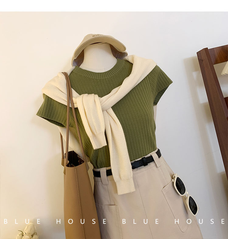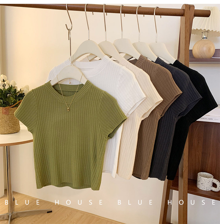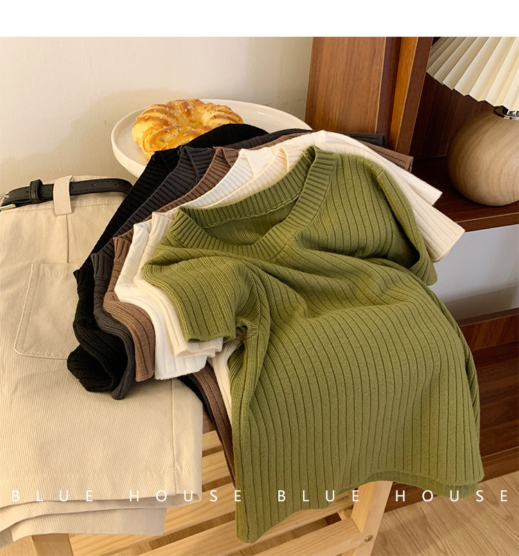 Ретро трикотажный летний базовый свитер, короткий рукав, в западном стиле