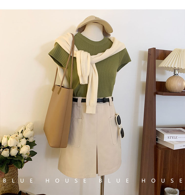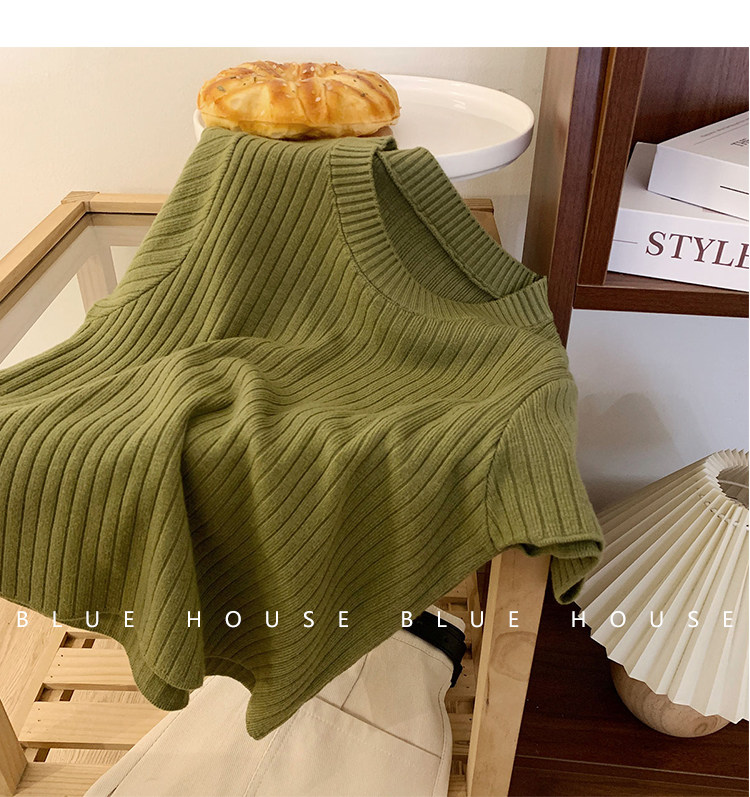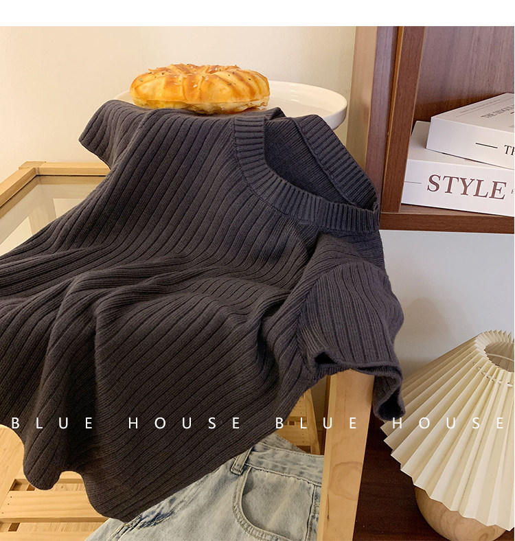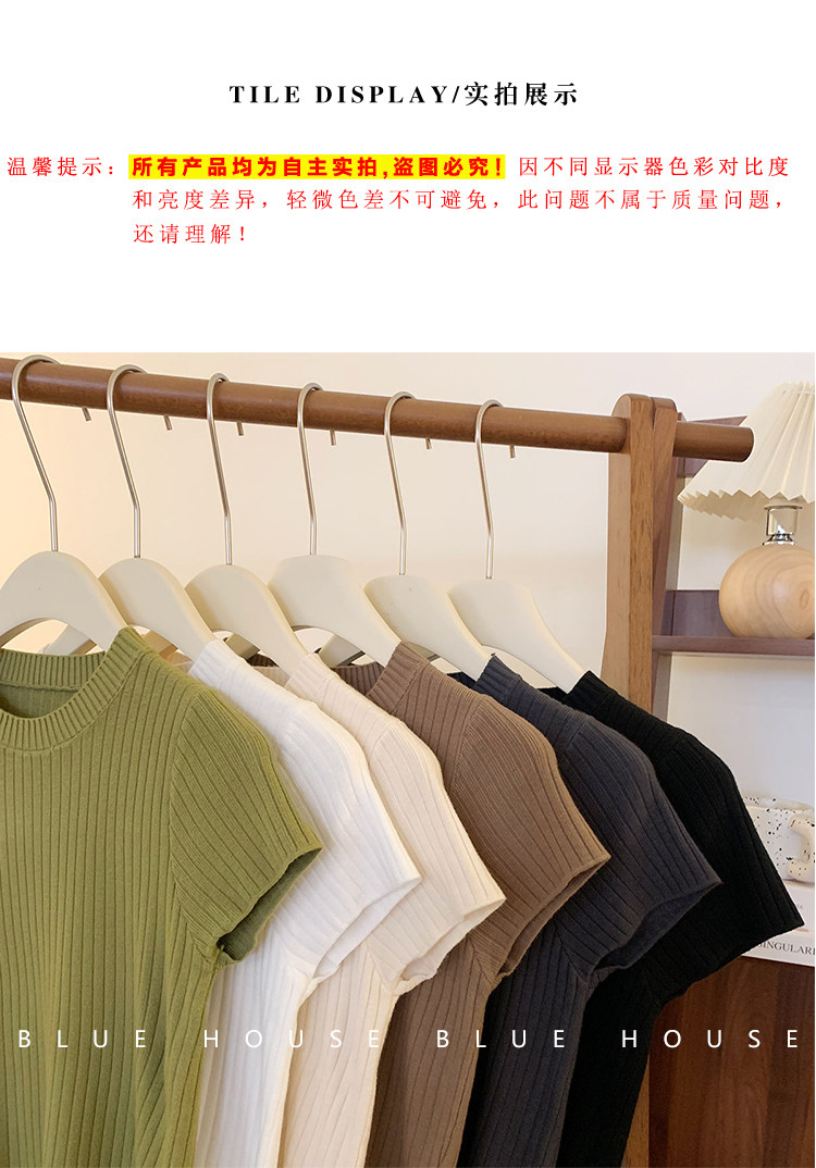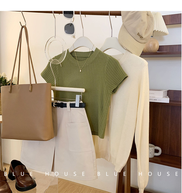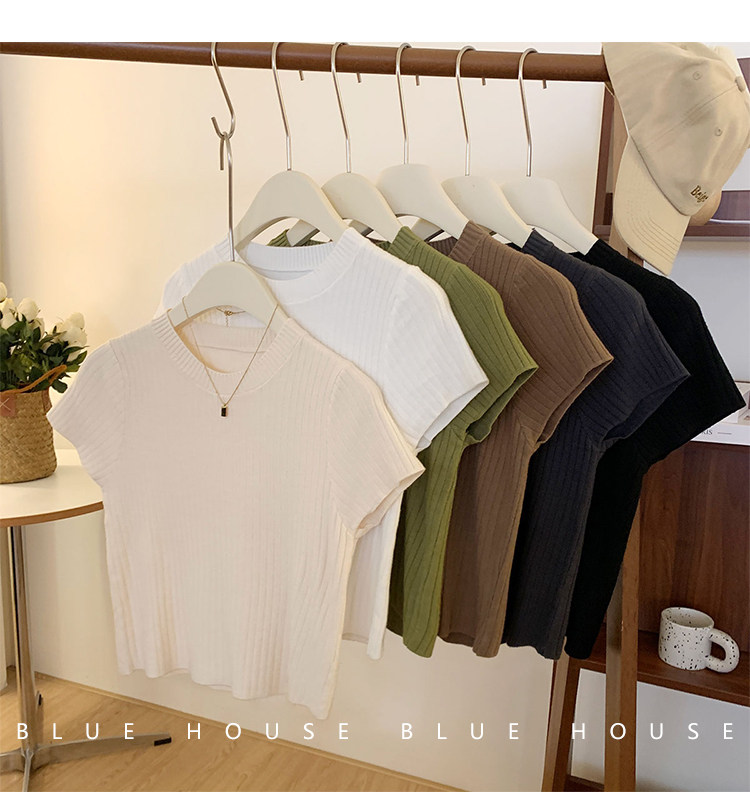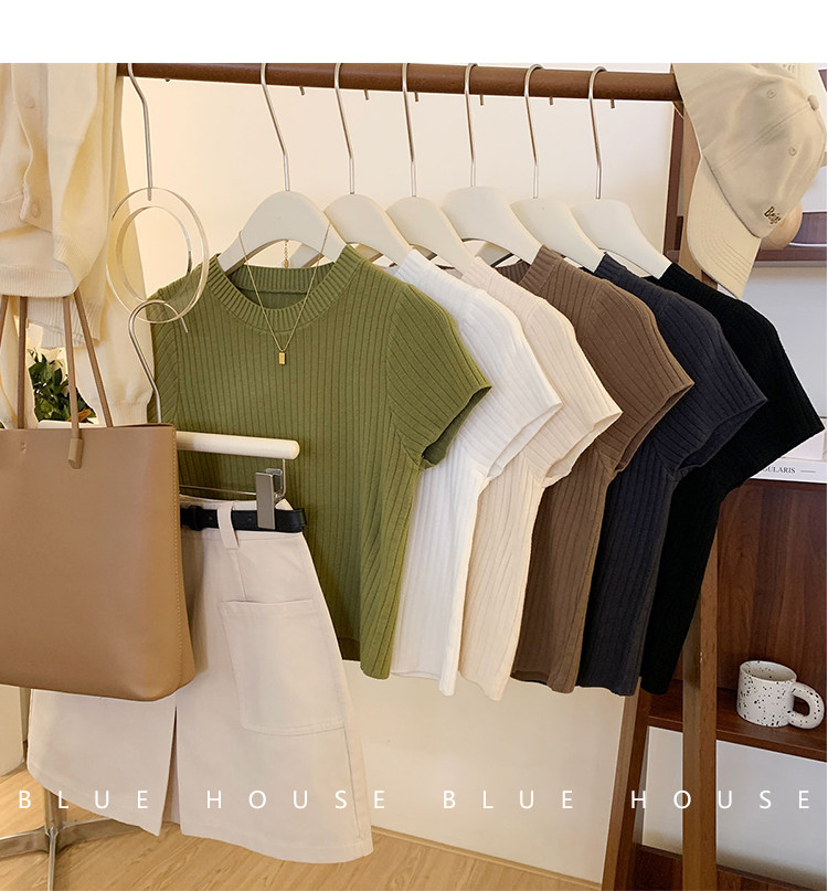Ретро трикотажный летний базовый свитер, короткий рукав, в западном стиле