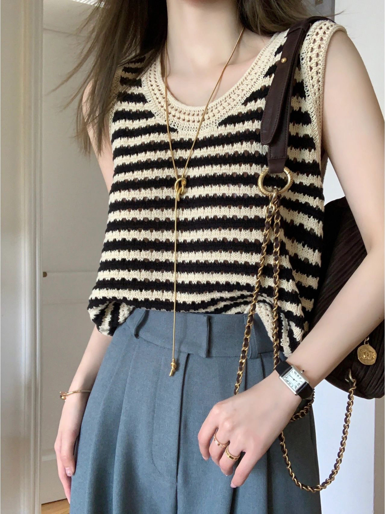Трикотажная майка топ, базовая футболка без рукавов, свободный крой, французский стиль