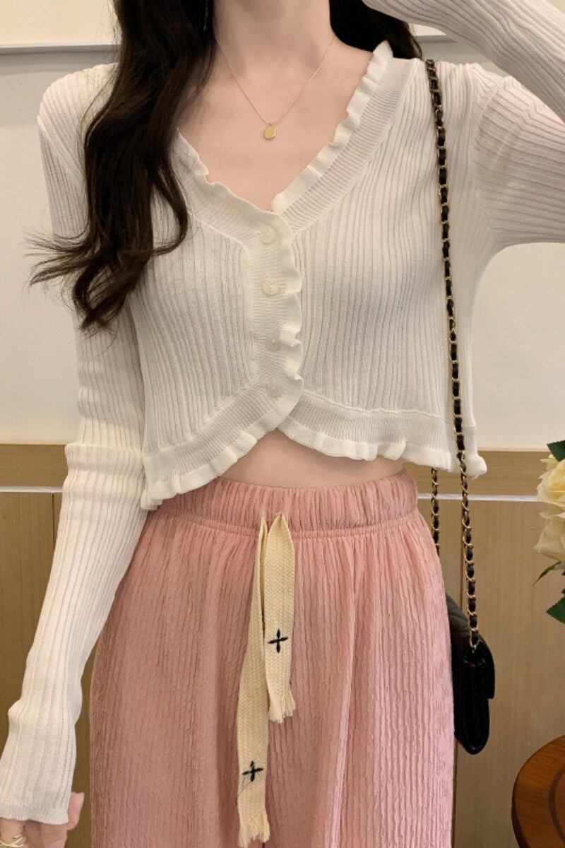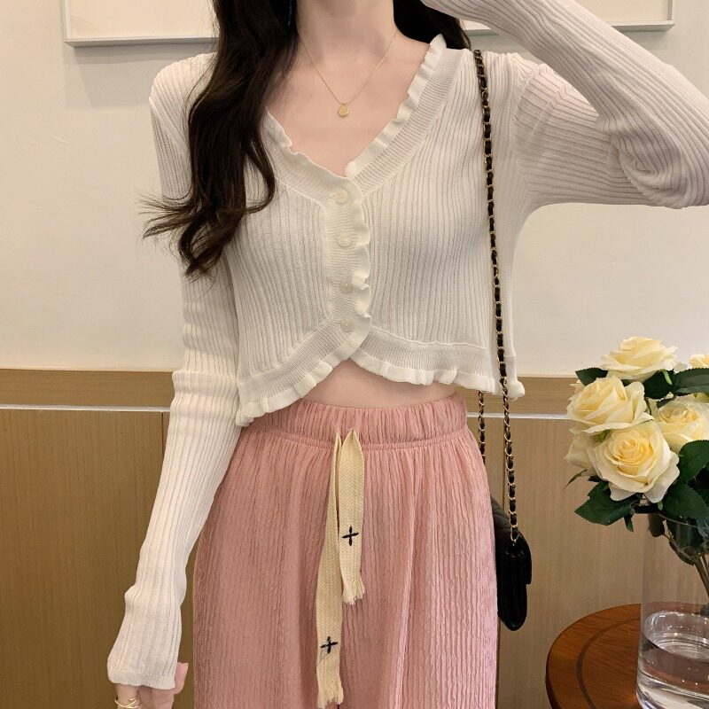 Белый трикотажный тонкий кардиган, лонгслив, куртка, защита от солнца