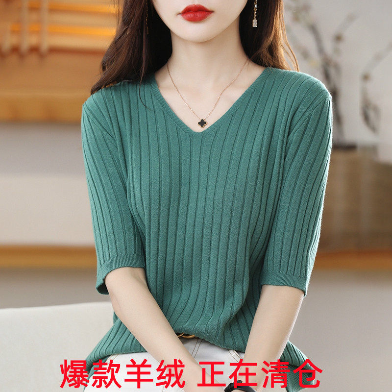 Летняя кашемировая футболка, трикотажный базовый свитер, короткий рукав, облегающий крой