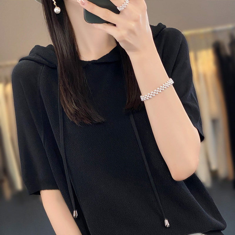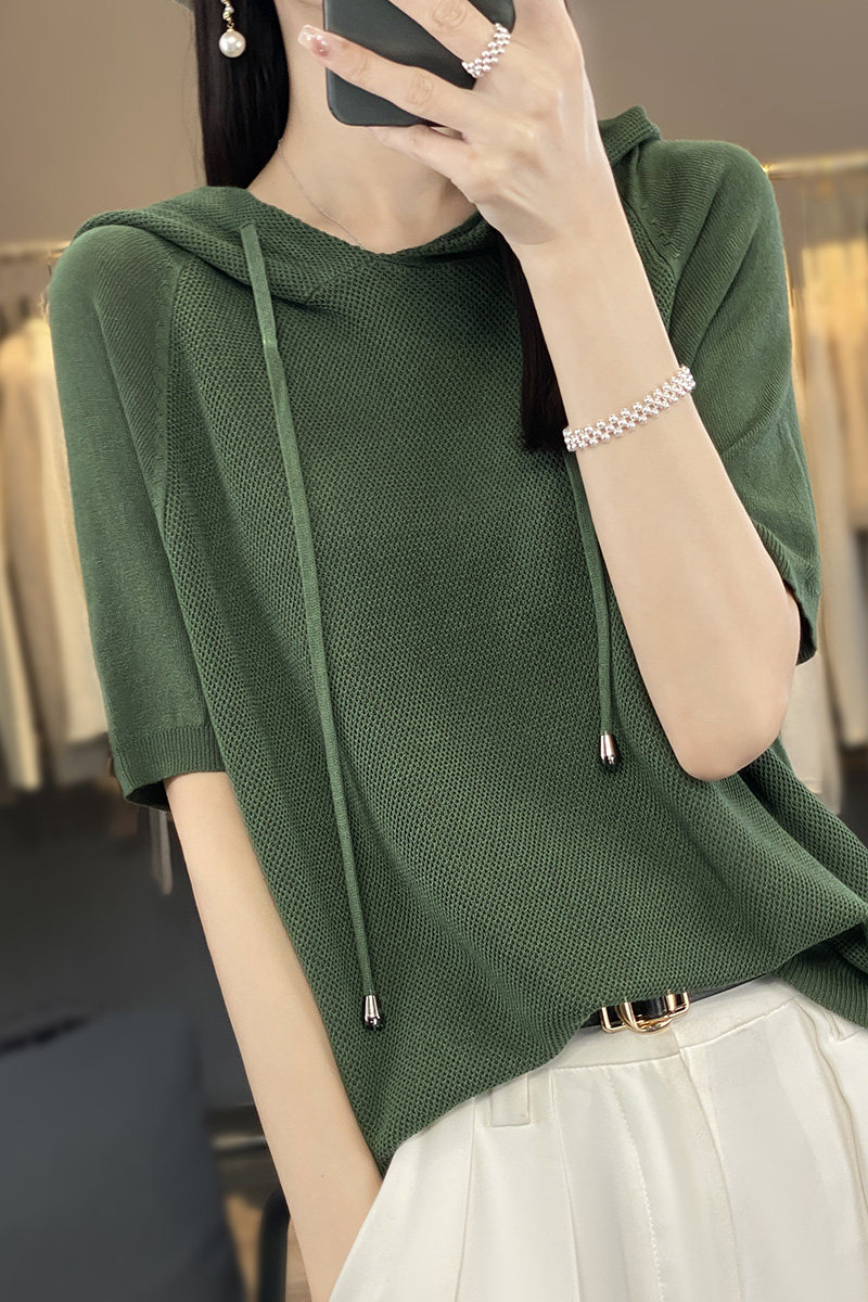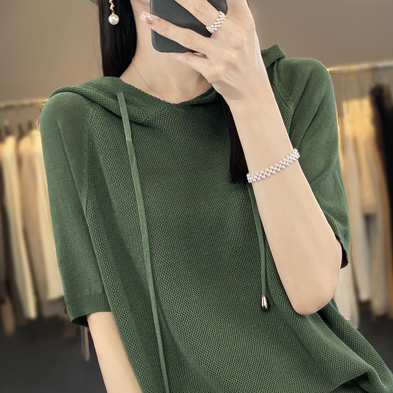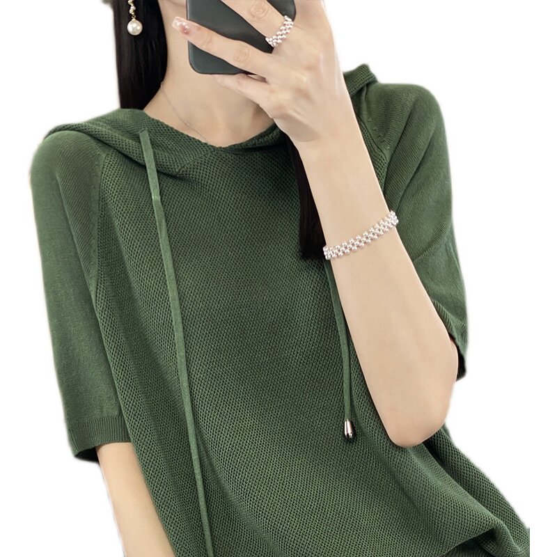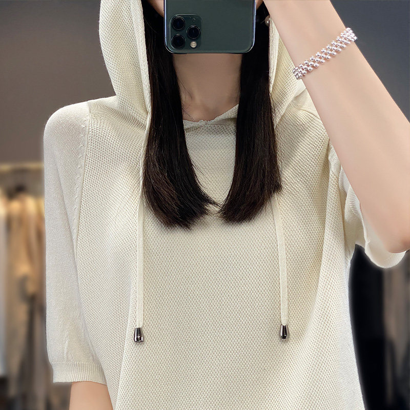 Тонкая шелковая трикотажная толстовка для отдыха с капюшоном
