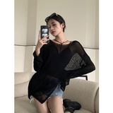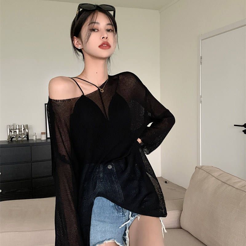 Летняя одежда для защиты от солнца, тонкий трикотажный свитер, длинная шелковая футболка, эффект подтяжки, средней длины