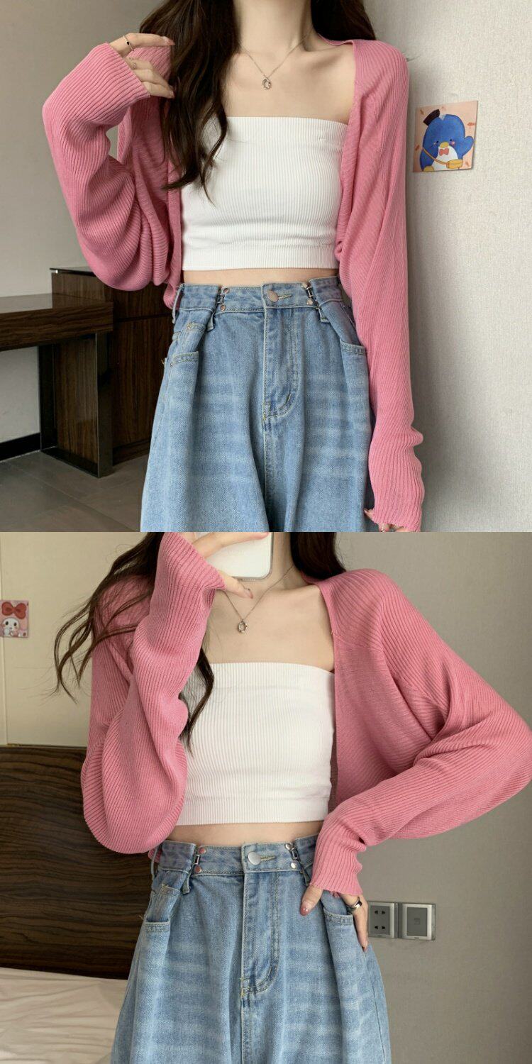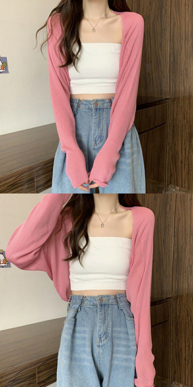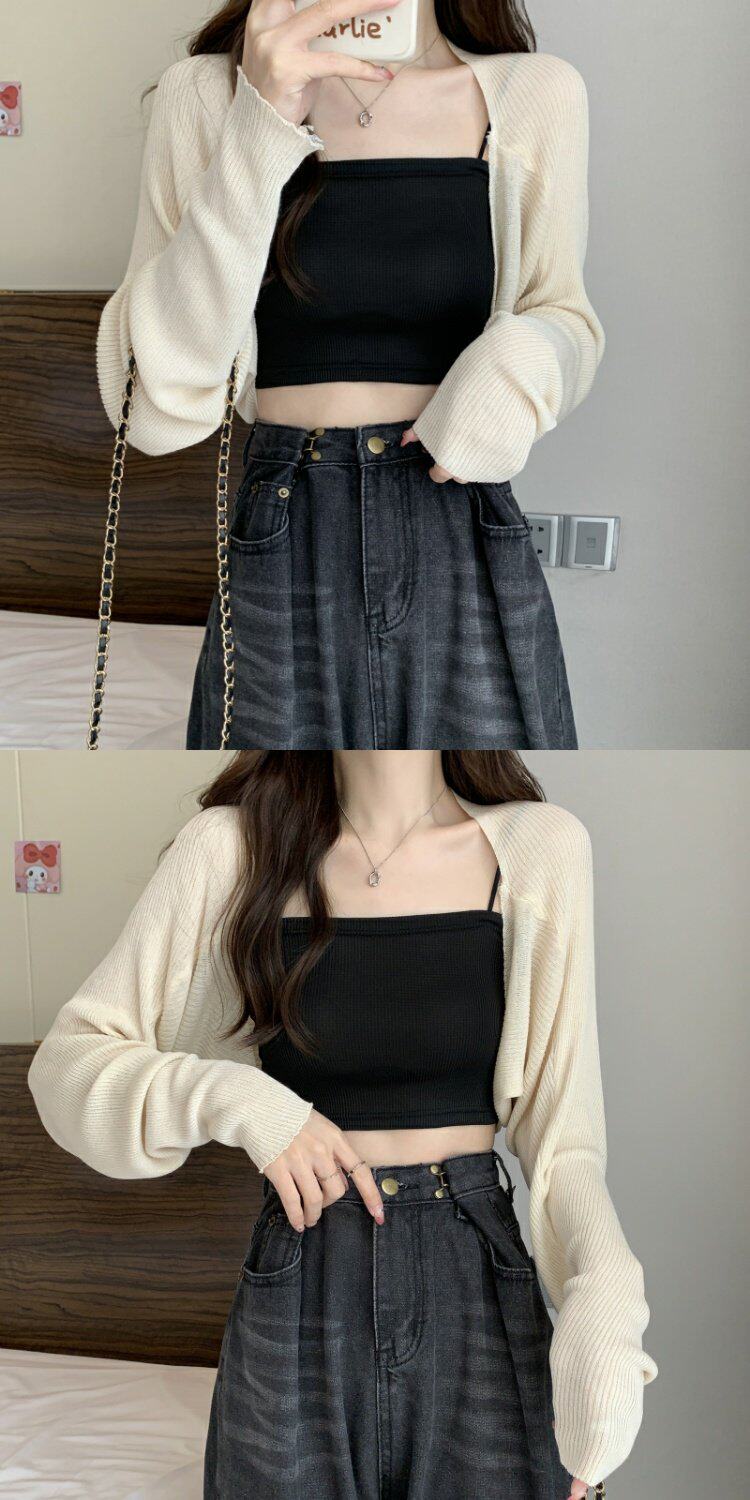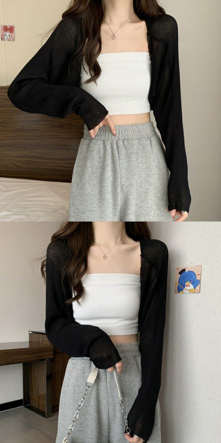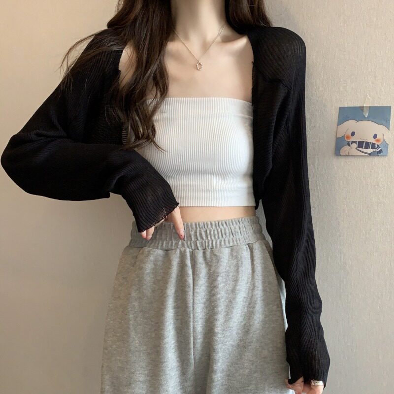 Черный трикотажный тонкий летний кардиган, жилет, накидка, куртка, эффект подтяжки