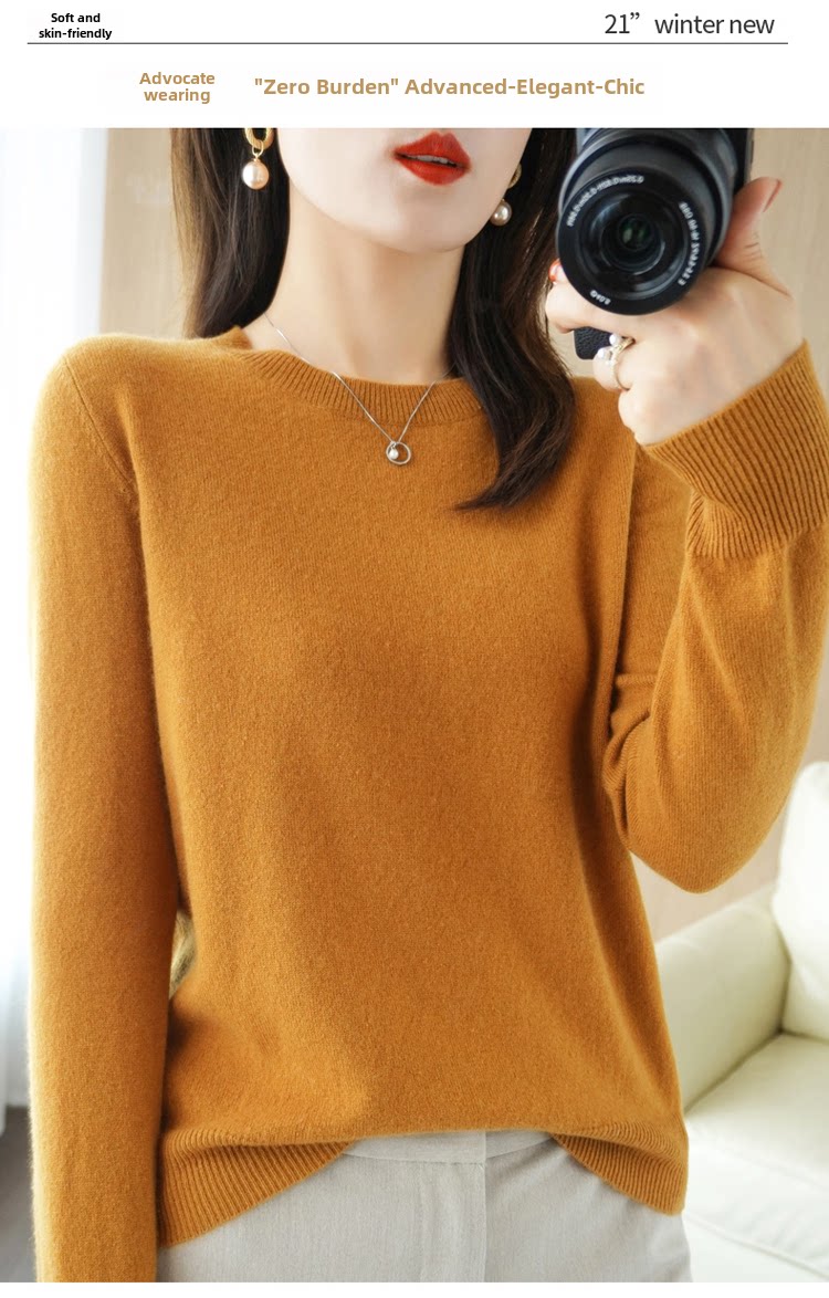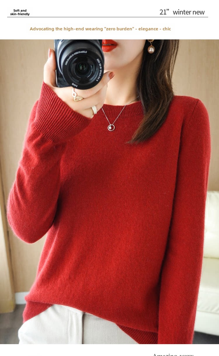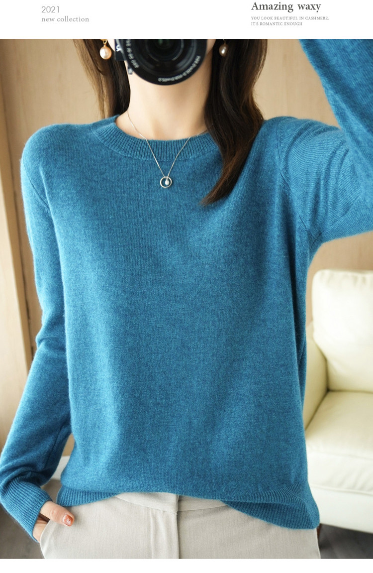 Осенний корейский шерстяной кашемировый свитер с круглым воротником, свободный крой