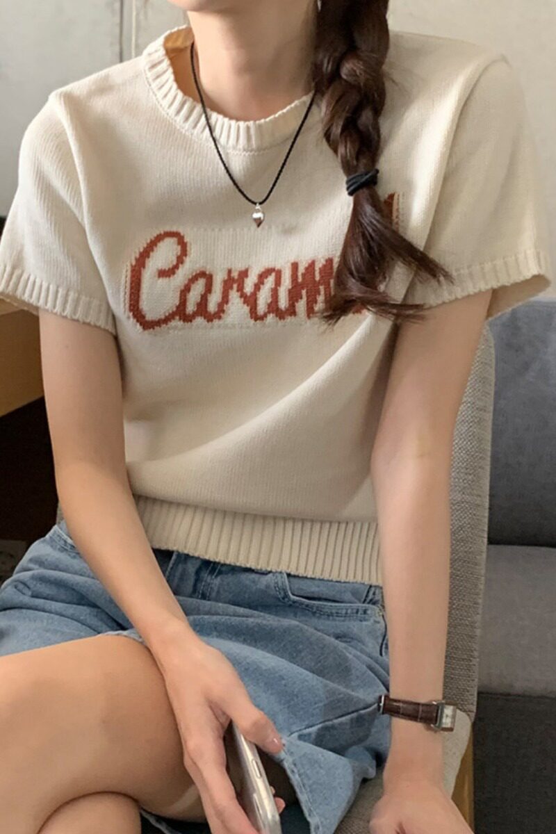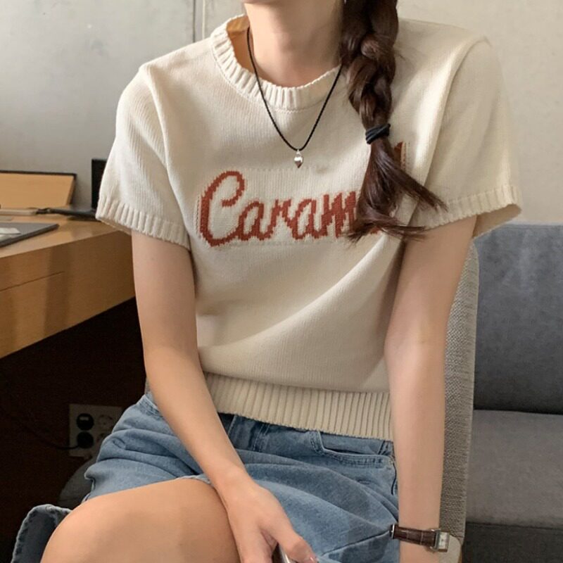 Летний трикотажный свитер, футболка с круглым воротником, в корейском стиле