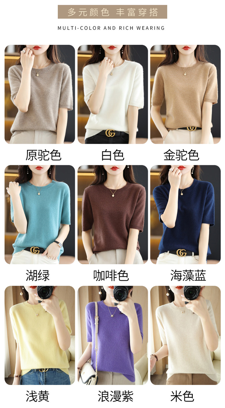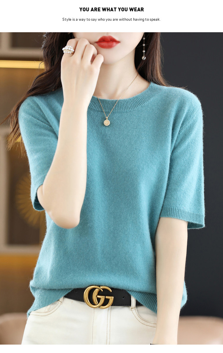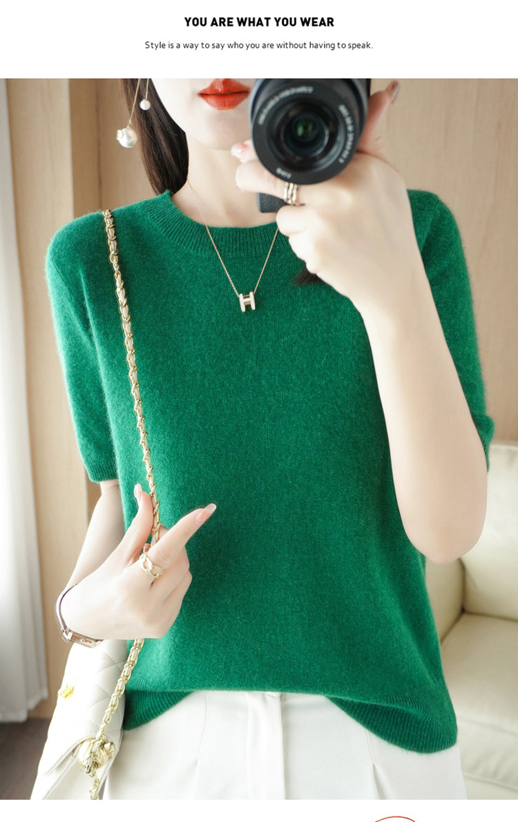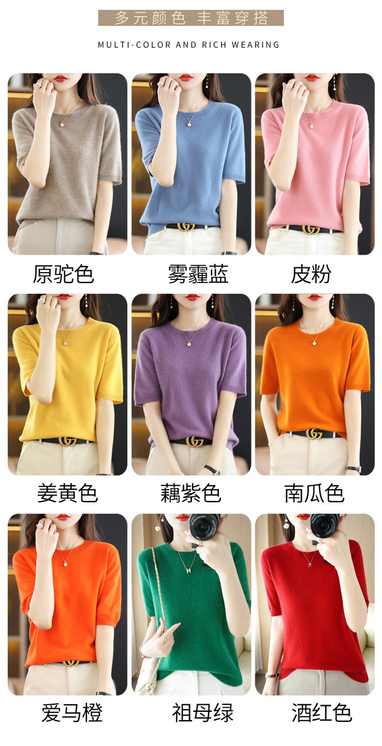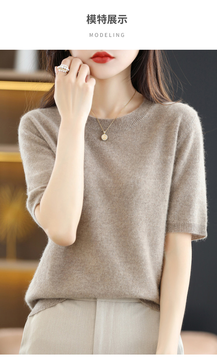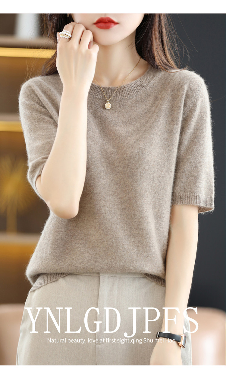 Шерстяная футболка, базовый приятный телу летний короткий свитер, 2023, короткий рукав