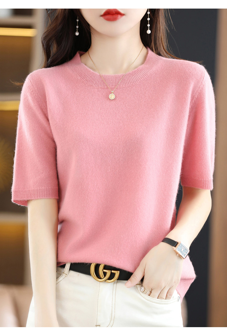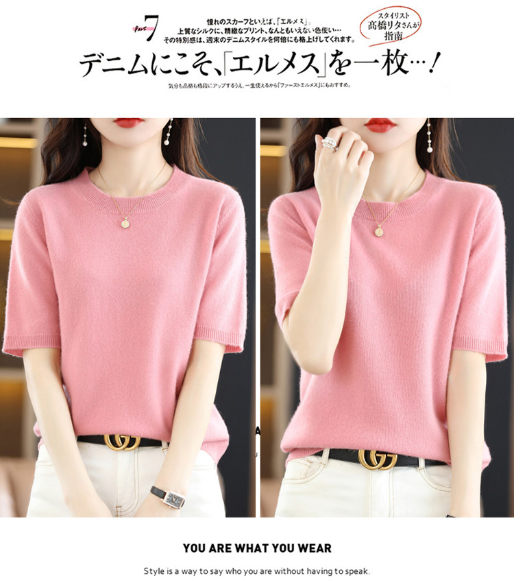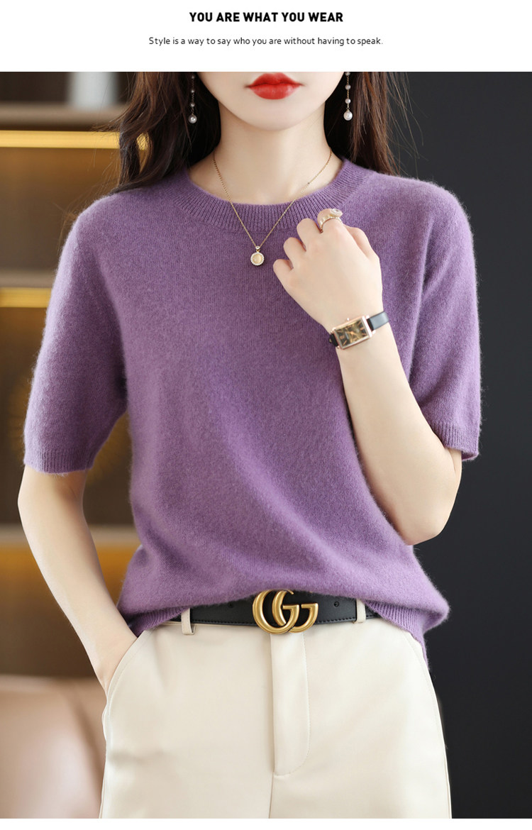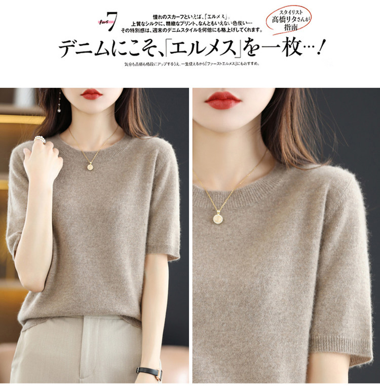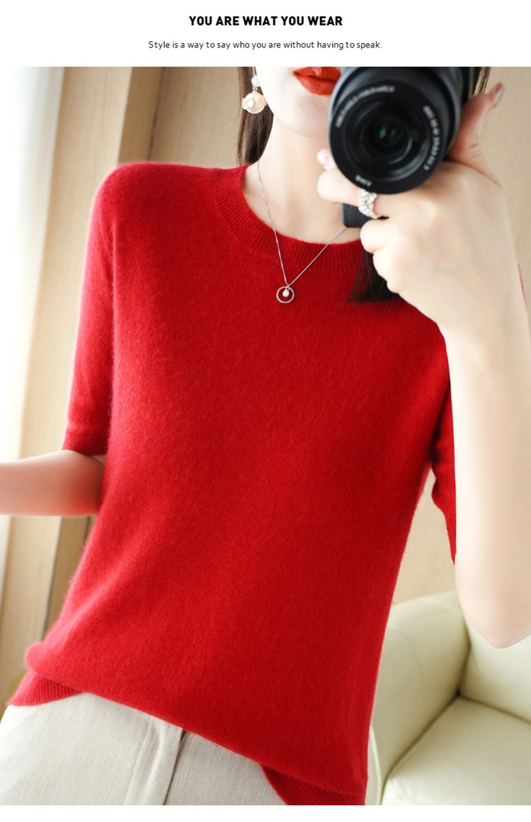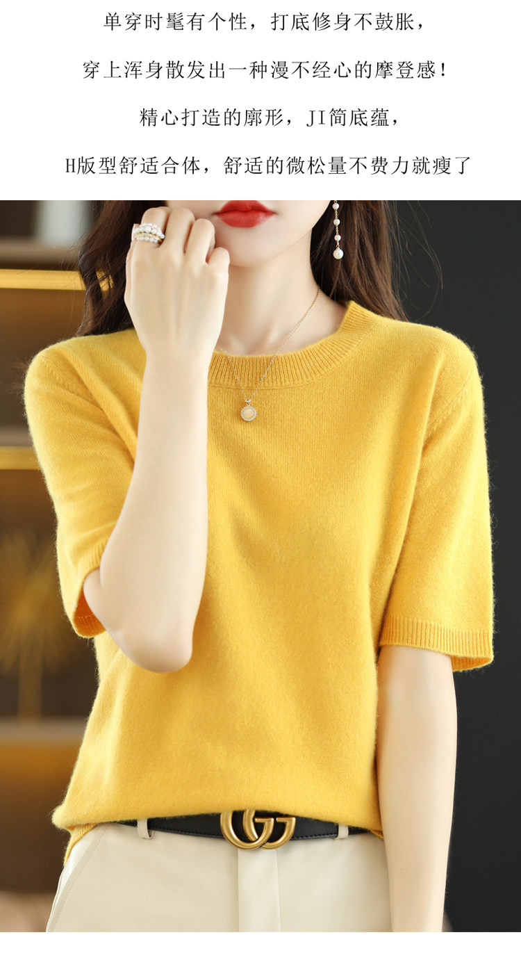 Шерстяная футболка, базовый приятный телу летний короткий свитер, 2023, короткий рукав