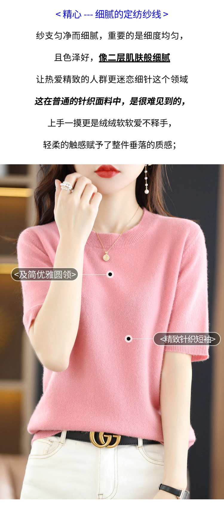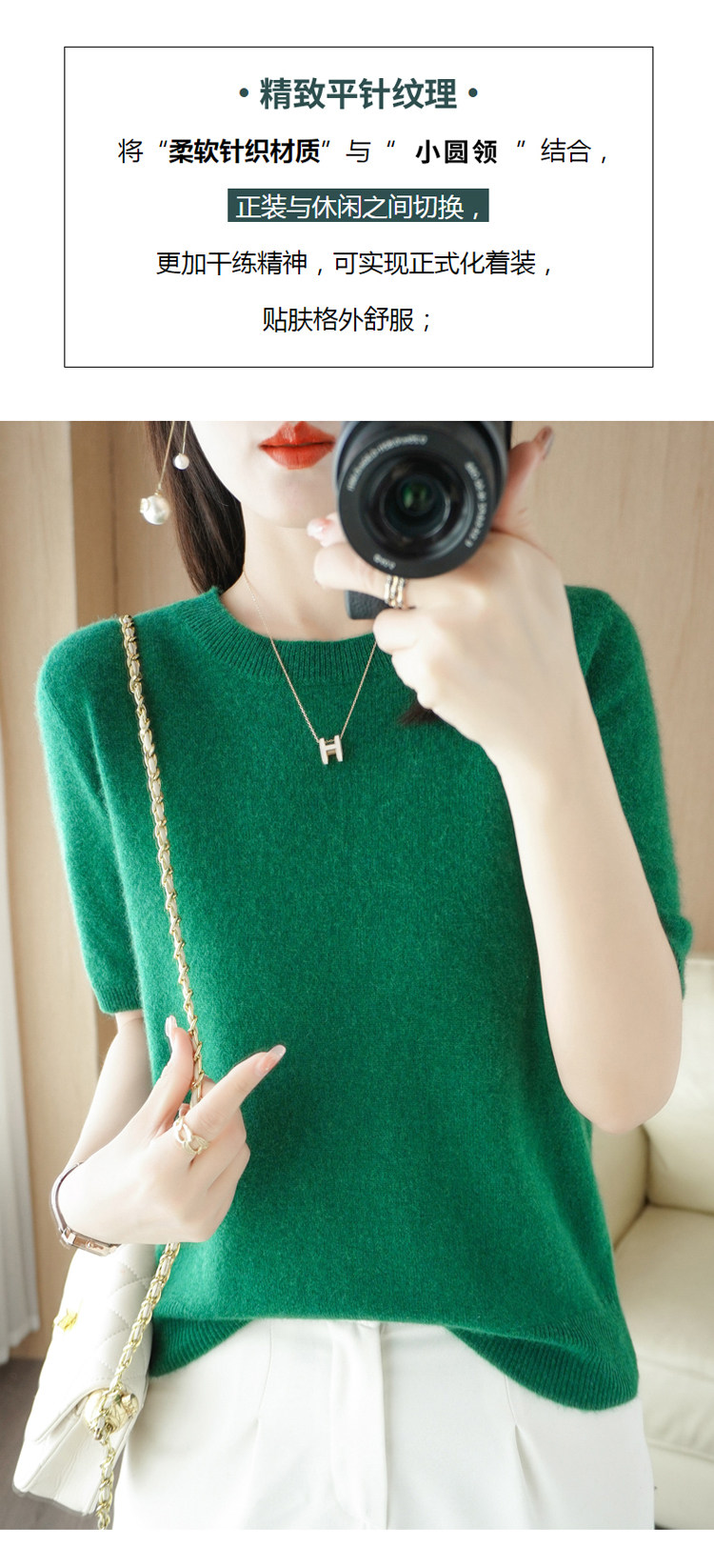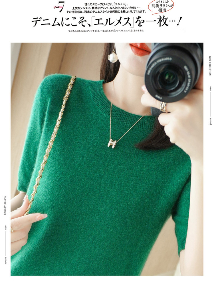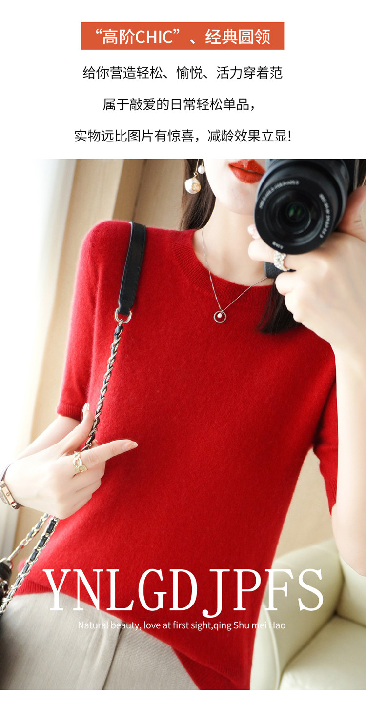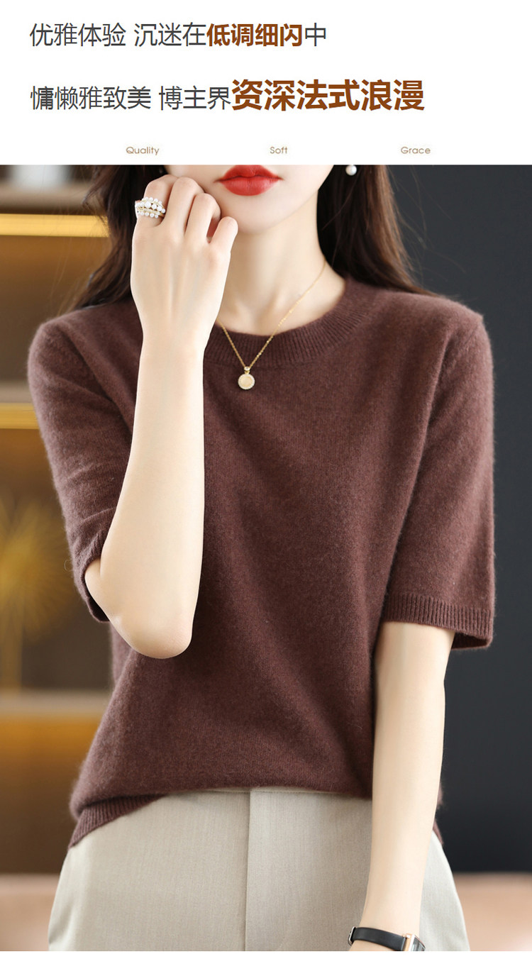 Шерстяная футболка, базовый приятный телу летний короткий свитер, 2023, короткий рукав