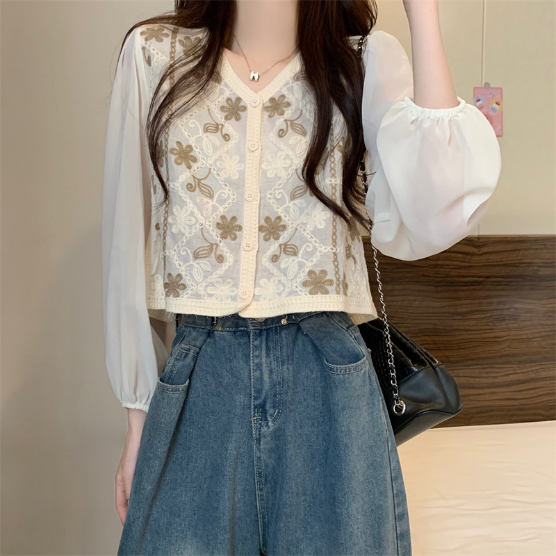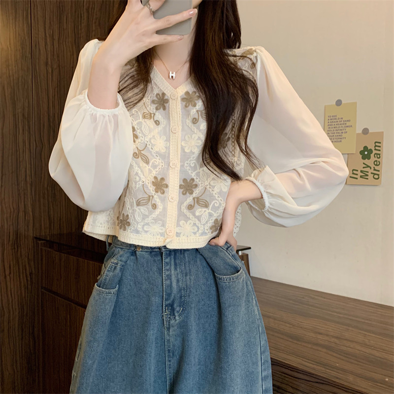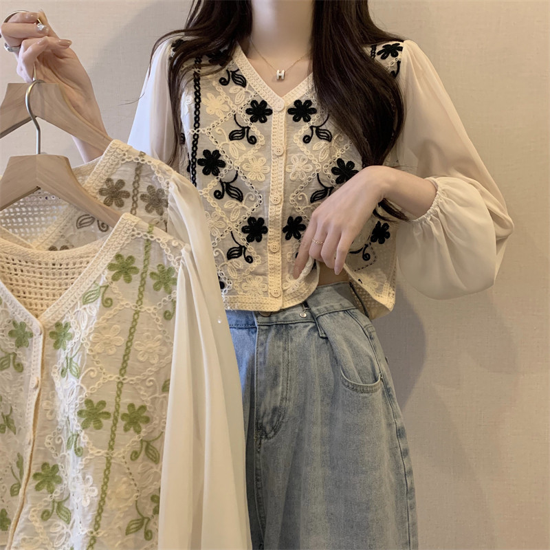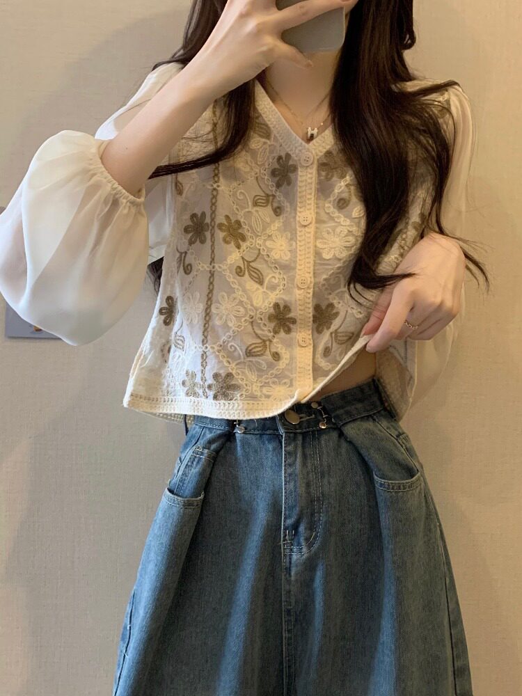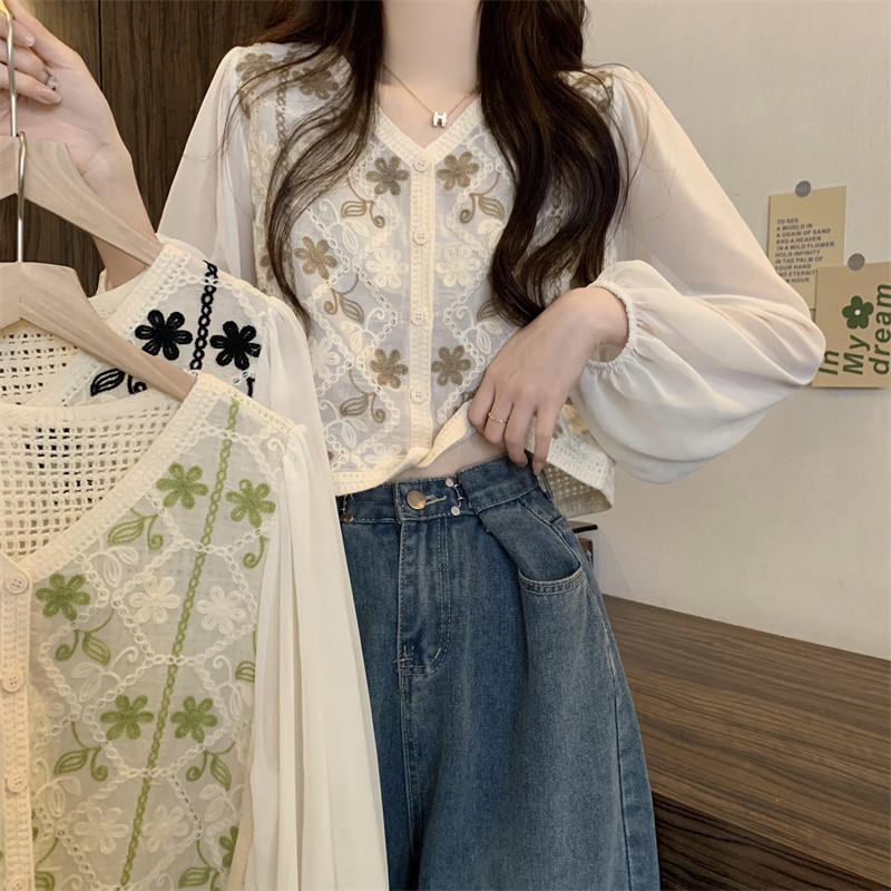 Кружевной летний дизайнерский тонкий лонгслив, кардиган