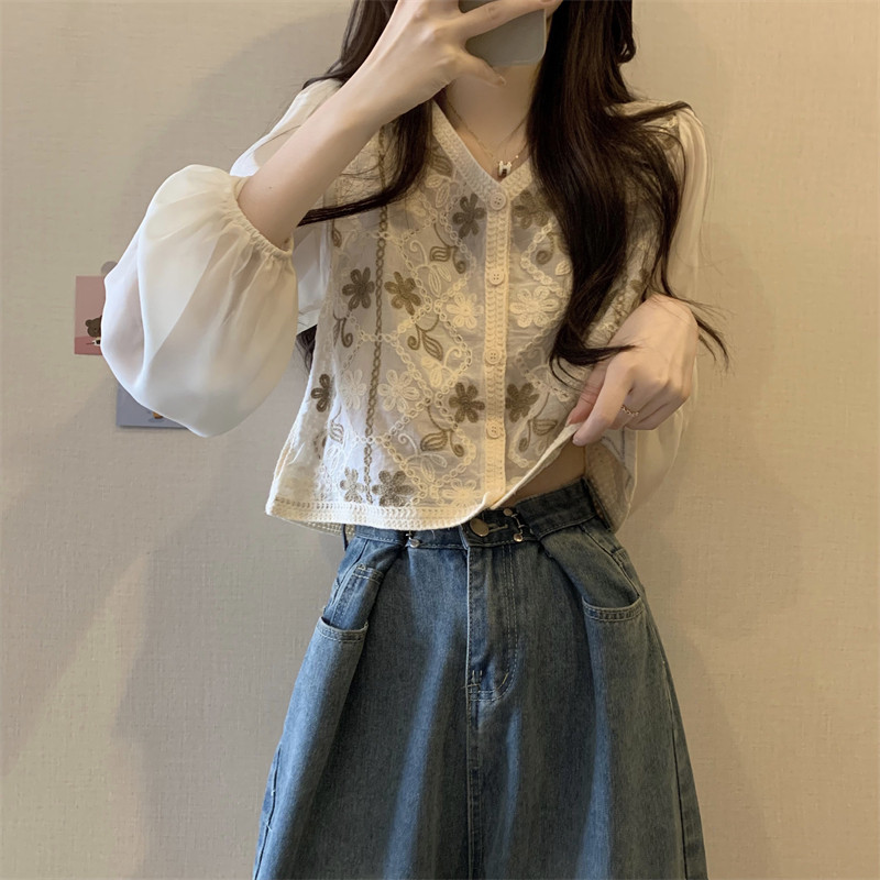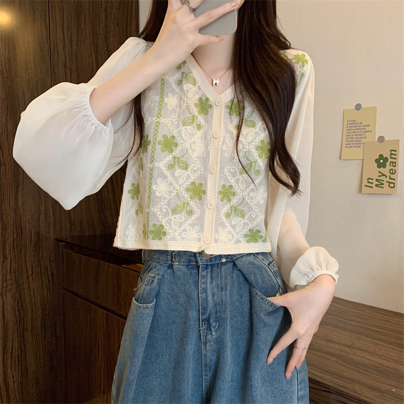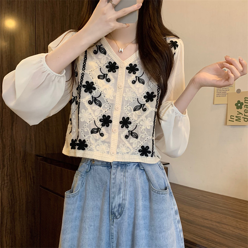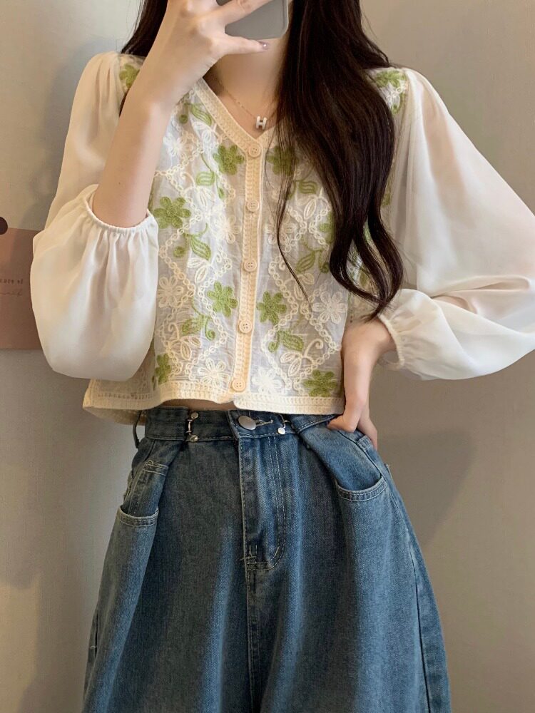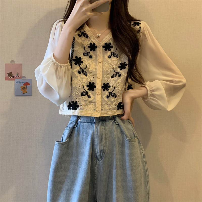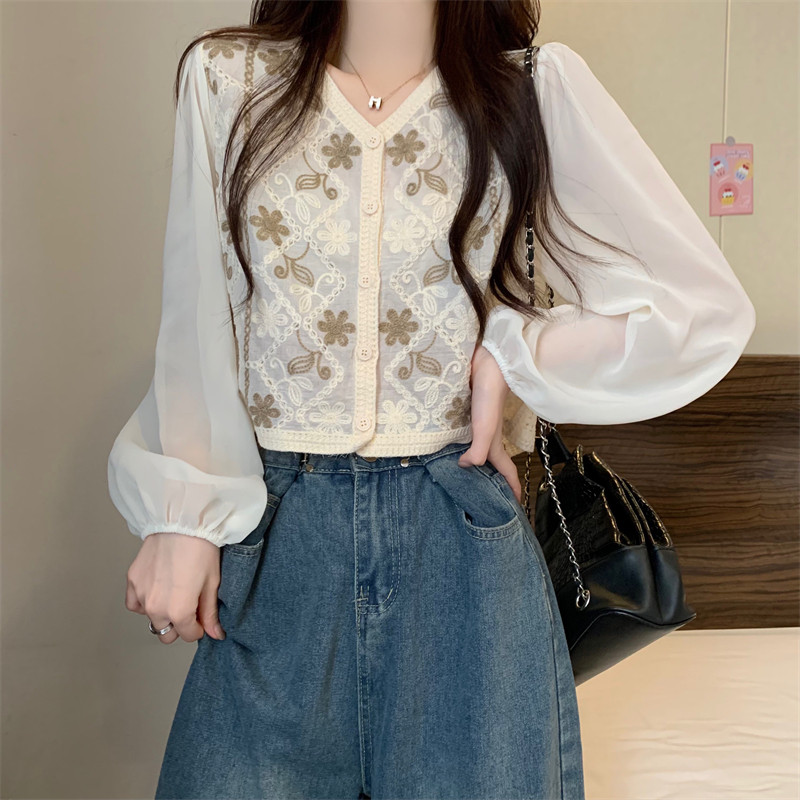 Кружевной летний дизайнерский тонкий лонгслив, кардиган