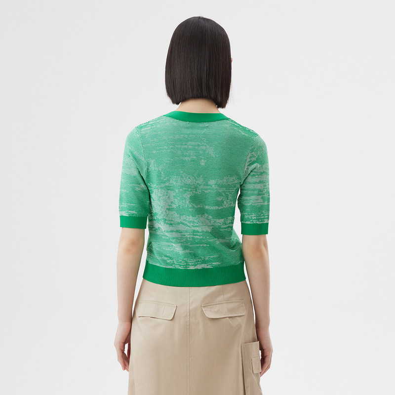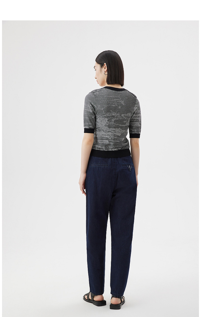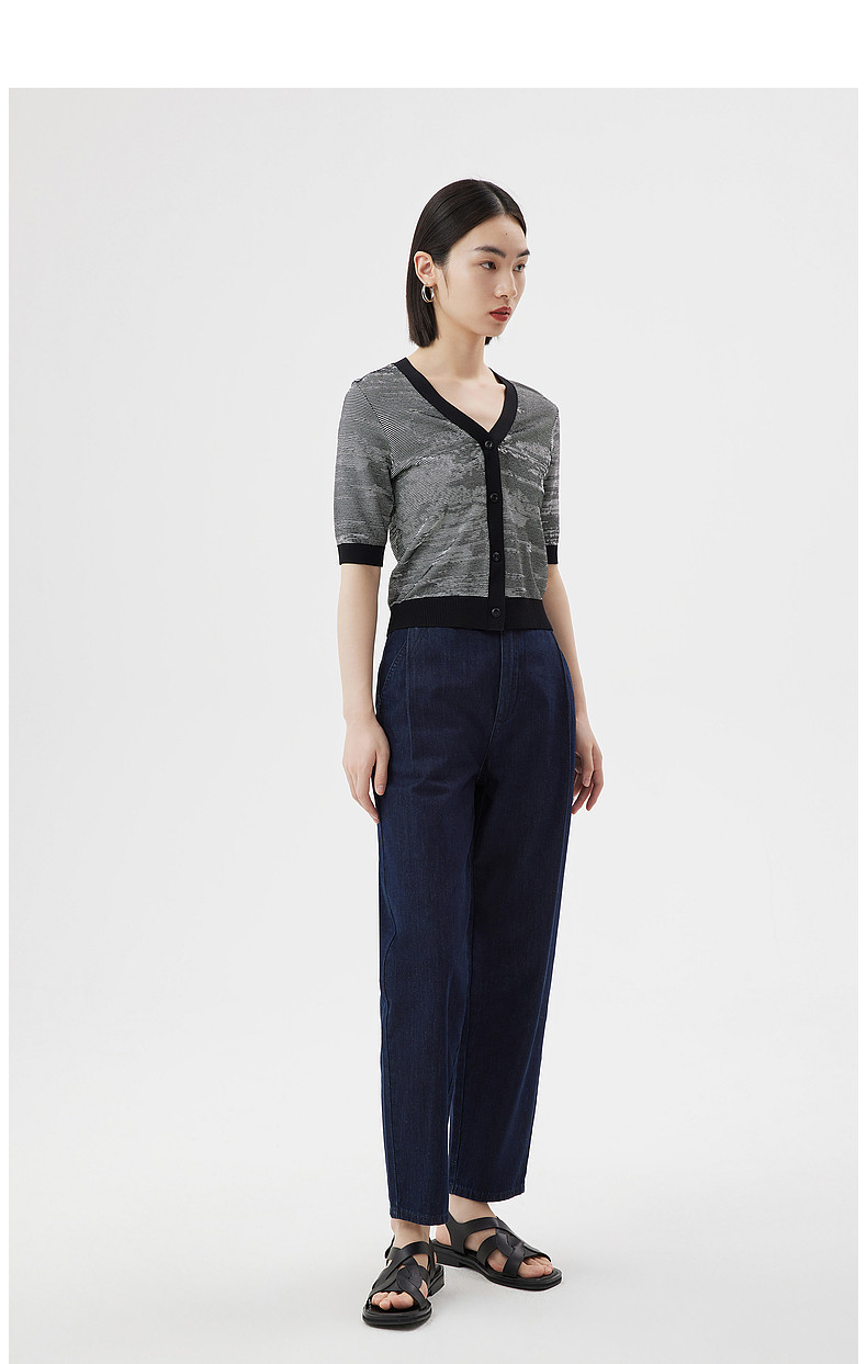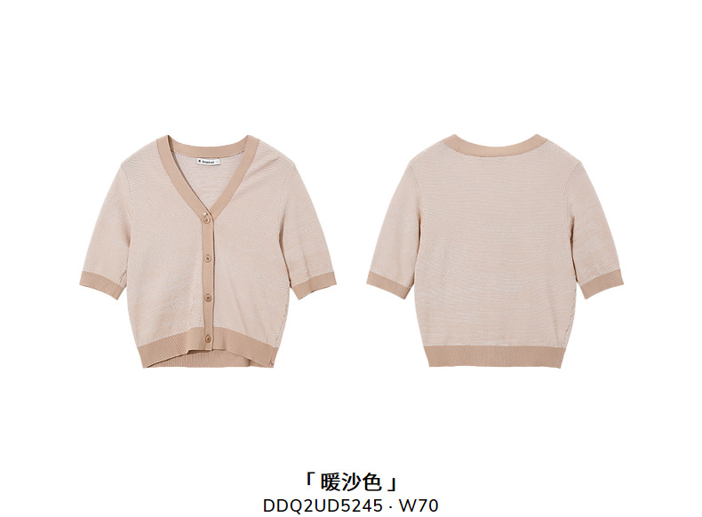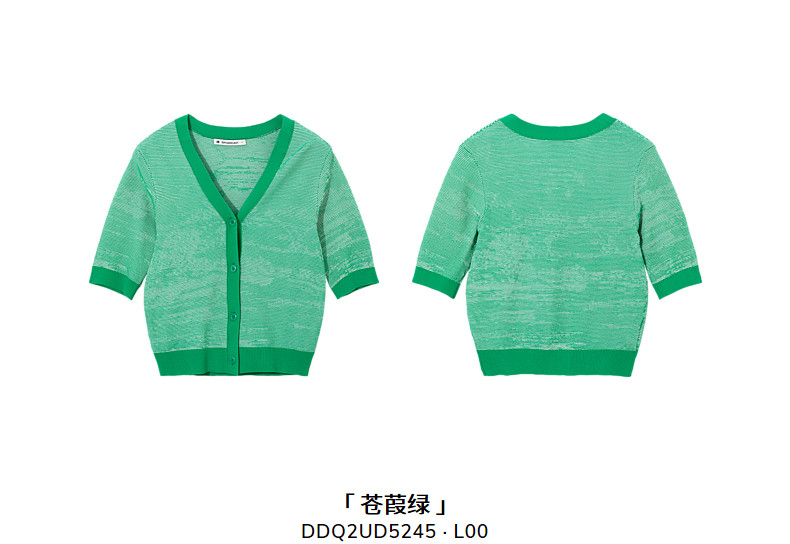 Новинка 2023 года, летний стиль, однобортный женский кардиган с контрастным воротником и ребристым краем, V-образным вырезом DDQ2UD5245