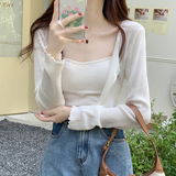 Летняя цветная шелковая тонкая подходит с юбкой, кардиган, куртка, в корейском стиле, большой размер, подходит для полных девушек, защита от солнца