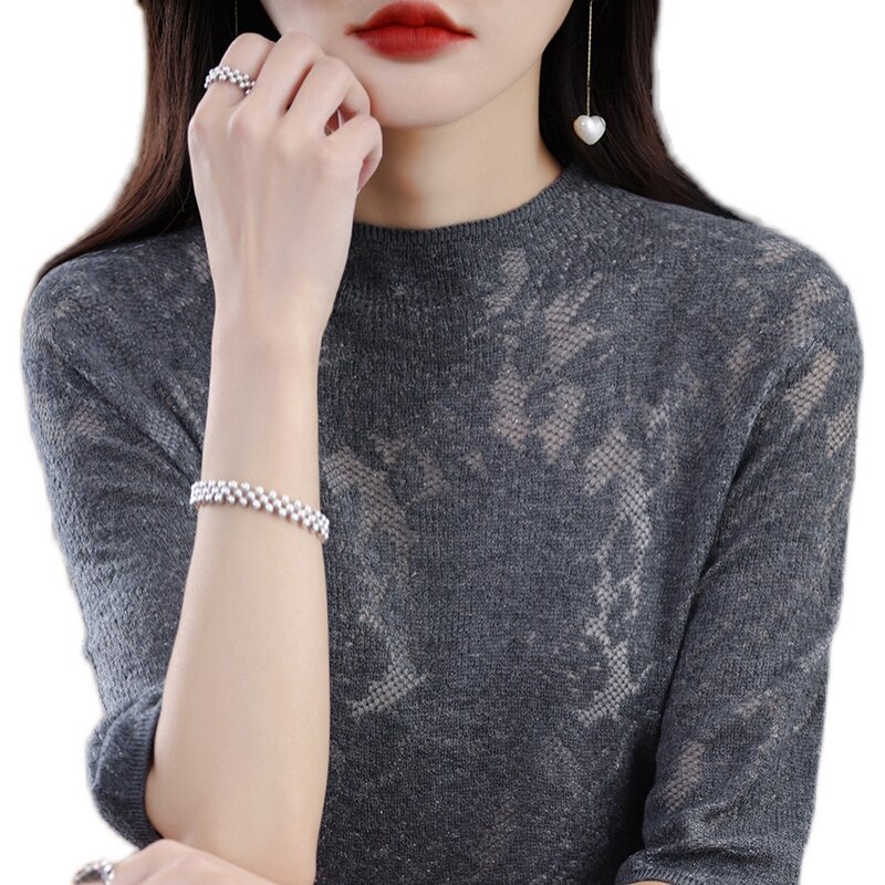 Кашемировая осенняя тонкая шерстяная трикотажная футболка, короткий рукав