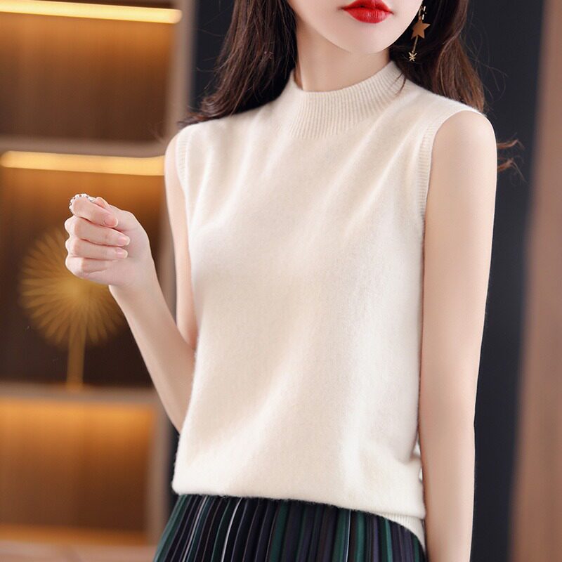 Весенний базовый приятный телу пиджак классического кроя без рукавов, шерстяной свитер, жилет, высокий воротник, эффект подтяжки