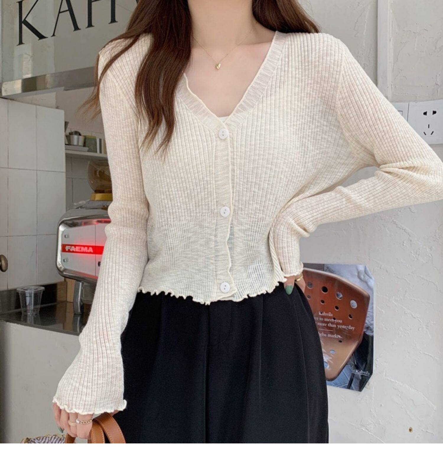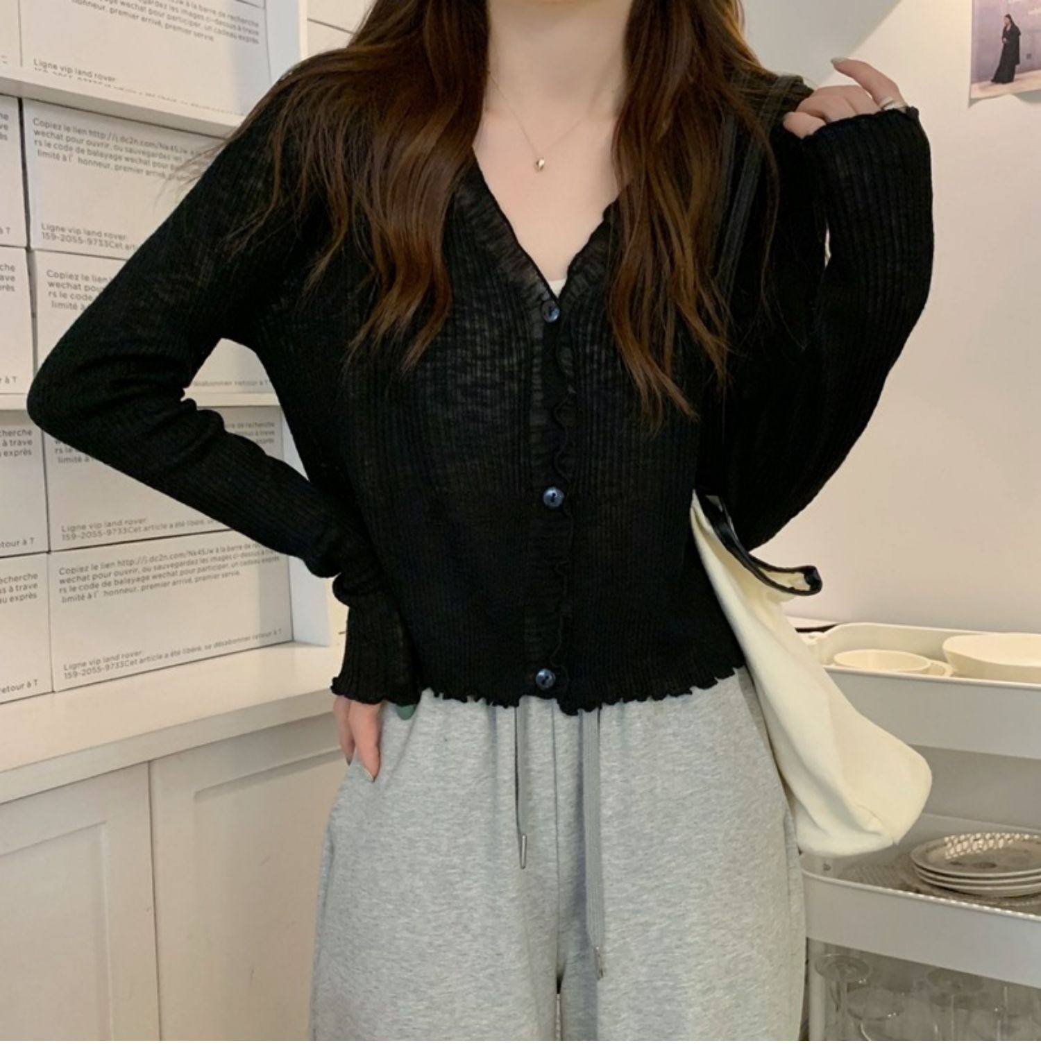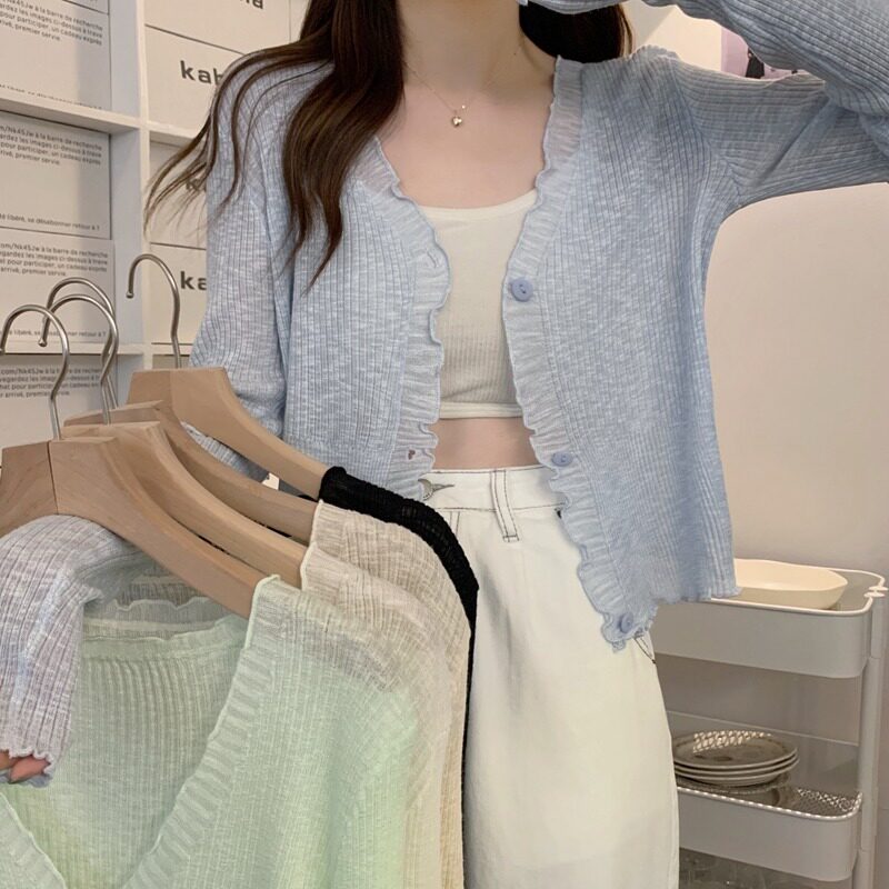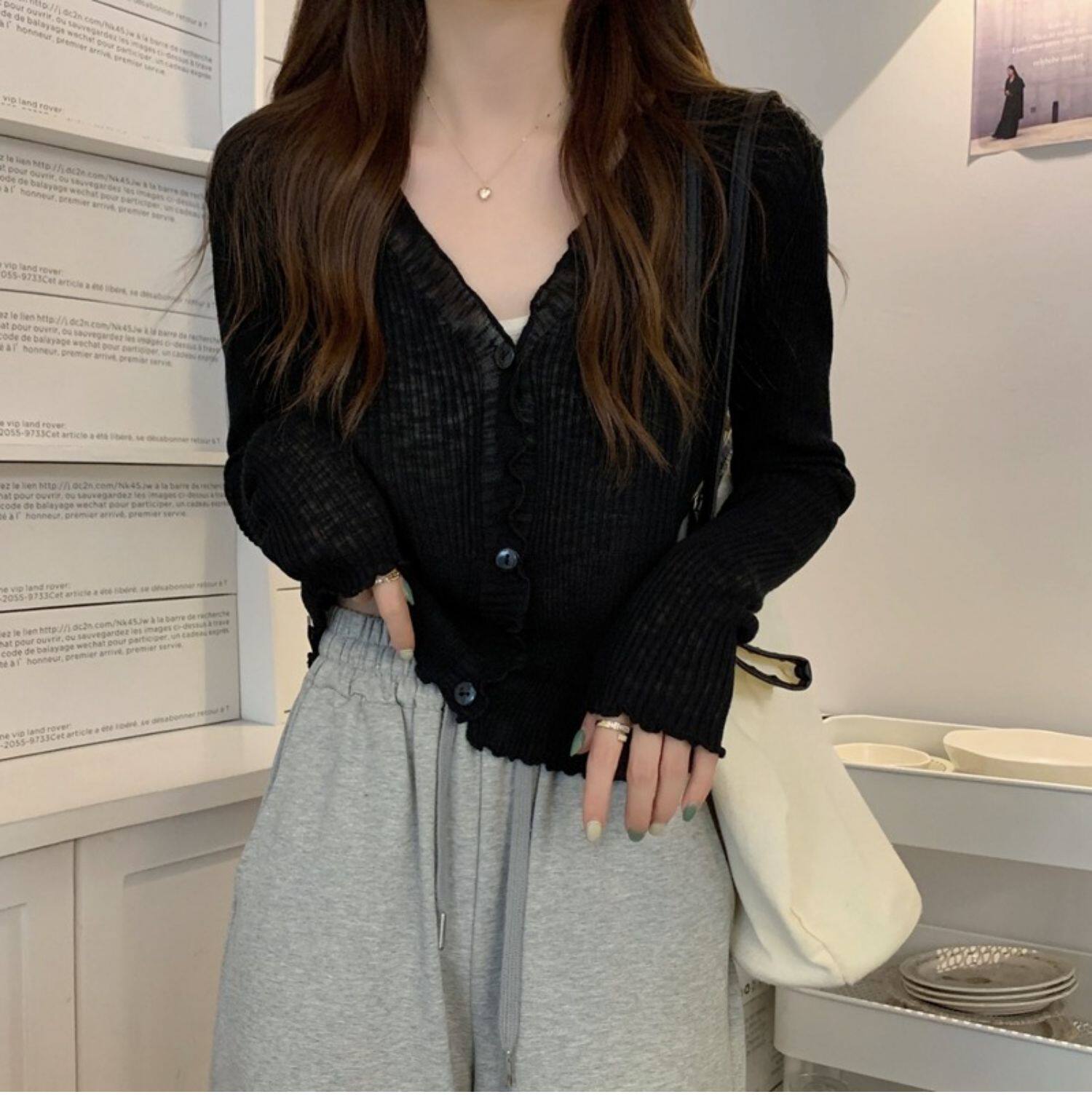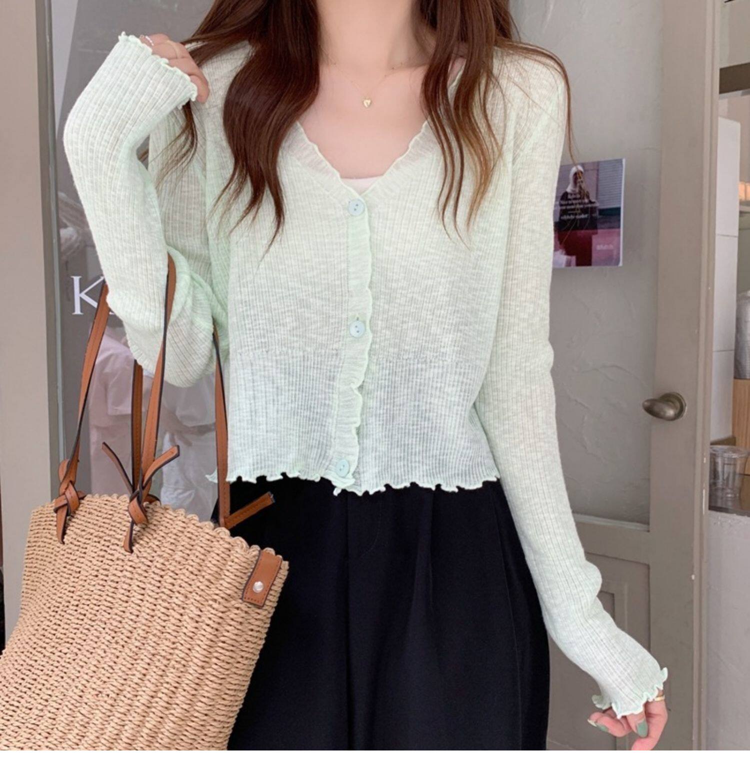 Тонкий трикотажный летний кардиган, накидка, лонгслив, белая куртка, в корейском стиле