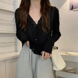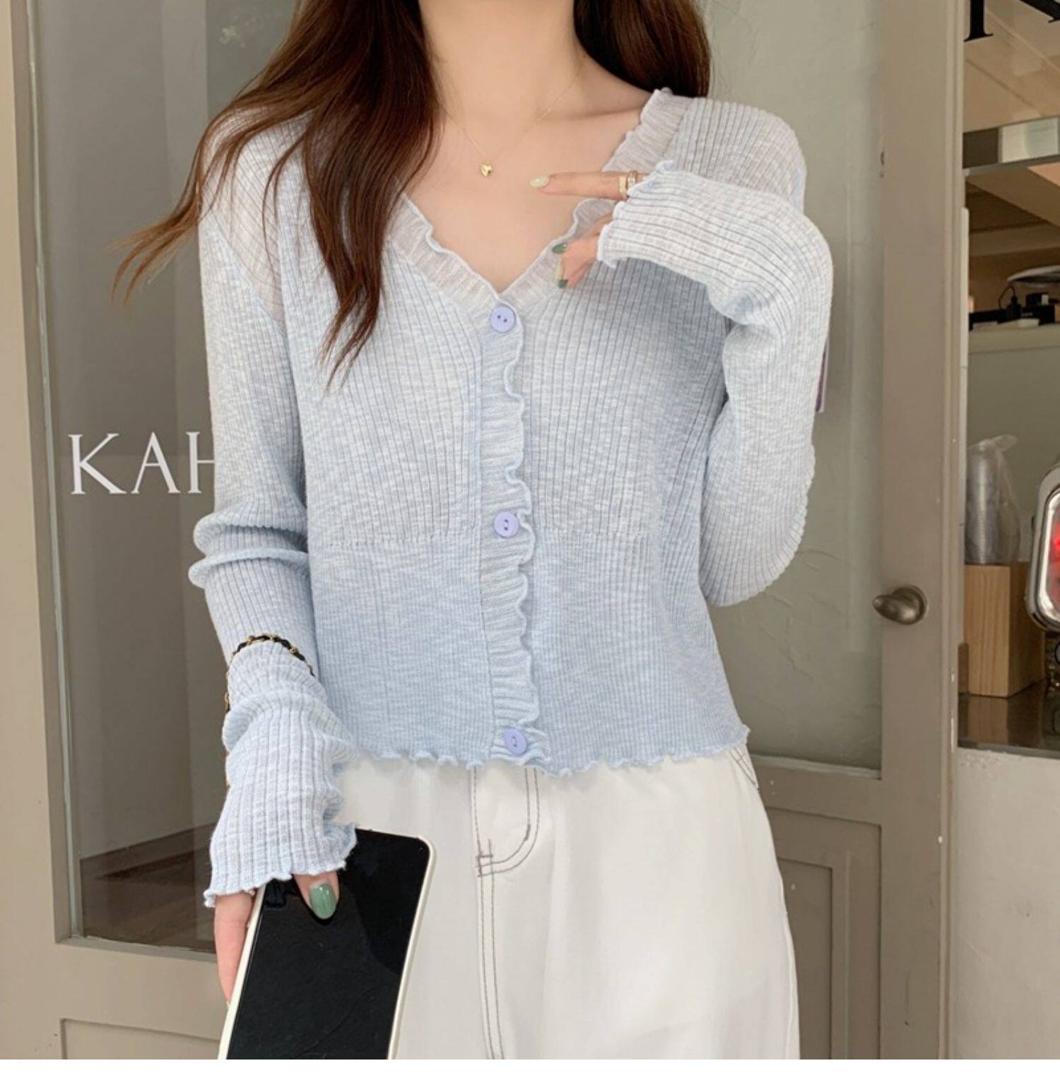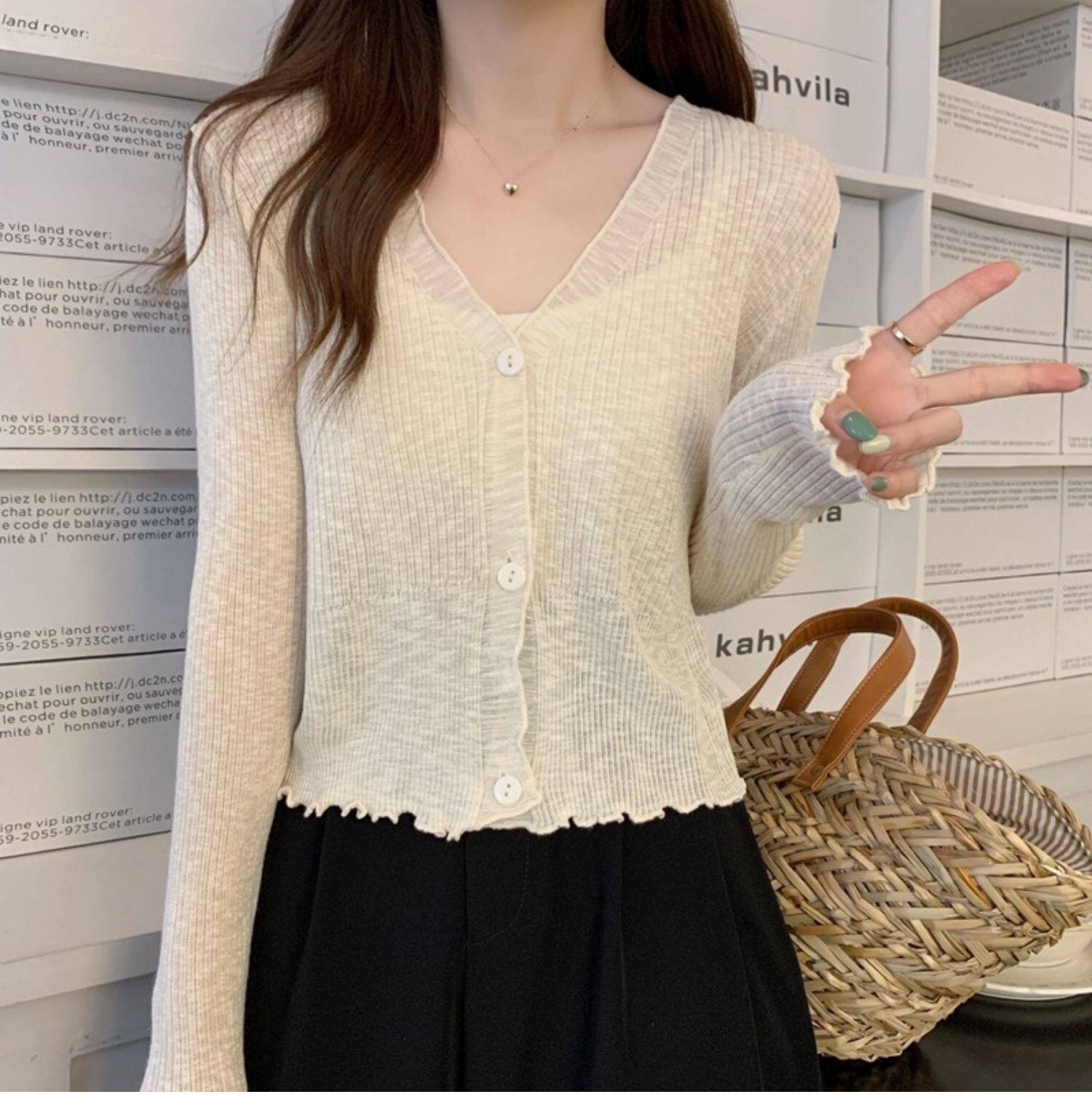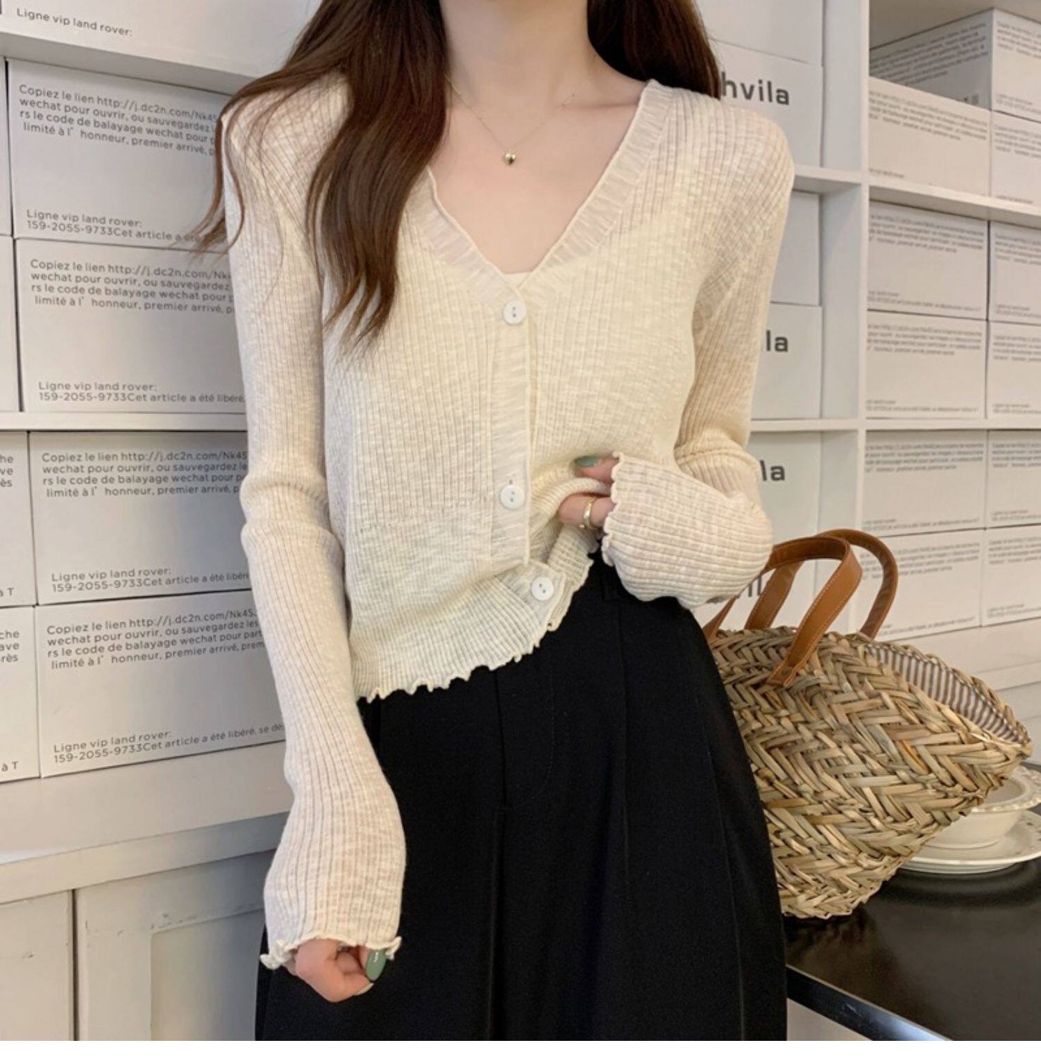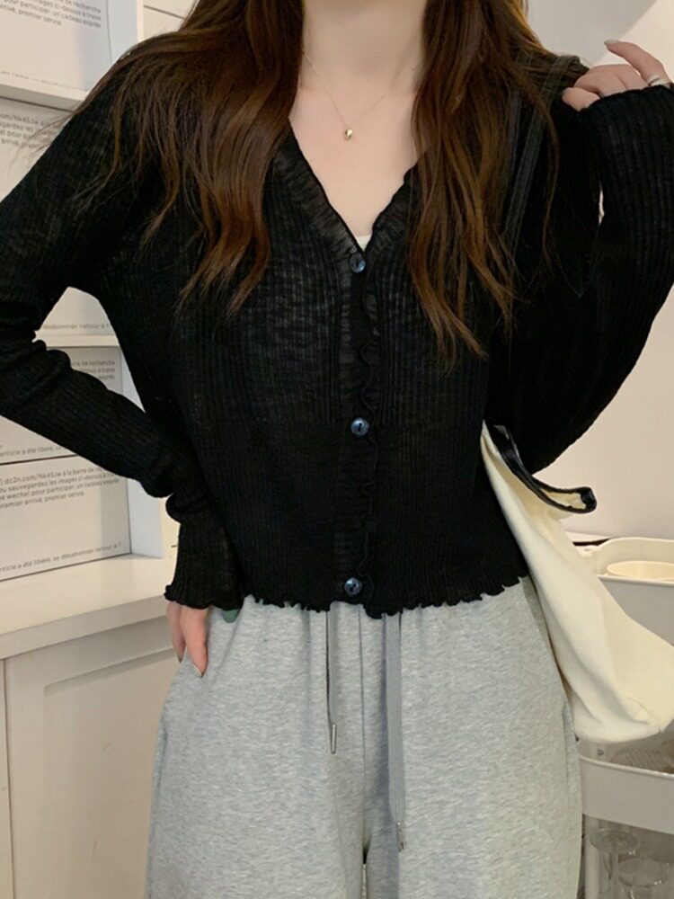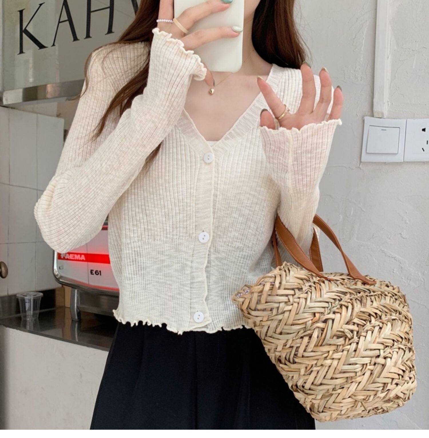 Тонкий трикотажный летний кардиган, накидка, лонгслив, белая куртка, в корейском стиле