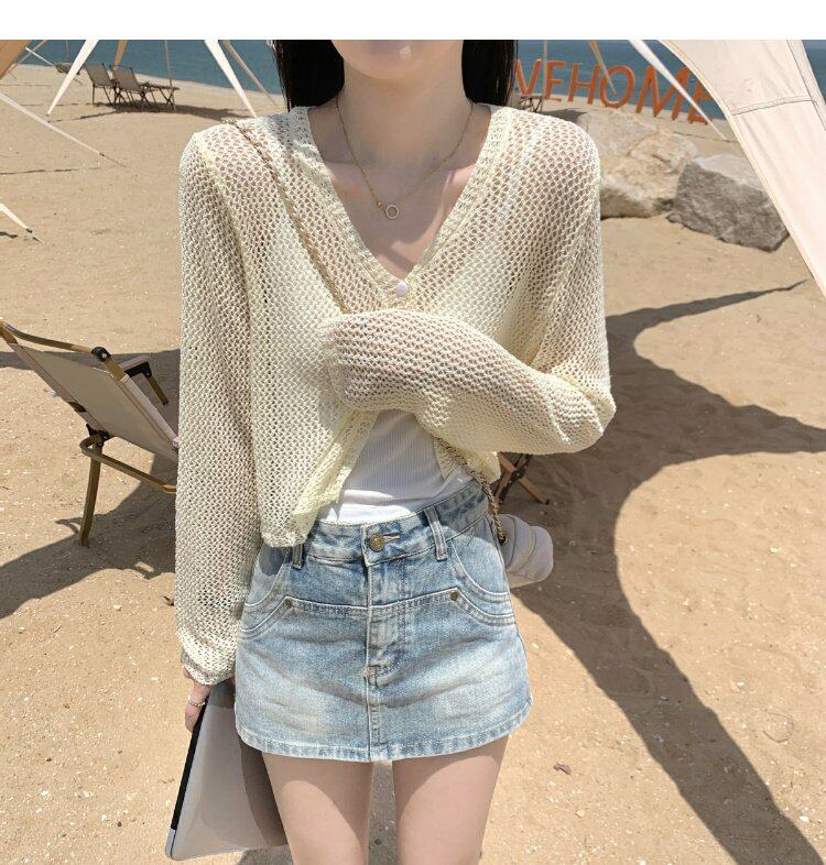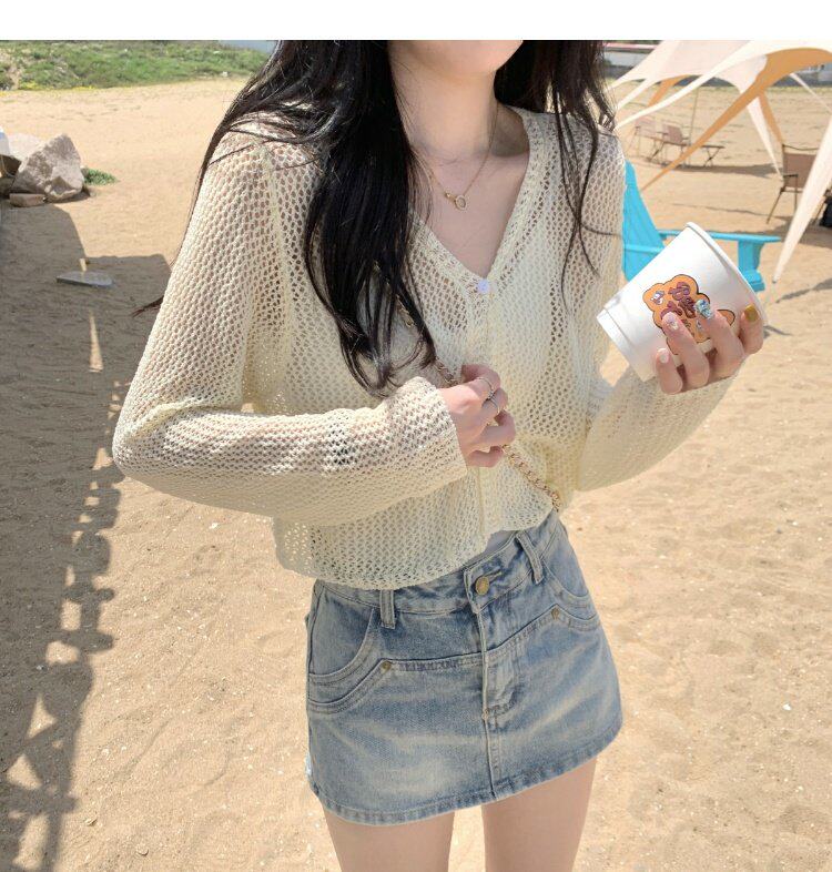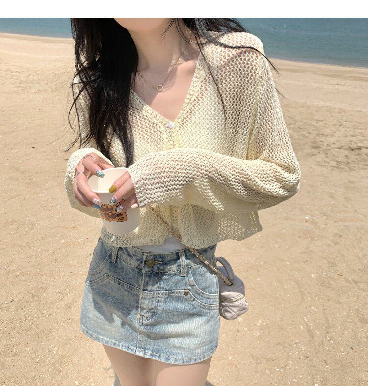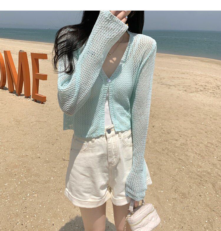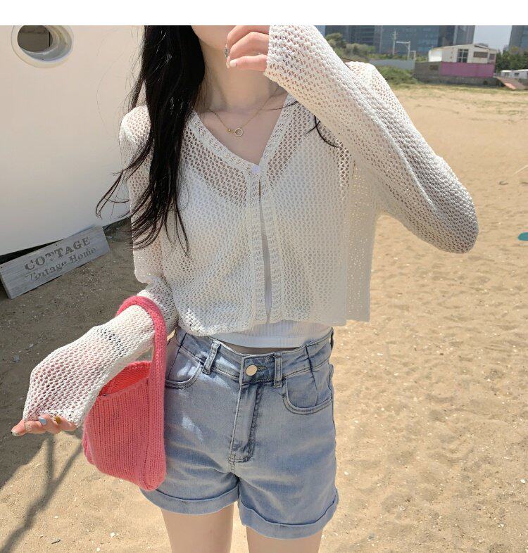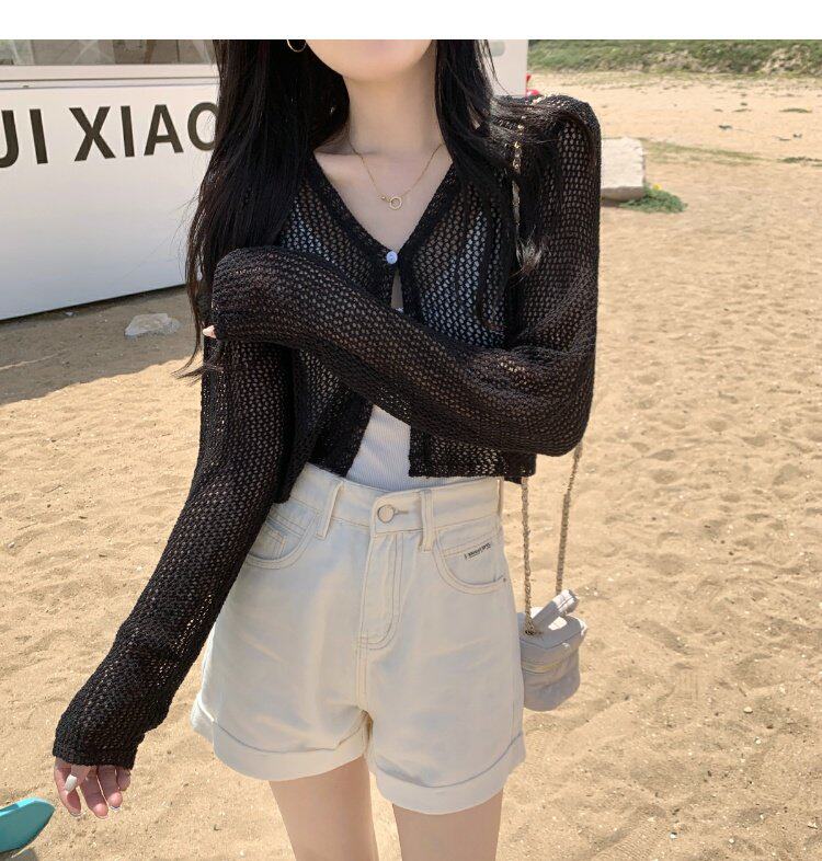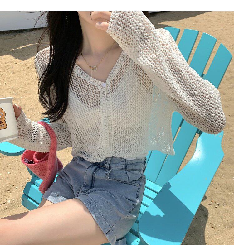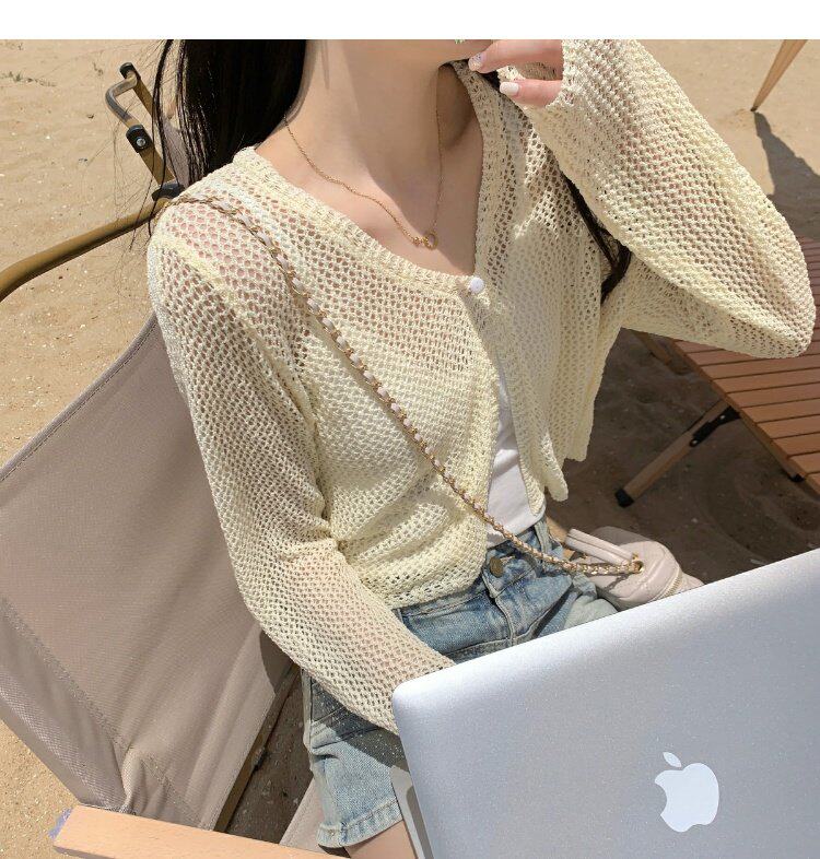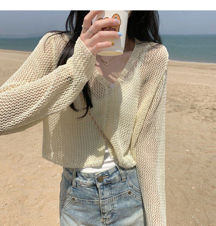 Шелковый летний тонкий кардиган, трикотажная рыболовная сеть, накидка, эффект подтяжки
