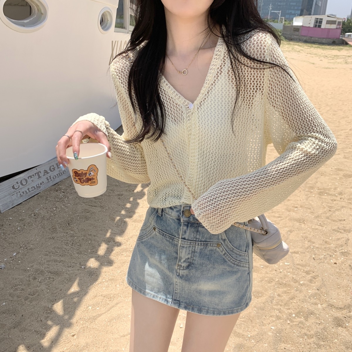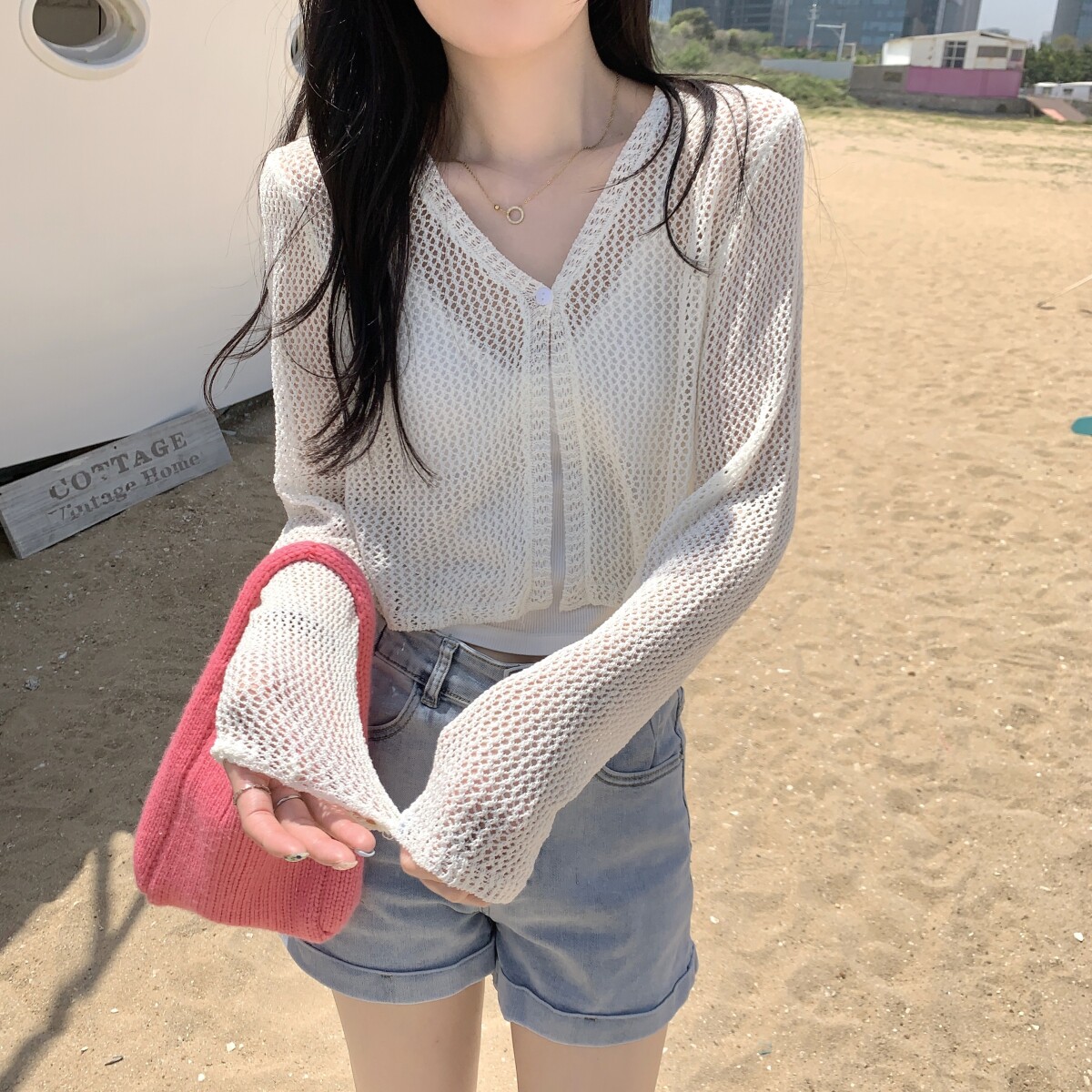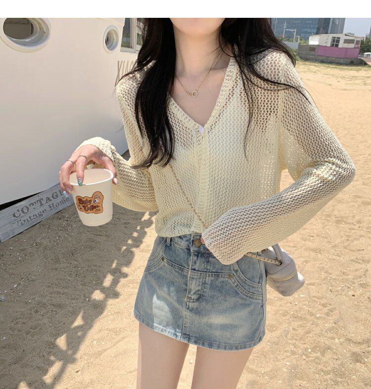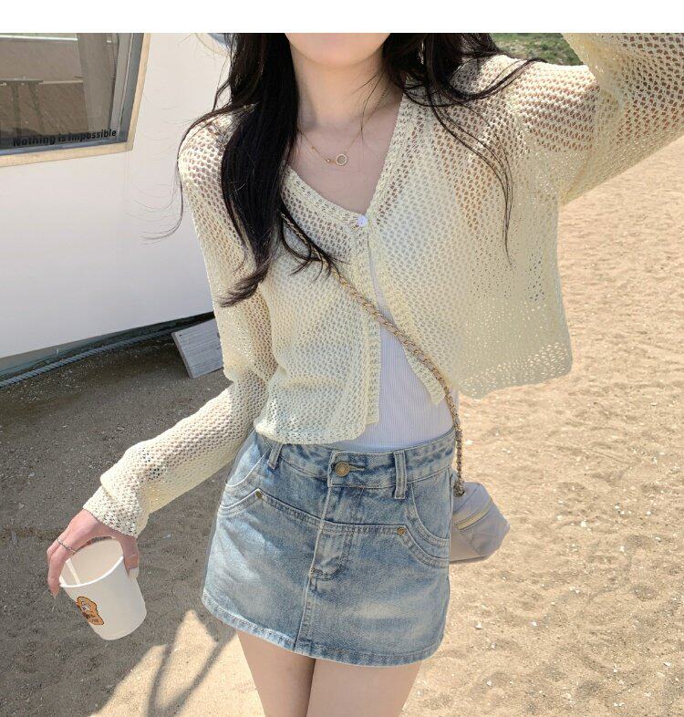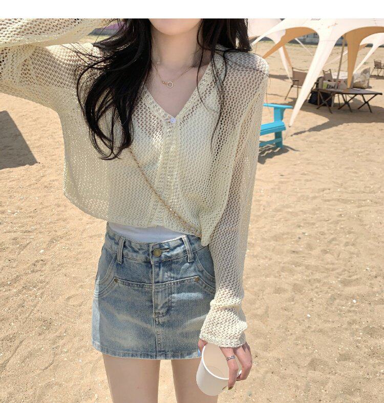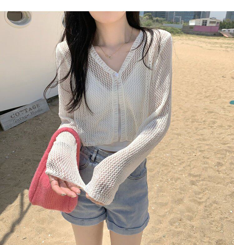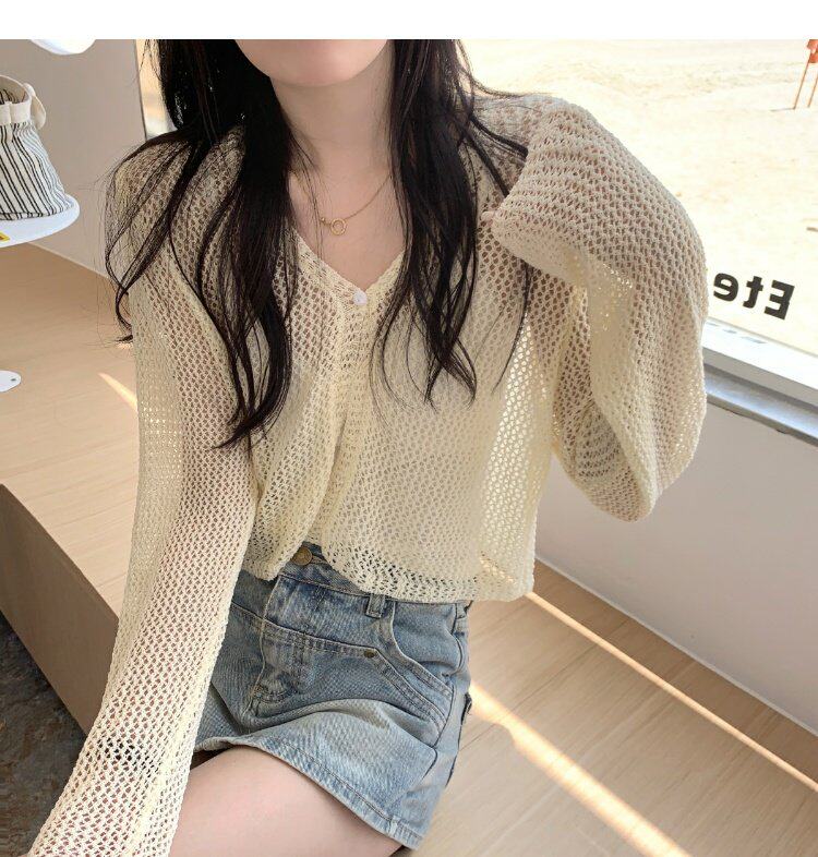 Шелковый летний тонкий кардиган, трикотажная рыболовная сеть, накидка, эффект подтяжки