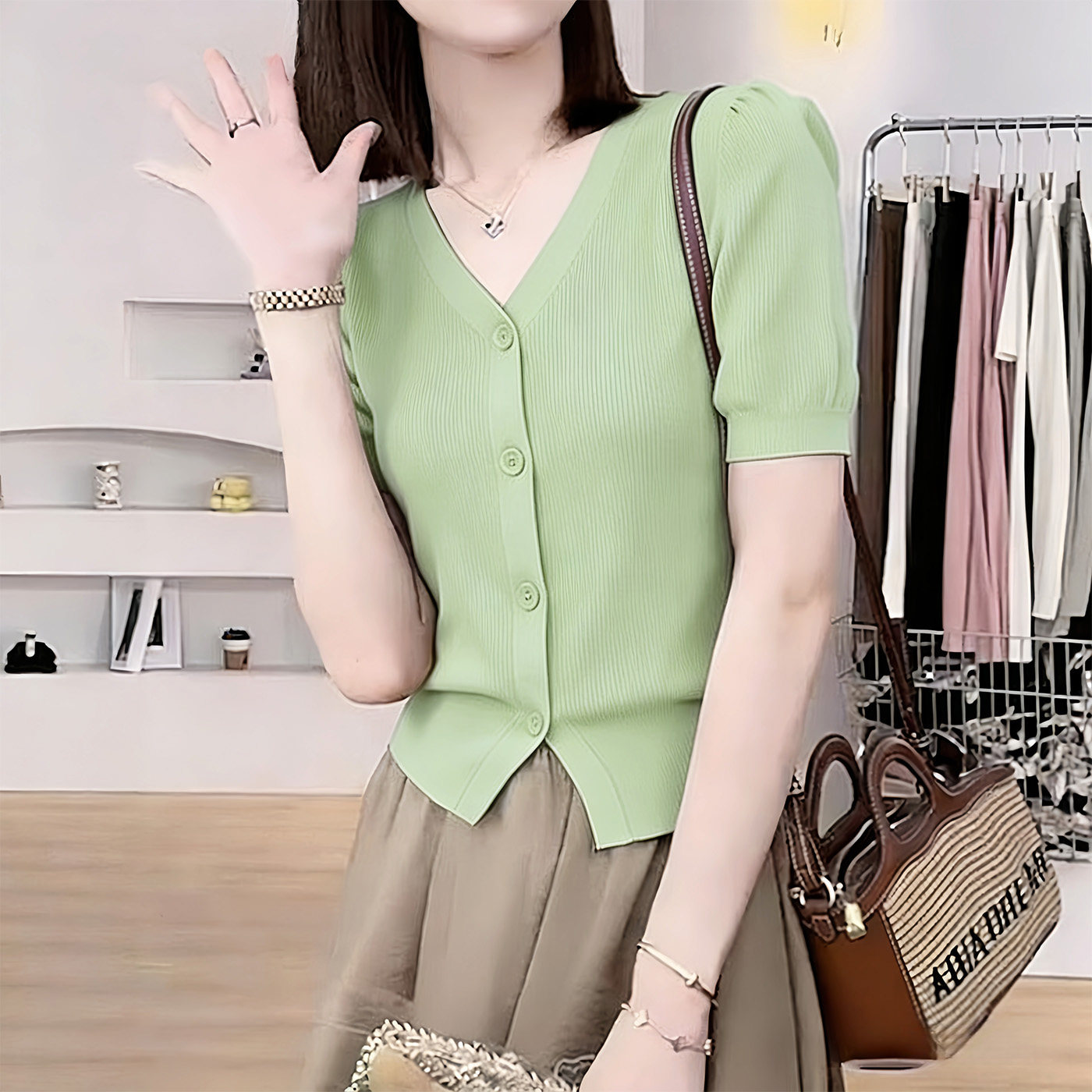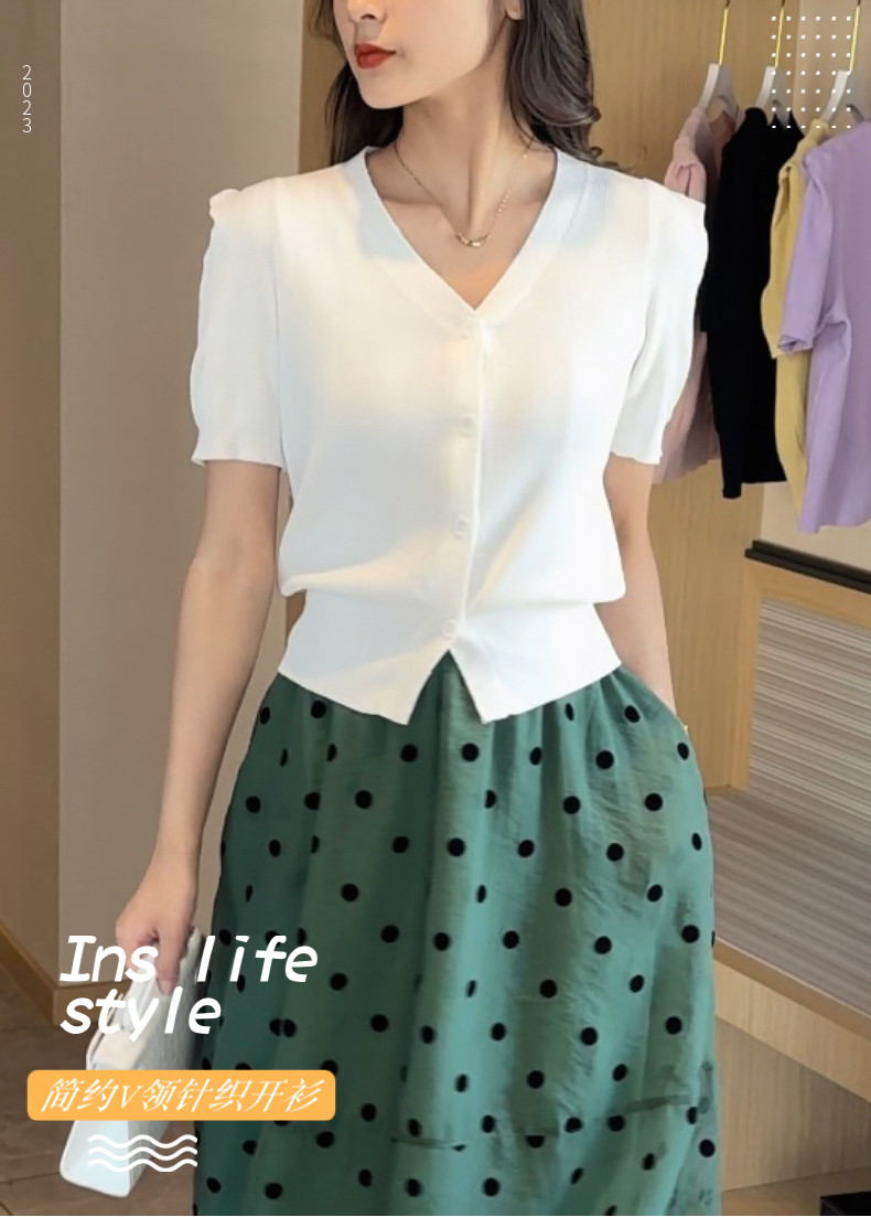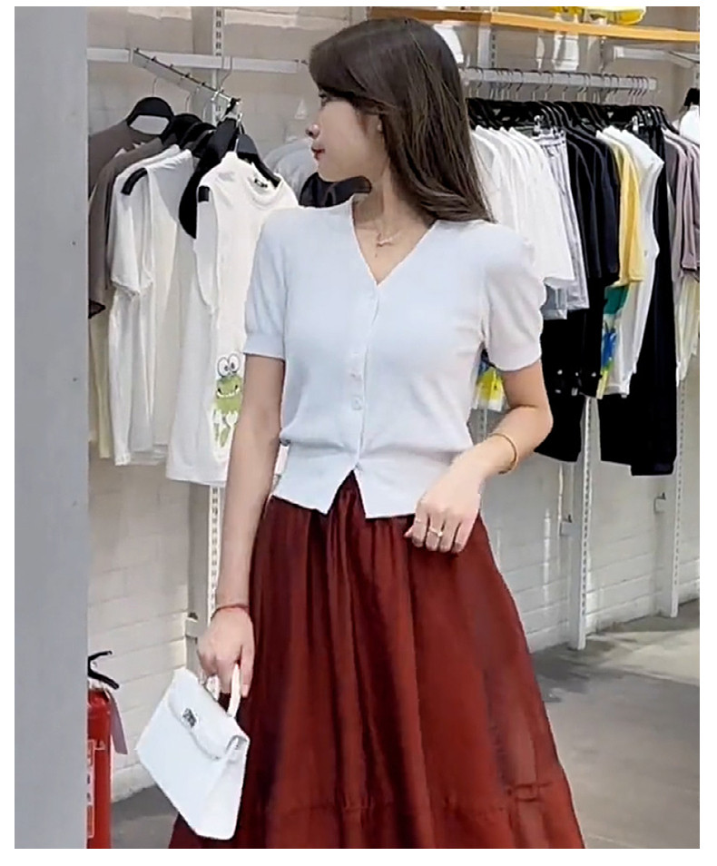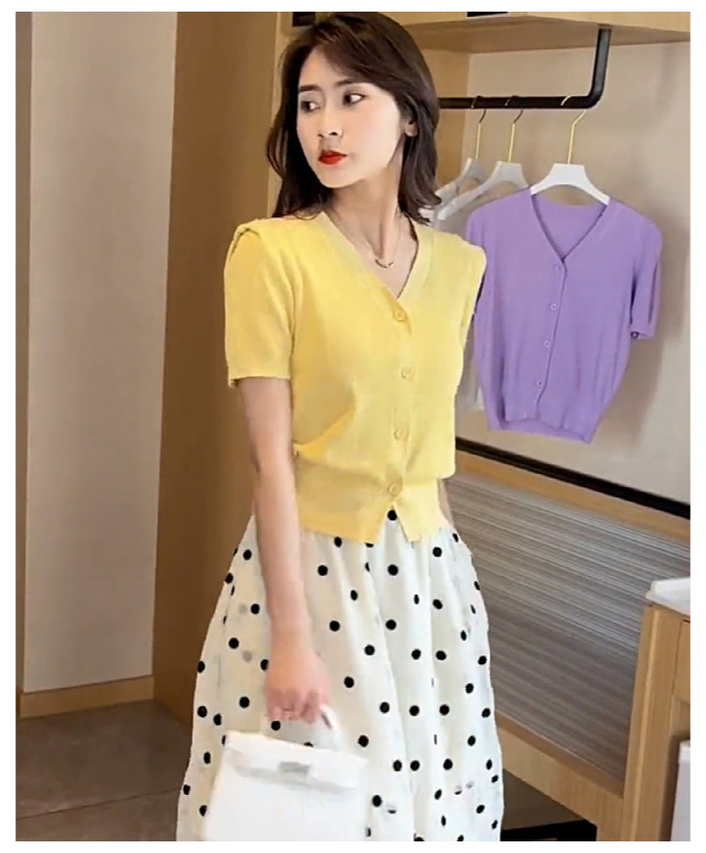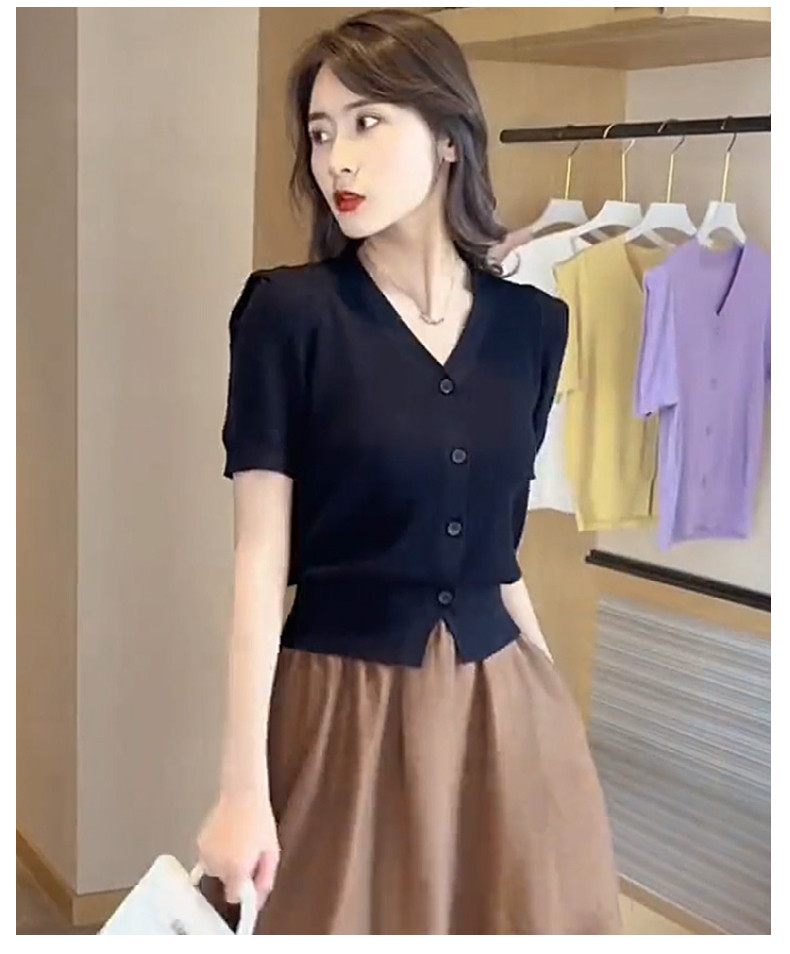 Летняя футболка с коротким рукавом, трикотажный короткий тонкий кардиган, короткий рукав, в западном стиле, в стиле Шанель