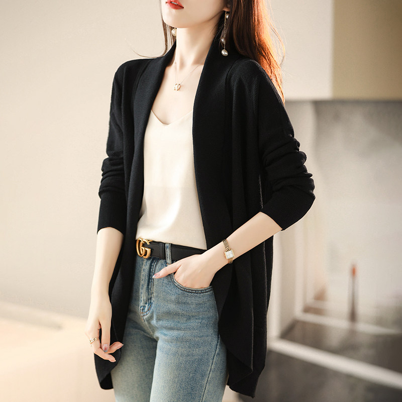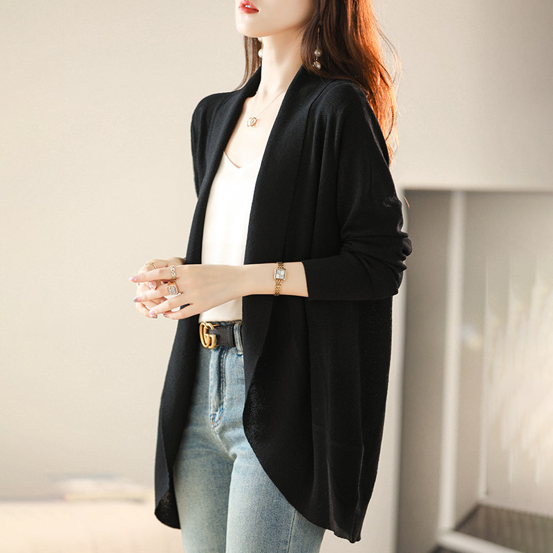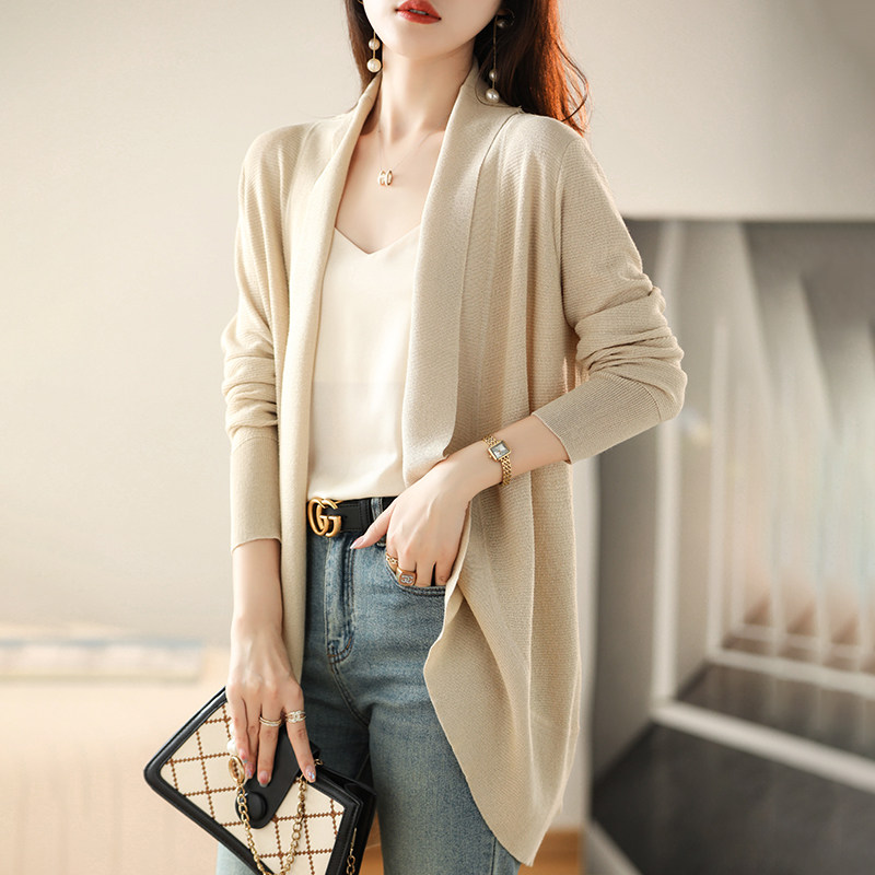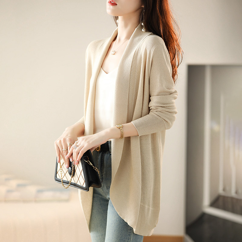 Летний длинный шелковый кардиган, трикотажная куртка, лонгслив, накидка, средней длины, V-образный вырез, защита от солнца, в западном стиле