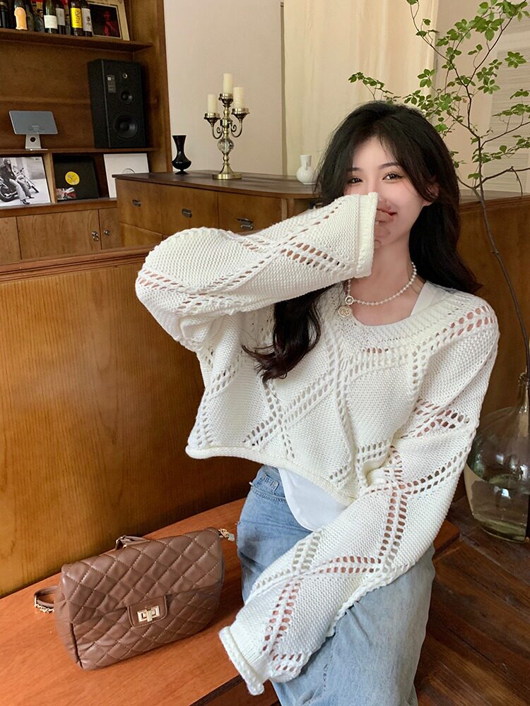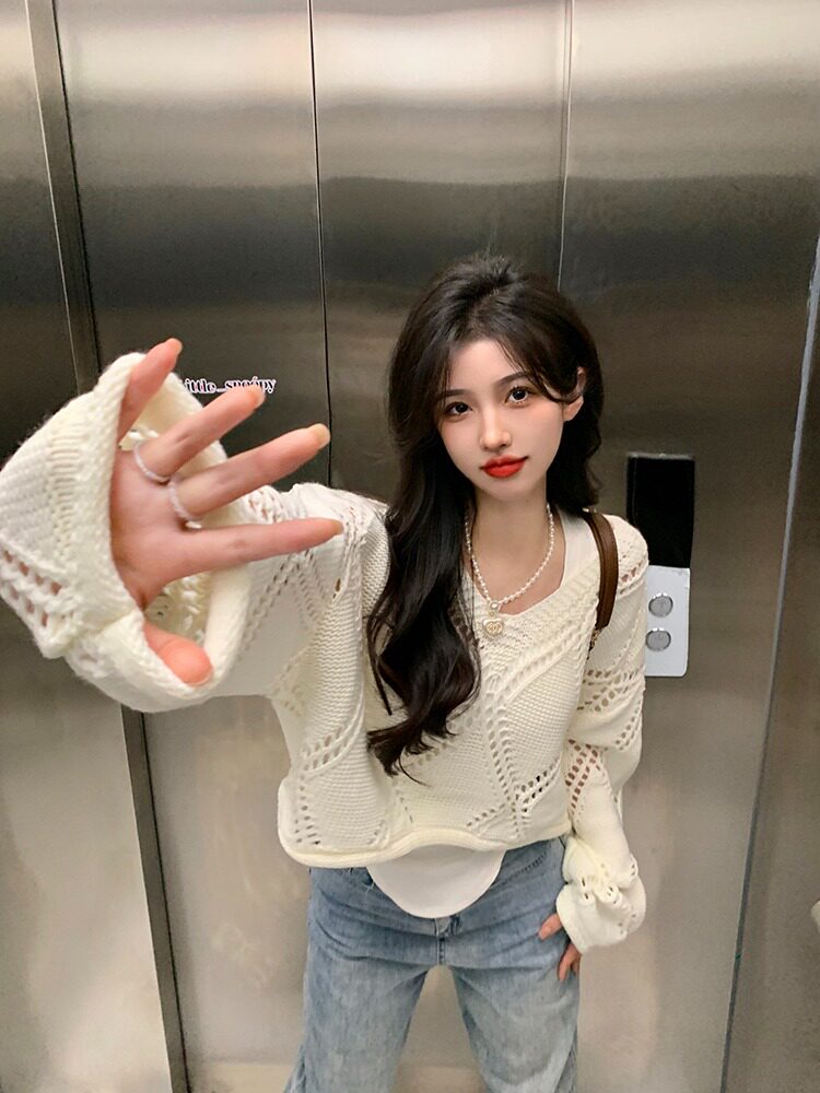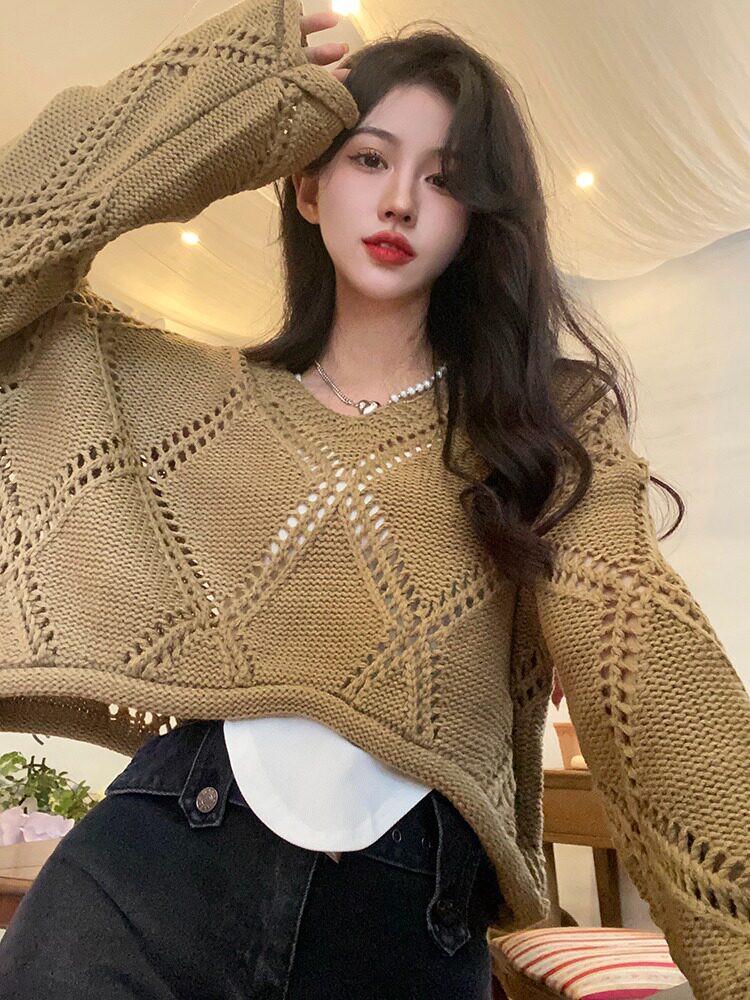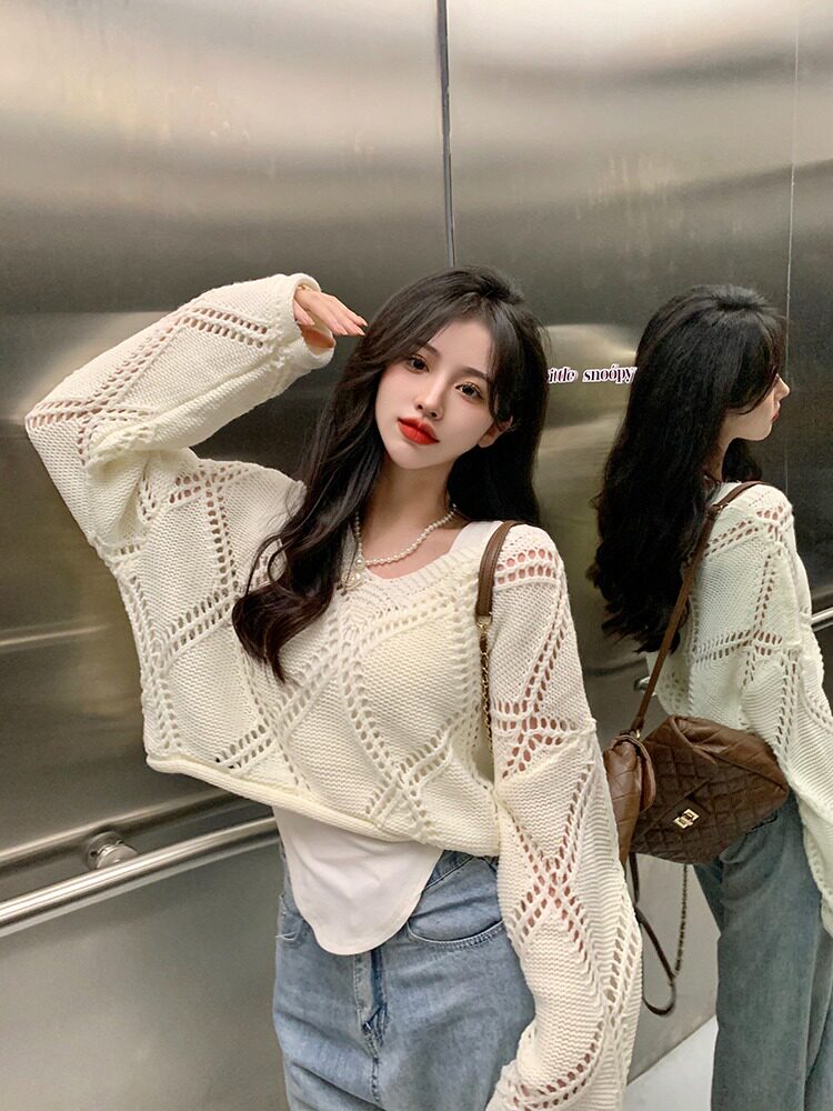 Весенний трикотажный лонгслив, свитер, в корейском стиле, подходит для подростков, оверсайз, в стиле Шанель