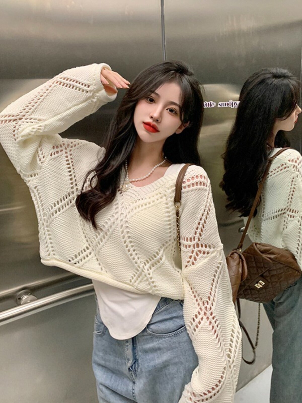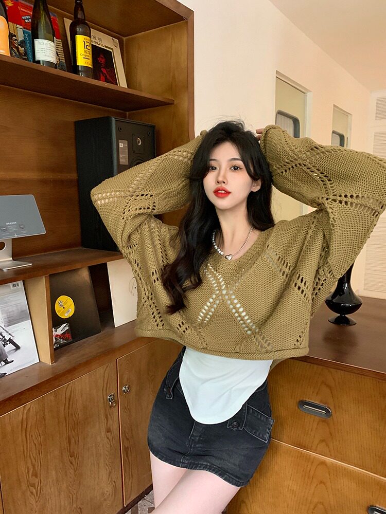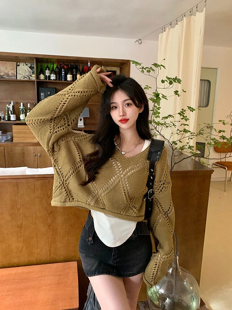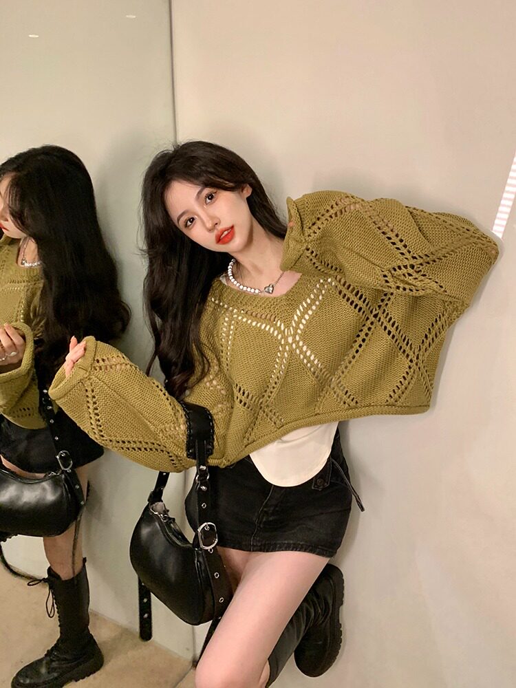 Весенний трикотажный лонгслив, свитер, в корейском стиле, подходит для подростков, оверсайз, в стиле Шанель