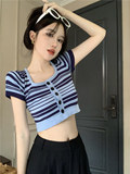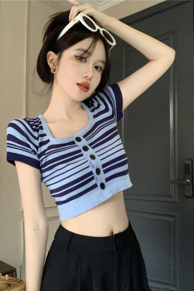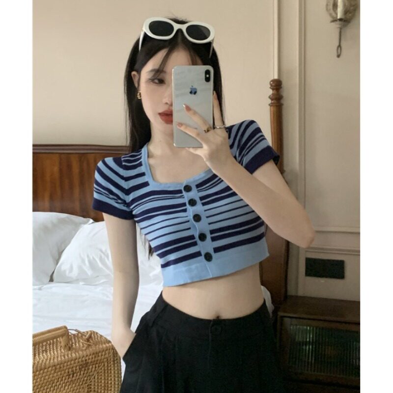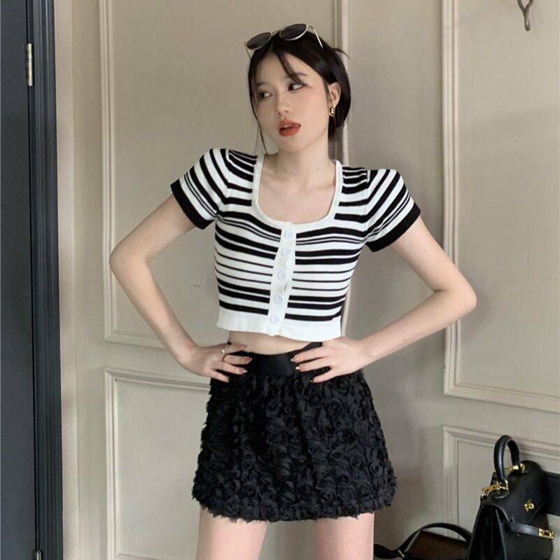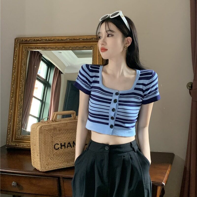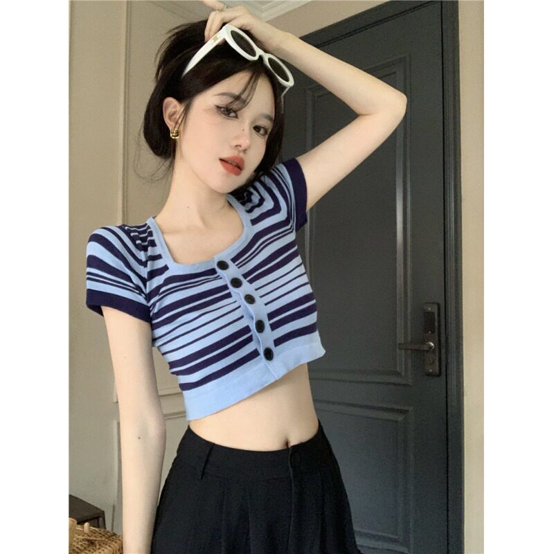 Короткая летняя футболка с коротким рукавом, кардиган, квадратный вырез, подходит для подростков