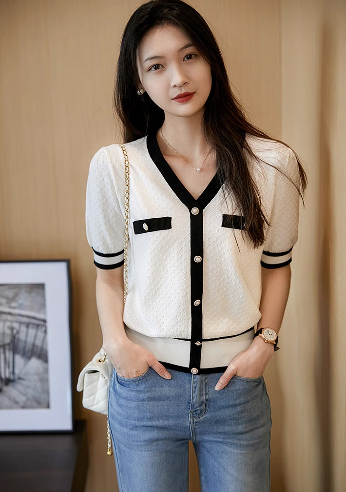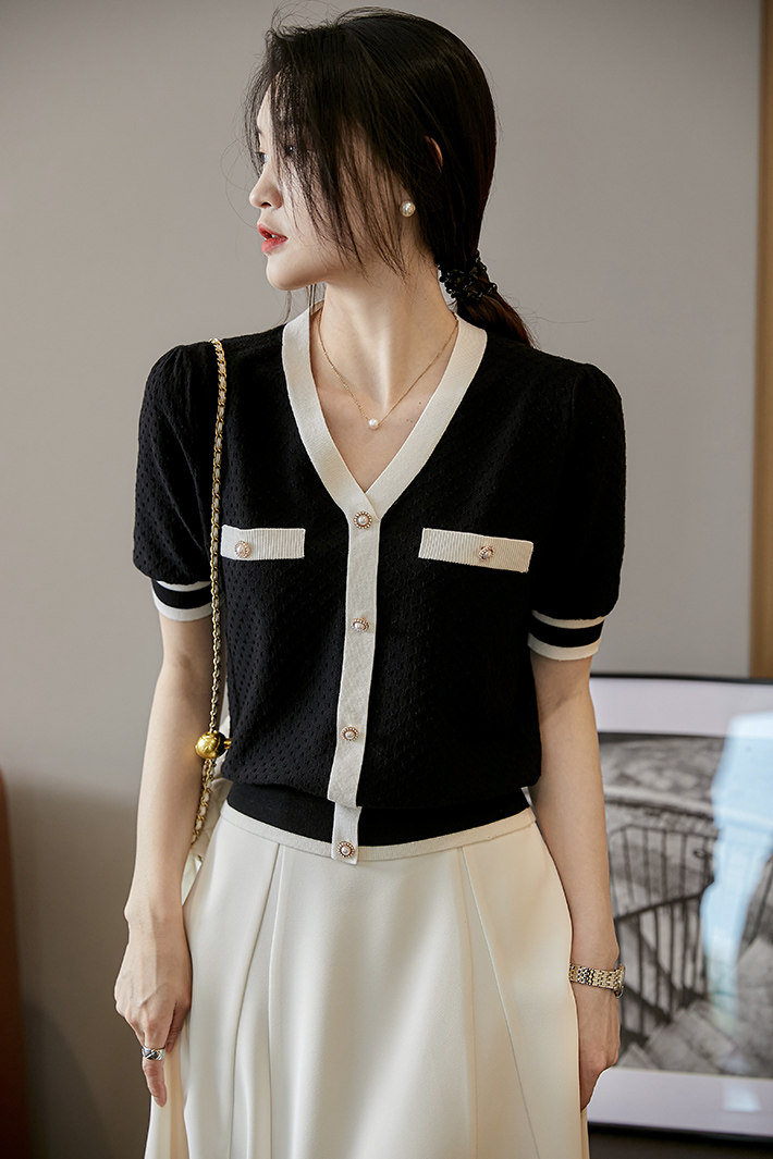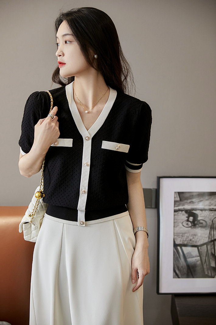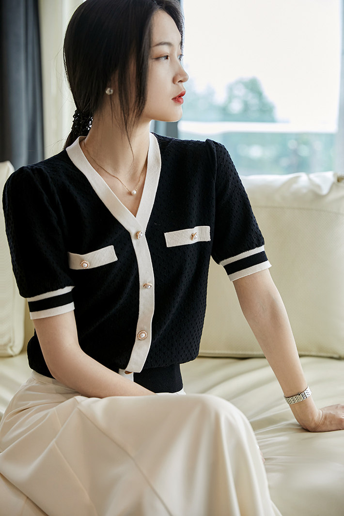 Xiaohan [Laiser+Sang Lili] Модный контраст!Французская текстура 16 -пин Сяосианс Свитер の