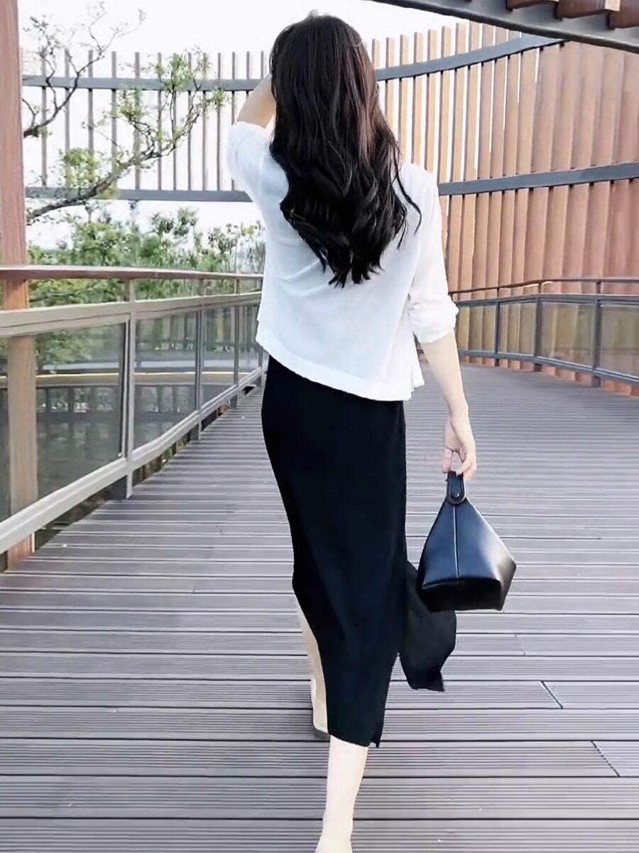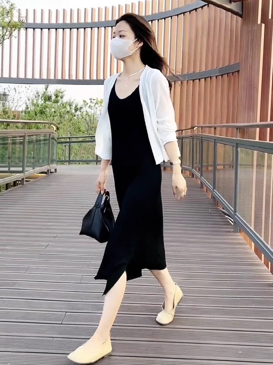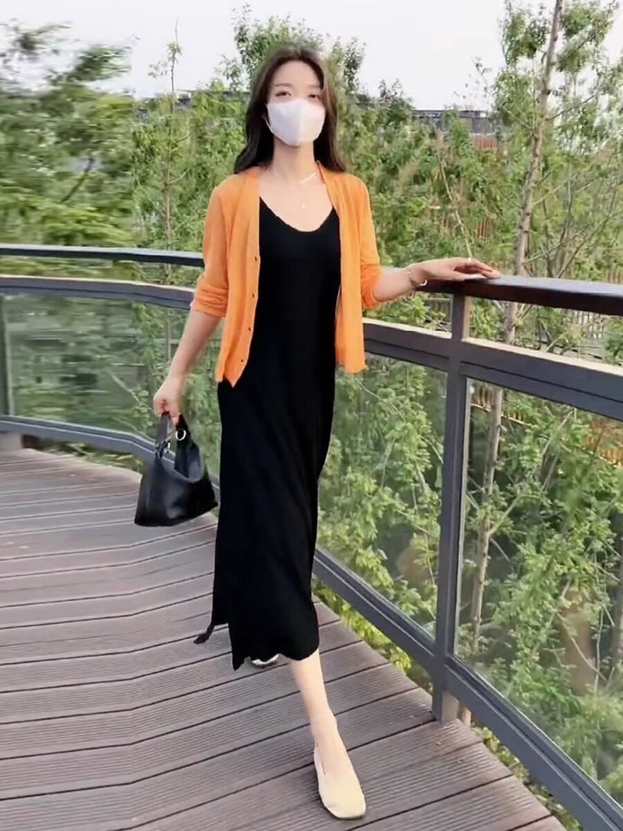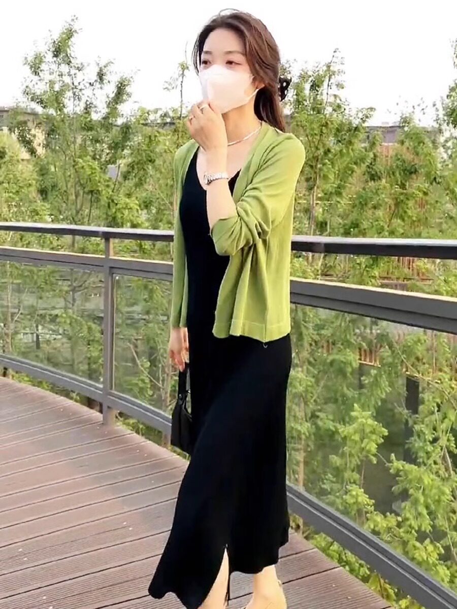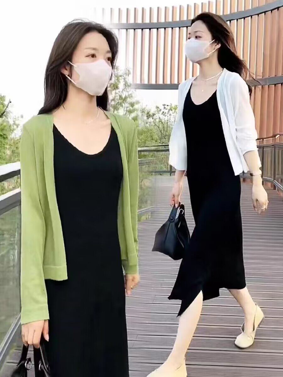 Платье, летний кардиган, шелковая трикотажная накидка, комплект, изысканный стиль