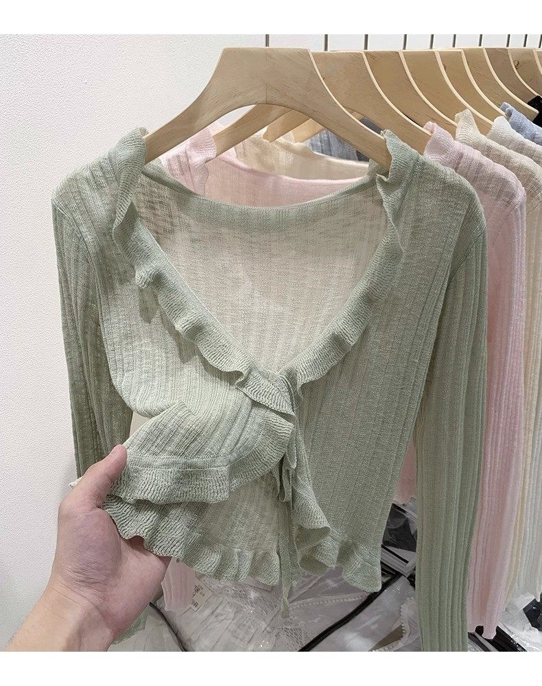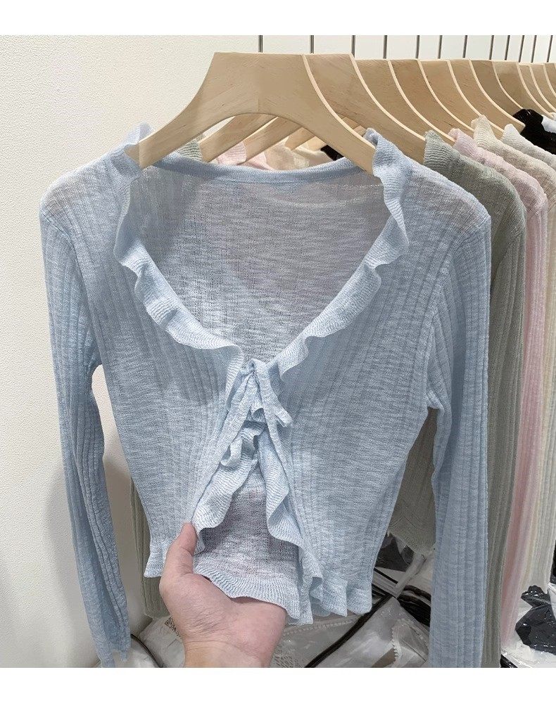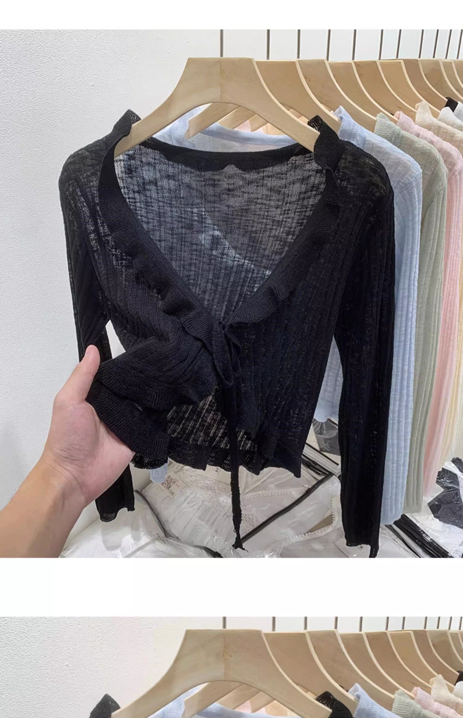 Трикотажный кардиган, демисезонный лонгслив, черная летняя рубашка, накидка, защита от солнца