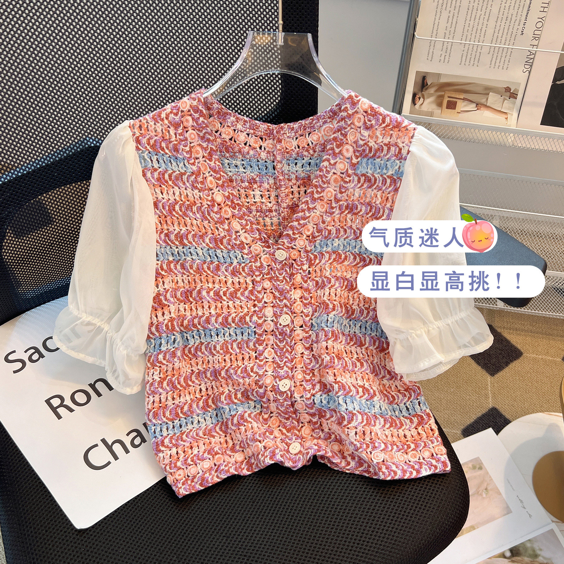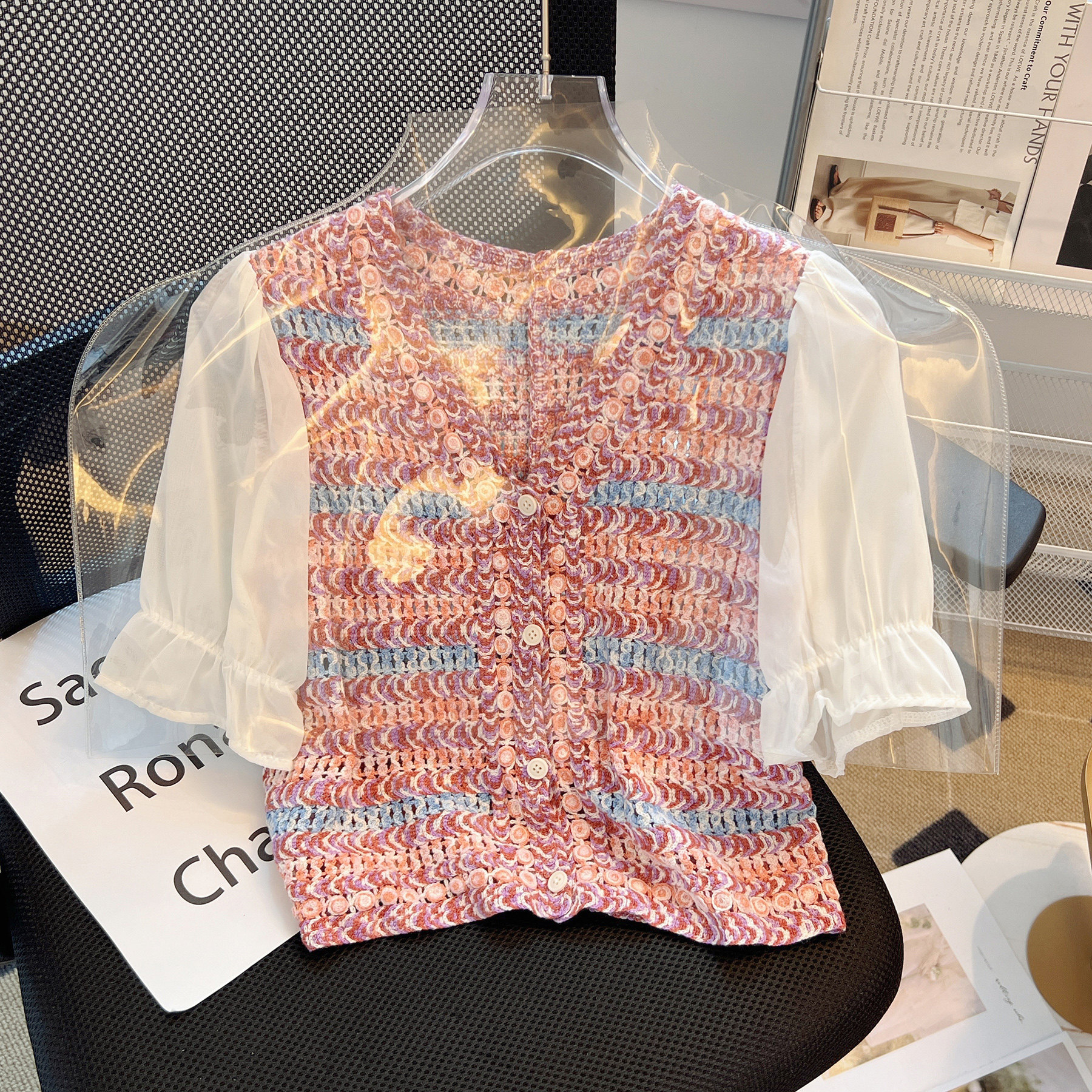 Тонкий кардиган, летняя одежда, шифоновая рубашка, французский стиль