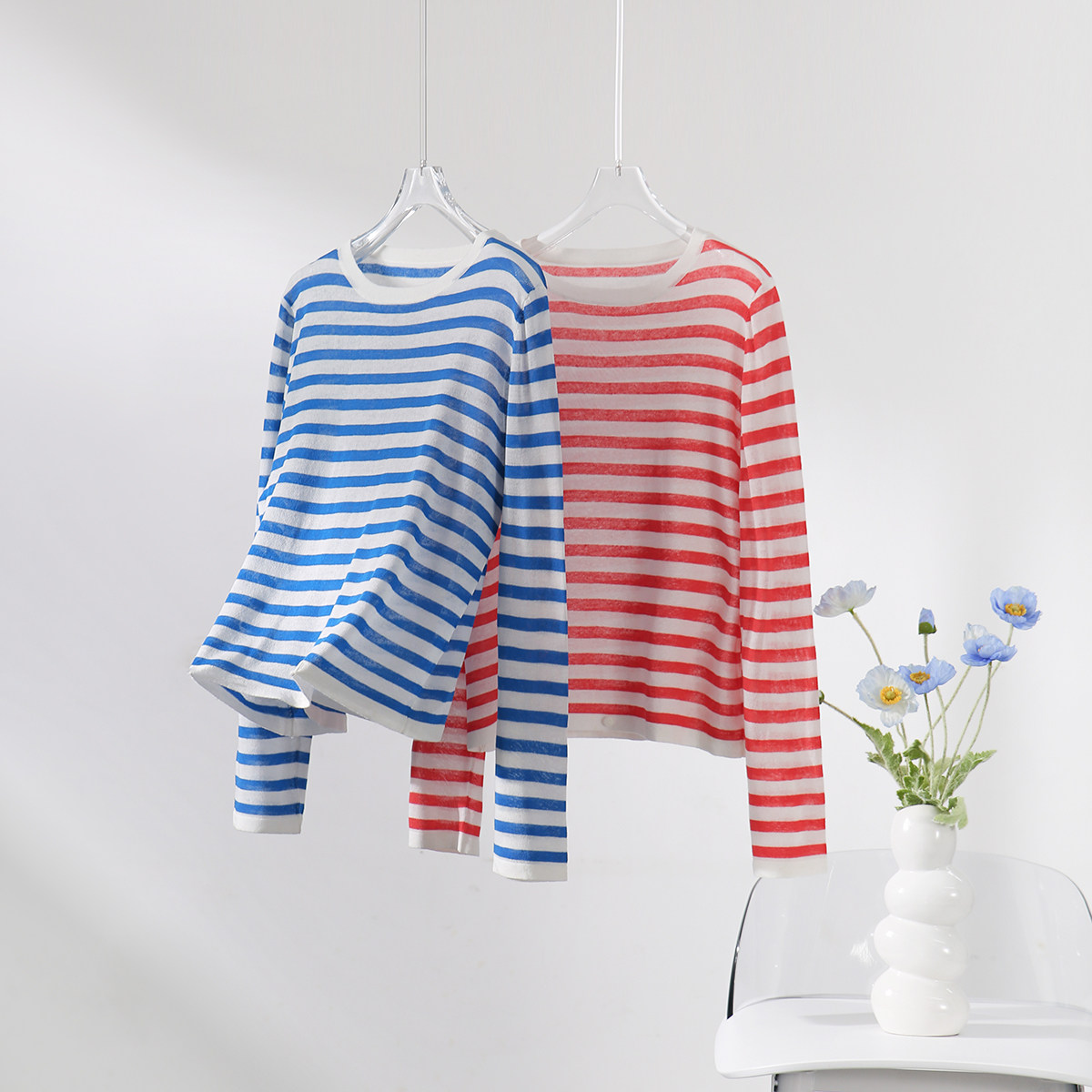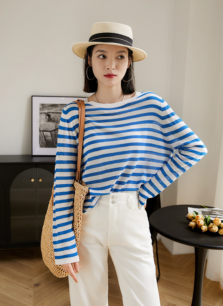 Трикотажный освежающий свитер, дышащий лонгслив с круглым воротником, защита от солнца