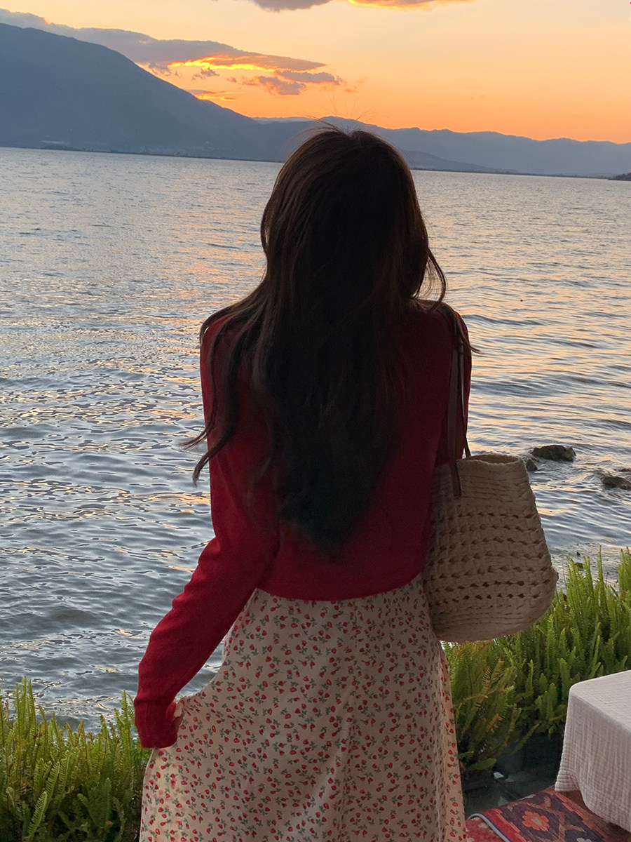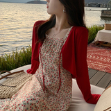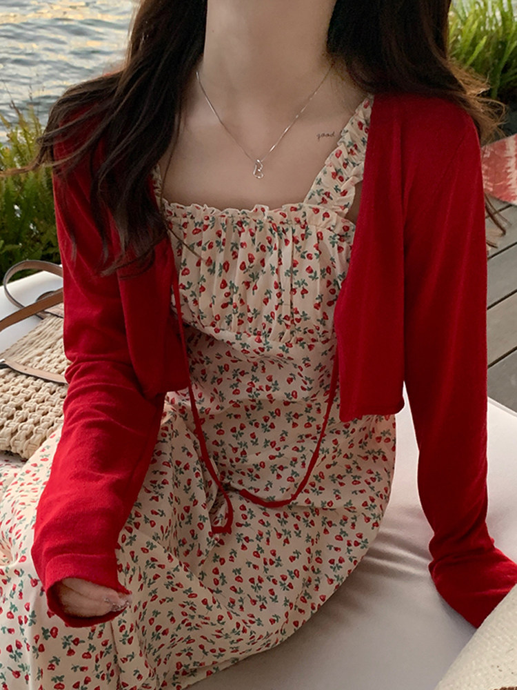 Красный трикотажный тонкий летний кардиган, жилет, куртка, платье-комбинация