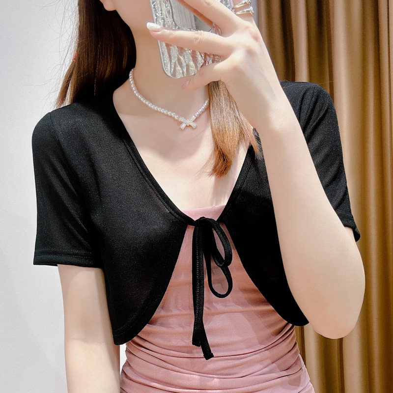 Шелковая короткая накидка, летний тонкий кардиган, трикотажный жилет, защита от солнца
