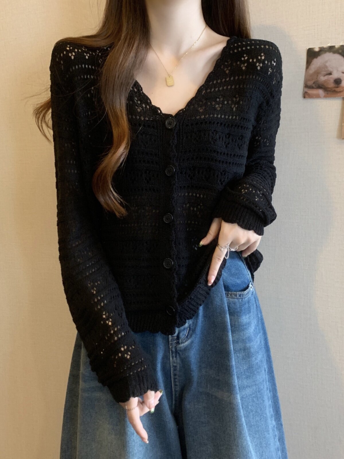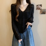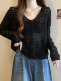 Шелковый трикотажный кардиган, черная тонкая накидка, куртка, большой размер, V-образный вырез