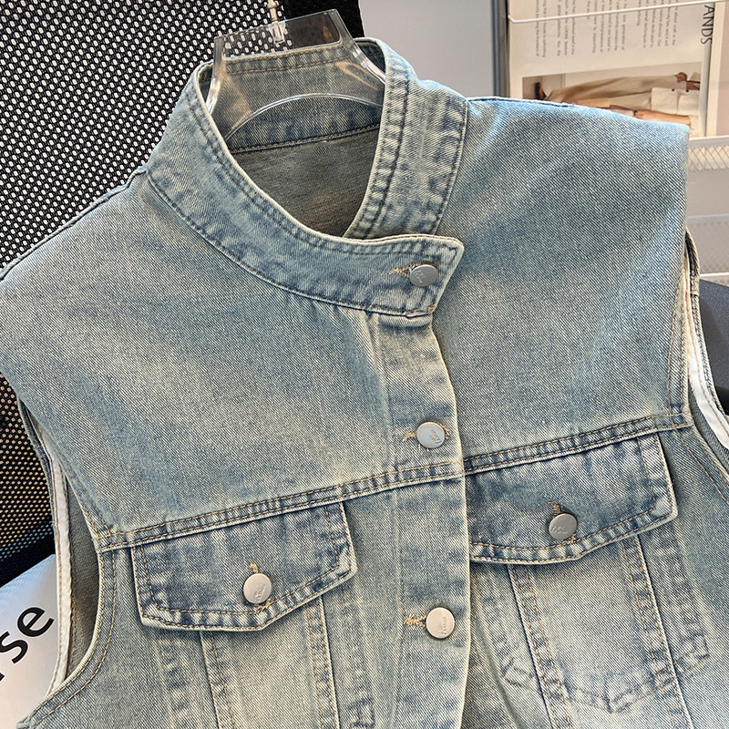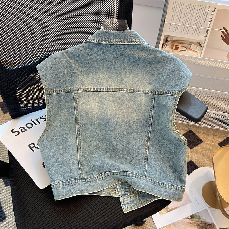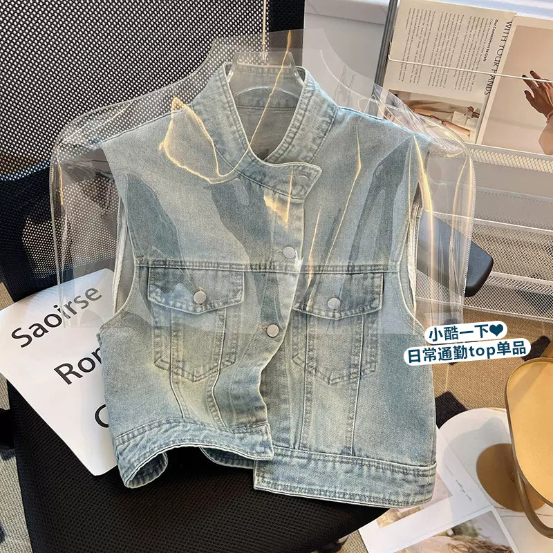 Ретро летний тонкий атмосферный жилет, джинсовая куртка без рукавов