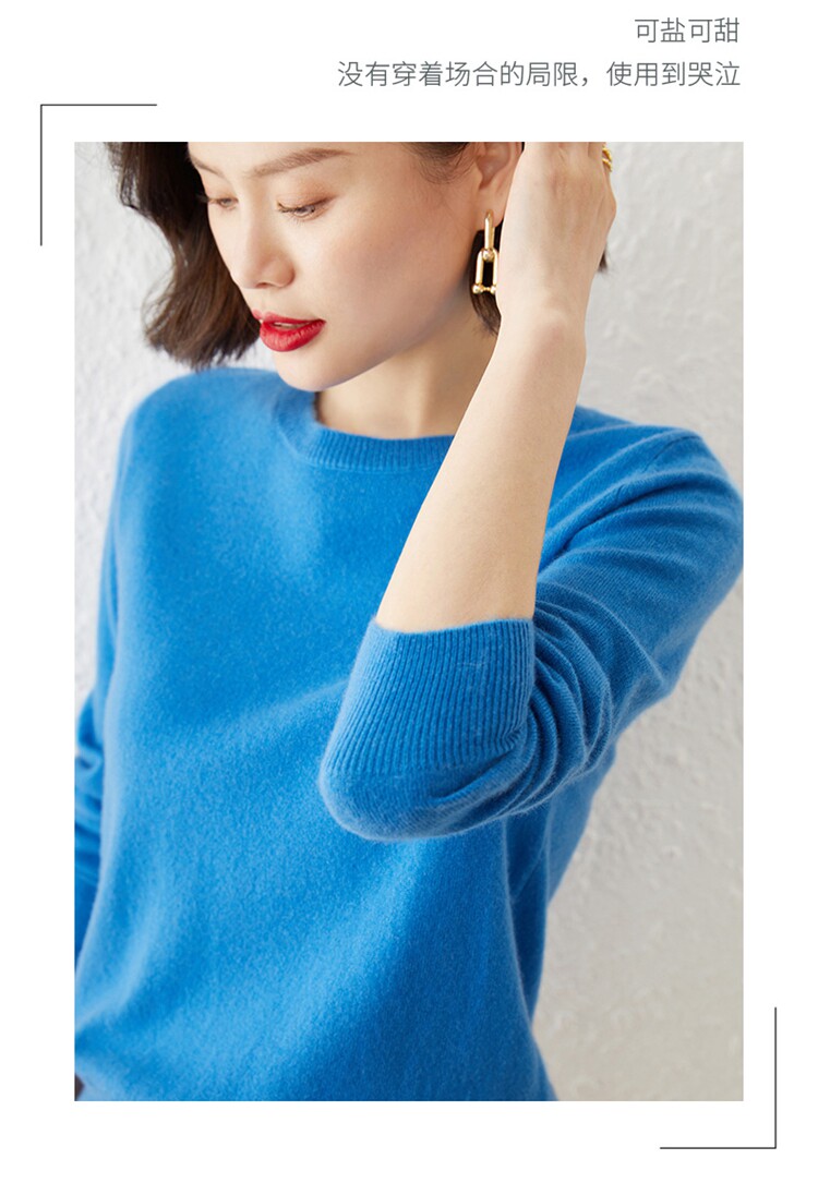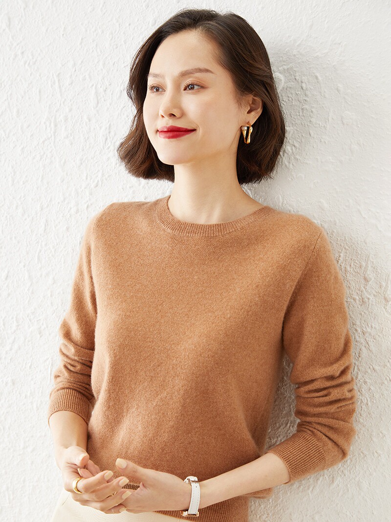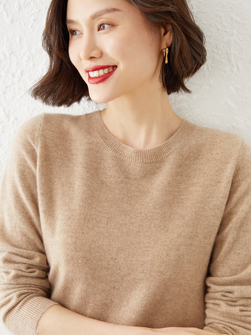 Свитер, кашемировая трикотажная шерстяная утепленный лонгслив с круглым воротником, облегающий крой