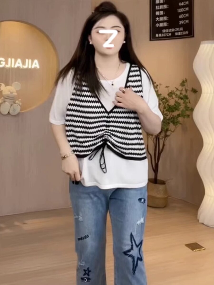 Комплект, трикотажная летняя футболка, большой размер, на шнурках, короткий рукав