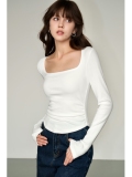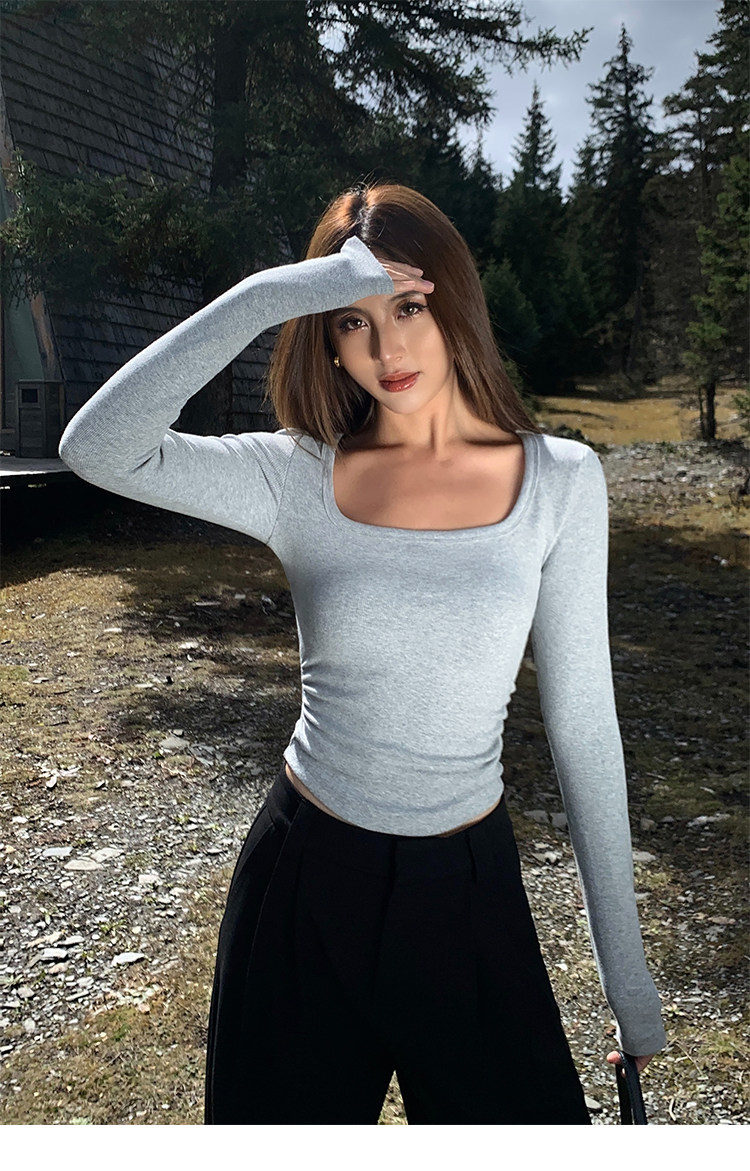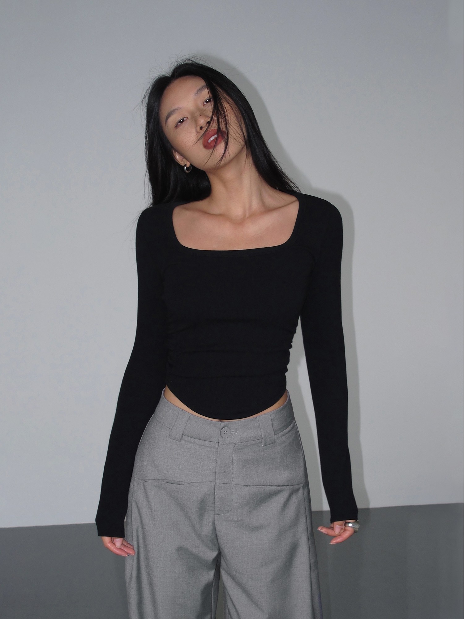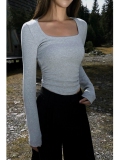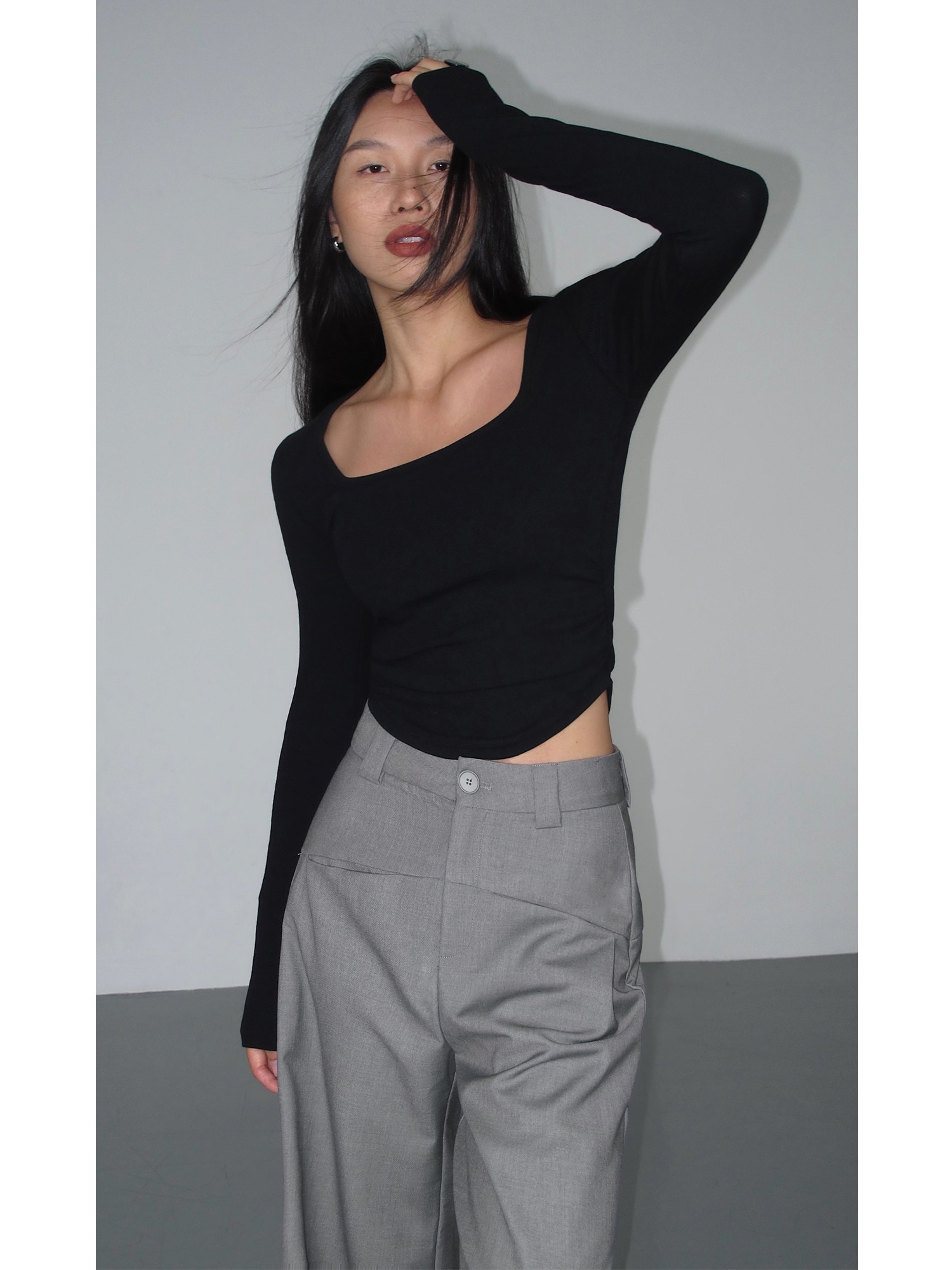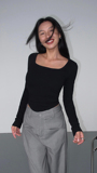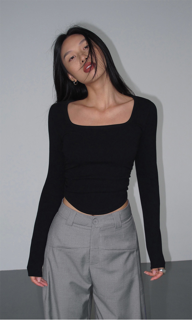 Черный трикотажный лонгслив, приталенный корсет, квадратный вырез