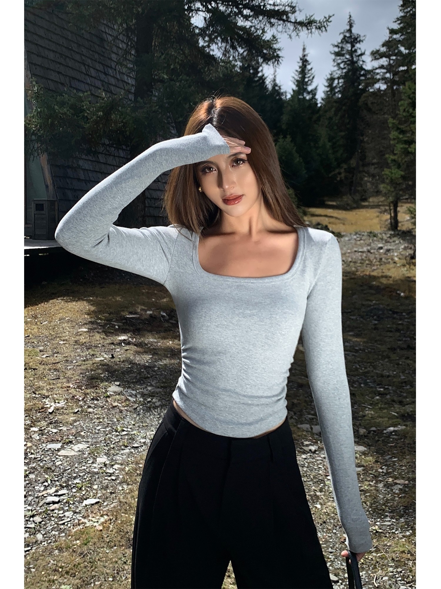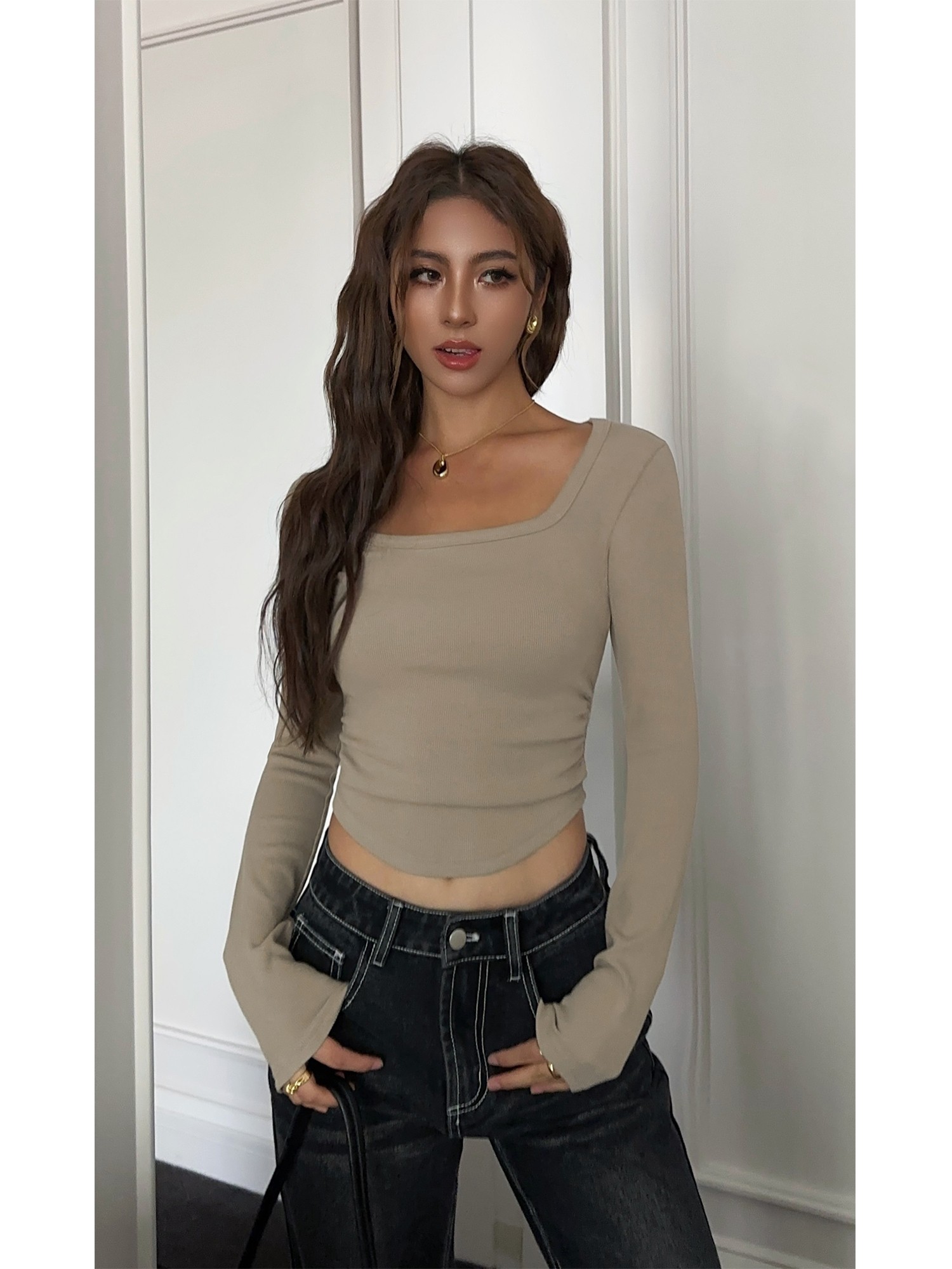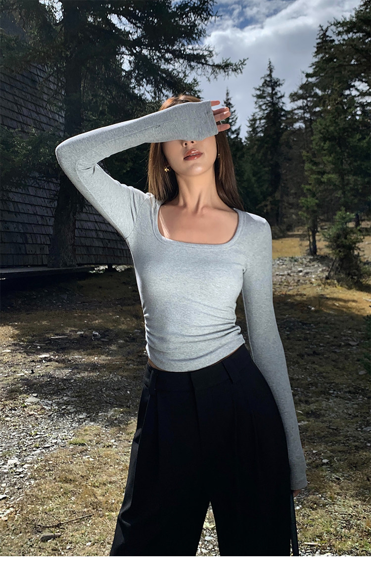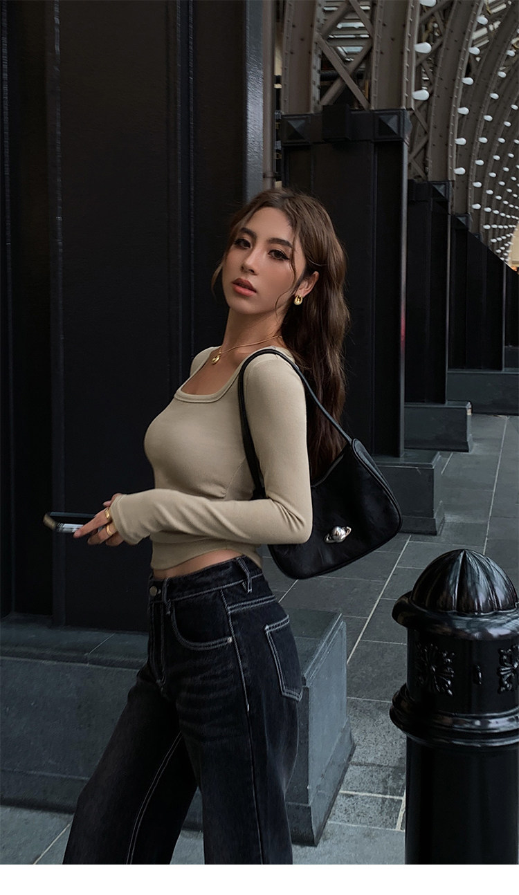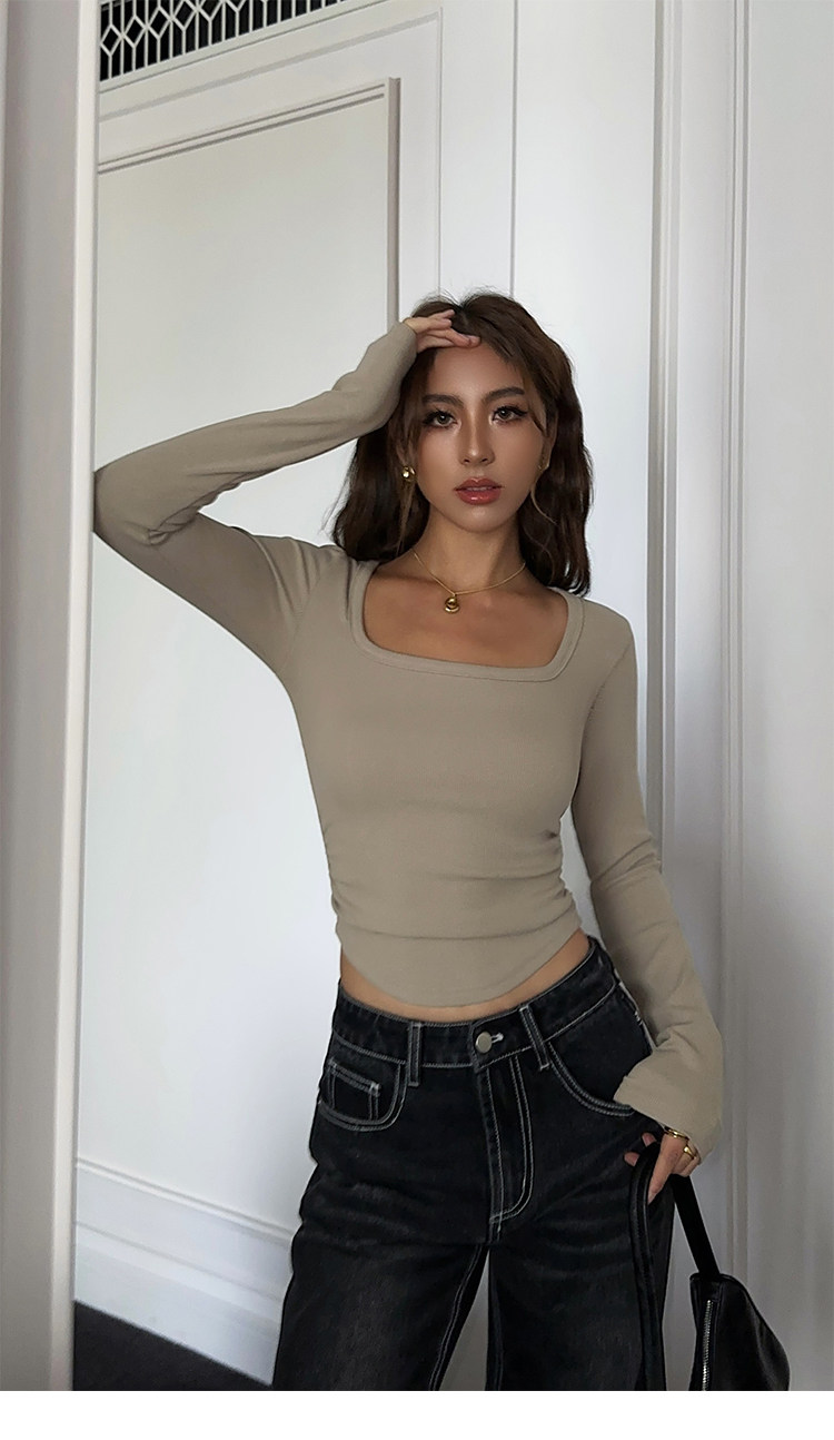 Черный трикотажный лонгслив, приталенный корсет, квадратный вырез