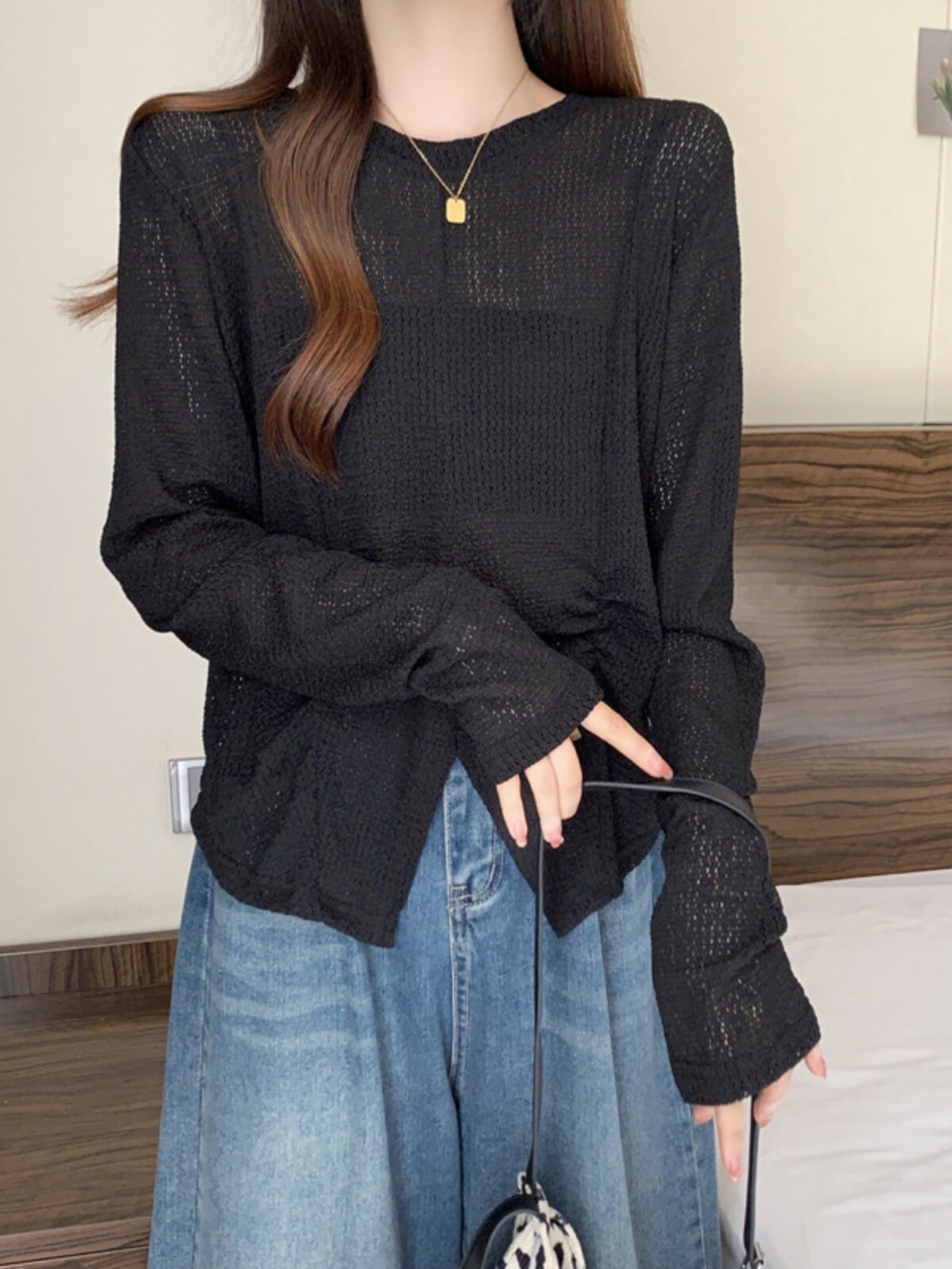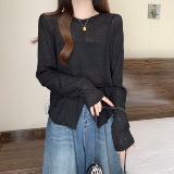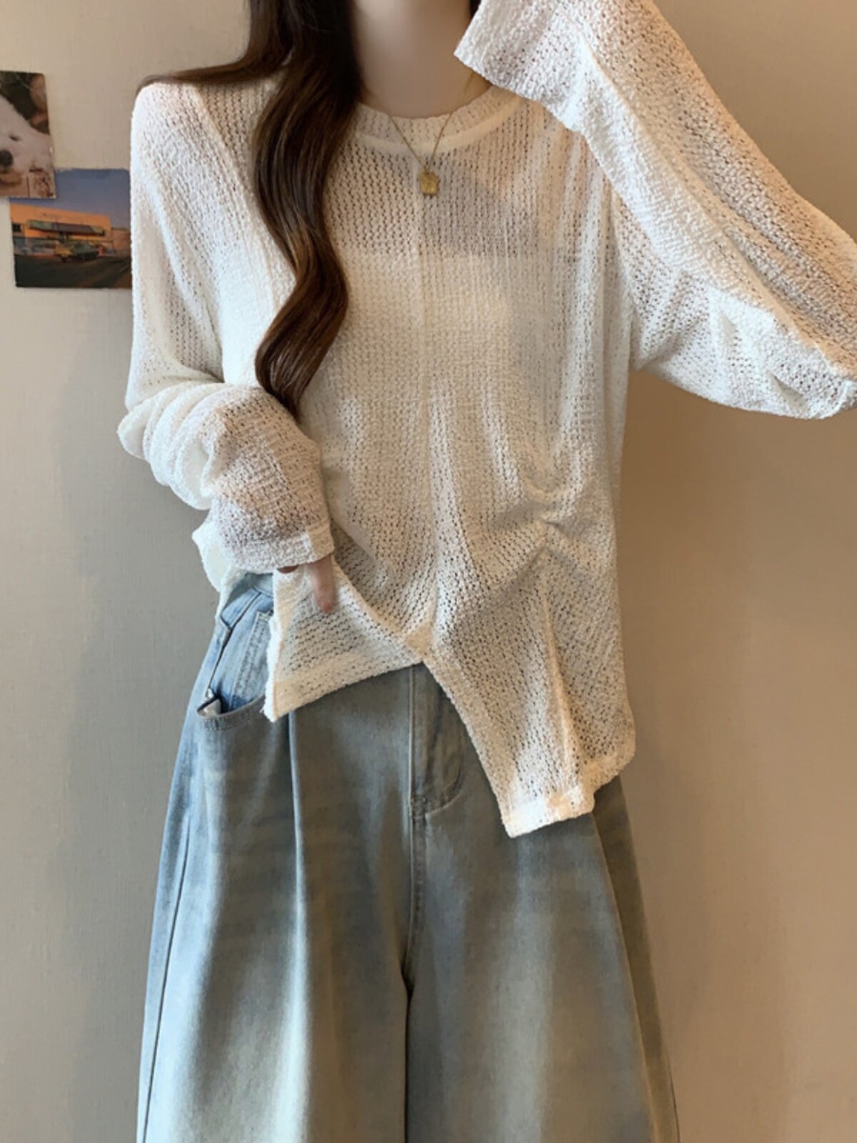 Полая солнцезащитная блузка для женщин Большой размер жир мм. Свободный летний тонкий ледяной шелк вязаный белый нерегуляр
