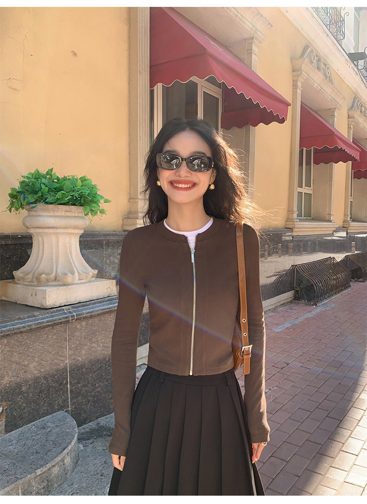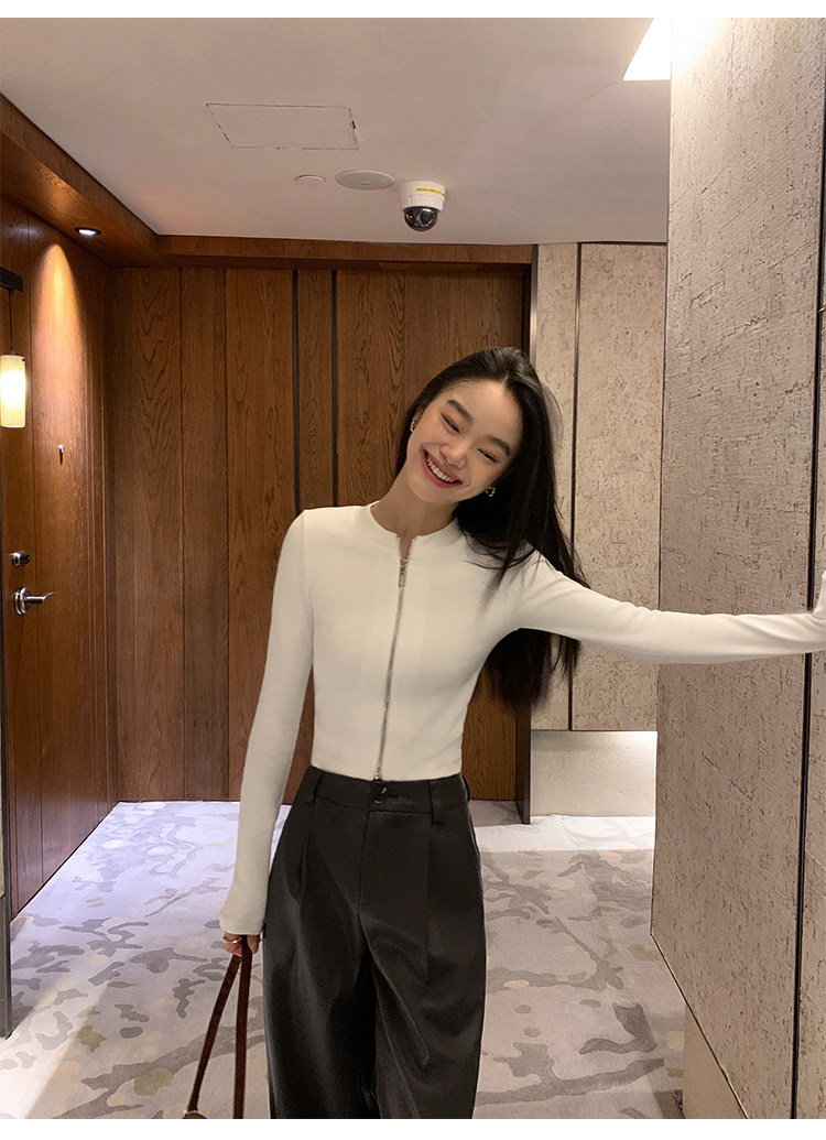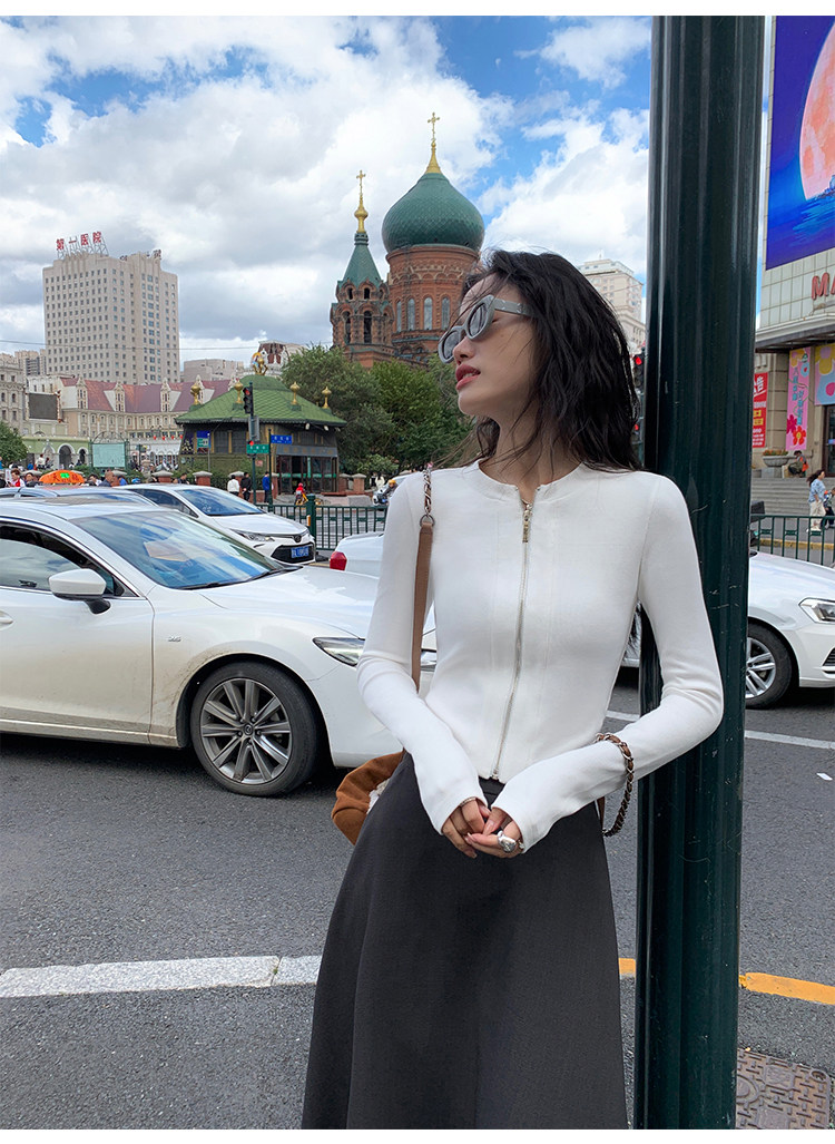 Трикотажный кардиган, приталенная дизайнерская куртка с молнией, изысканный стиль, яркий броский стиль, тренд сезона