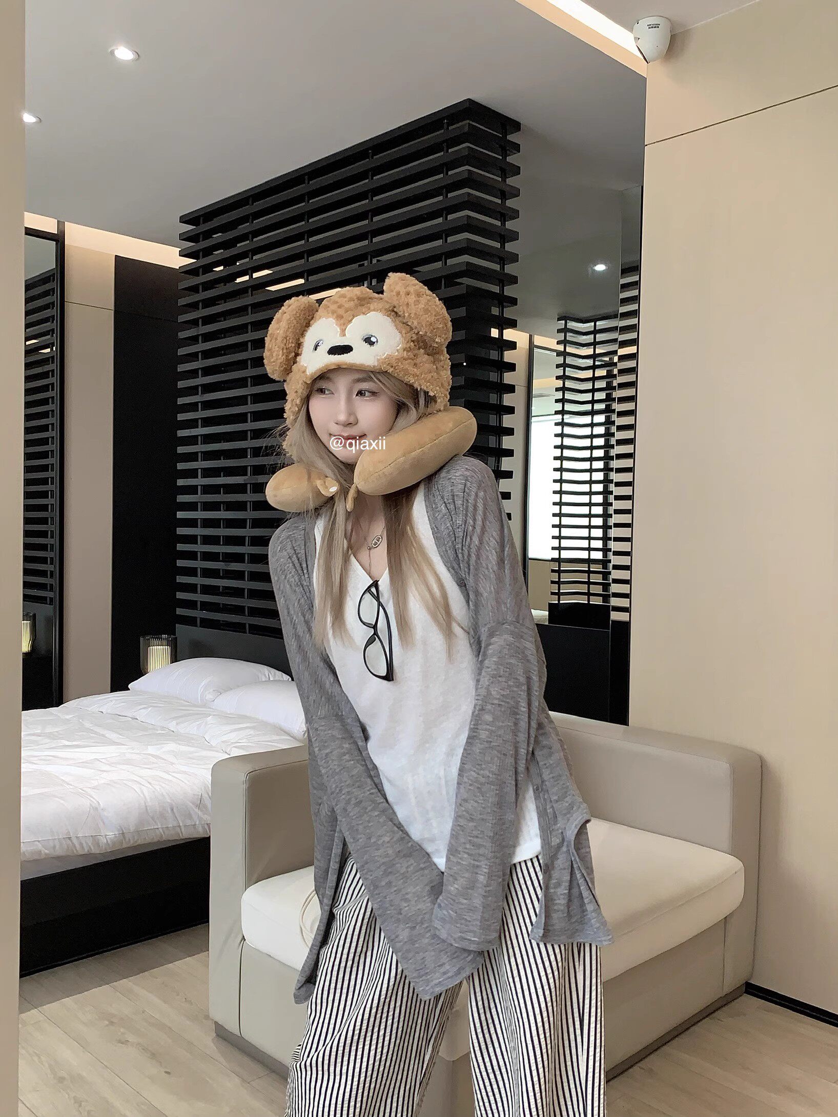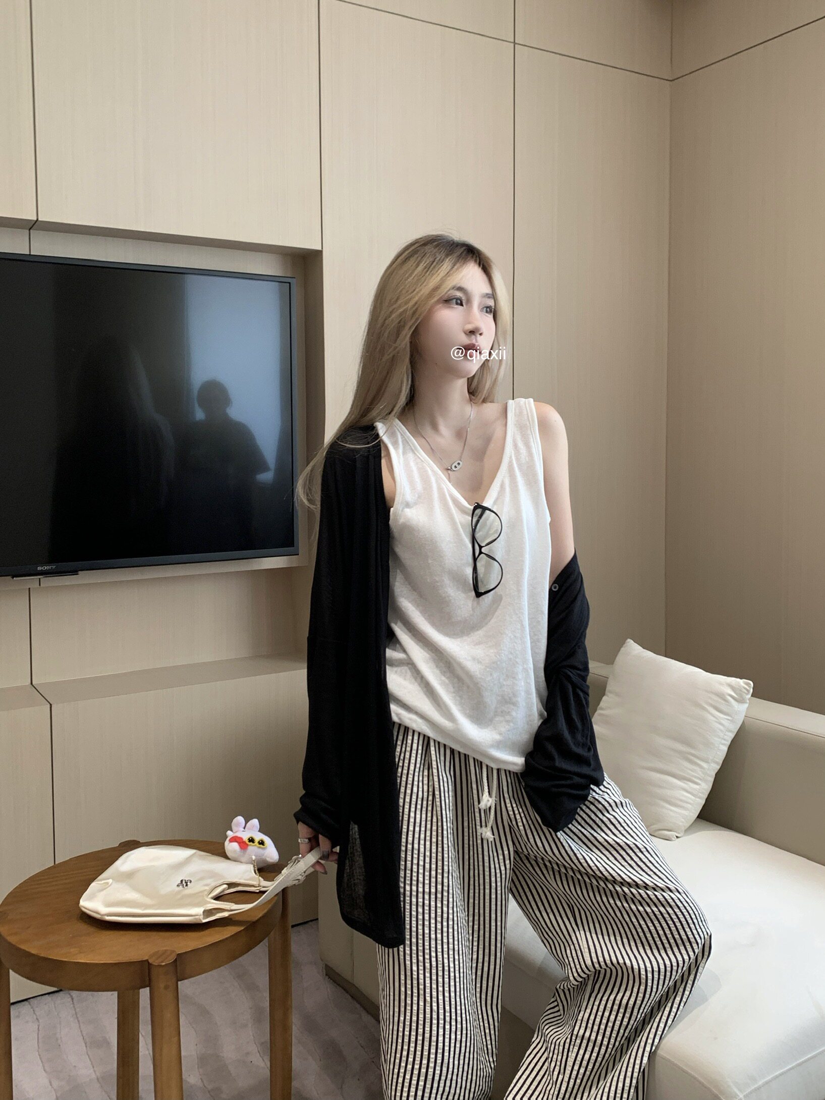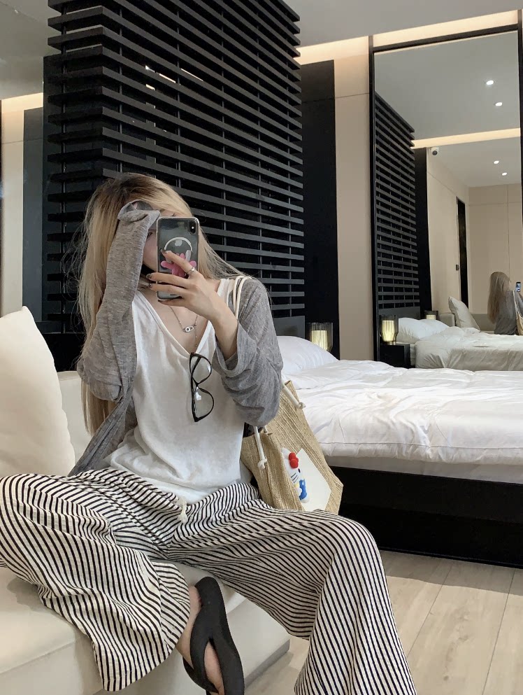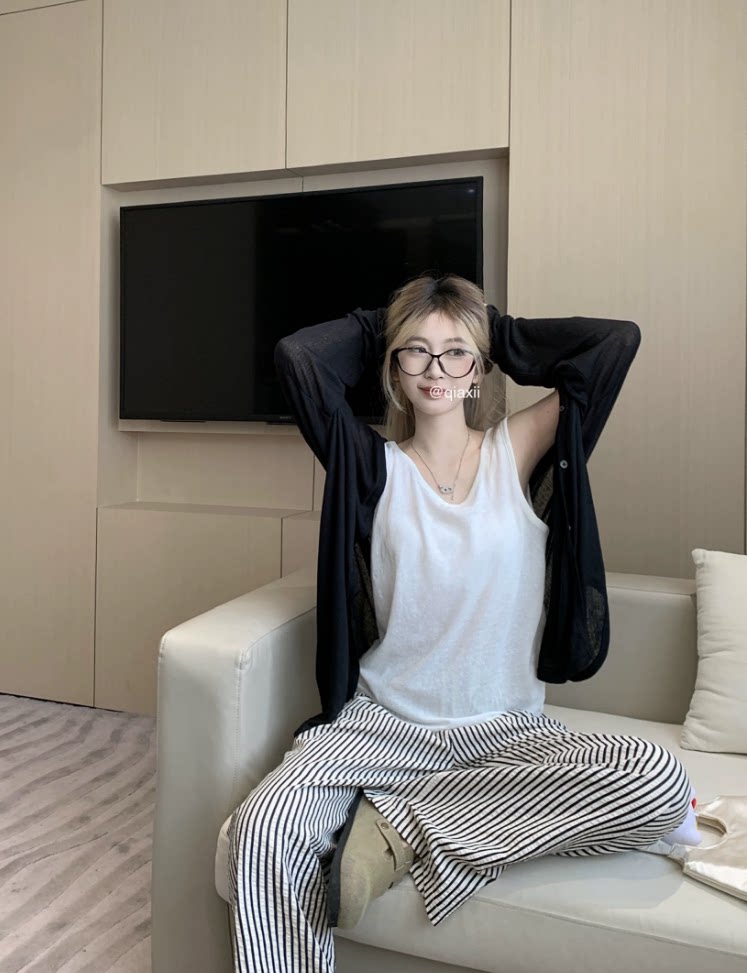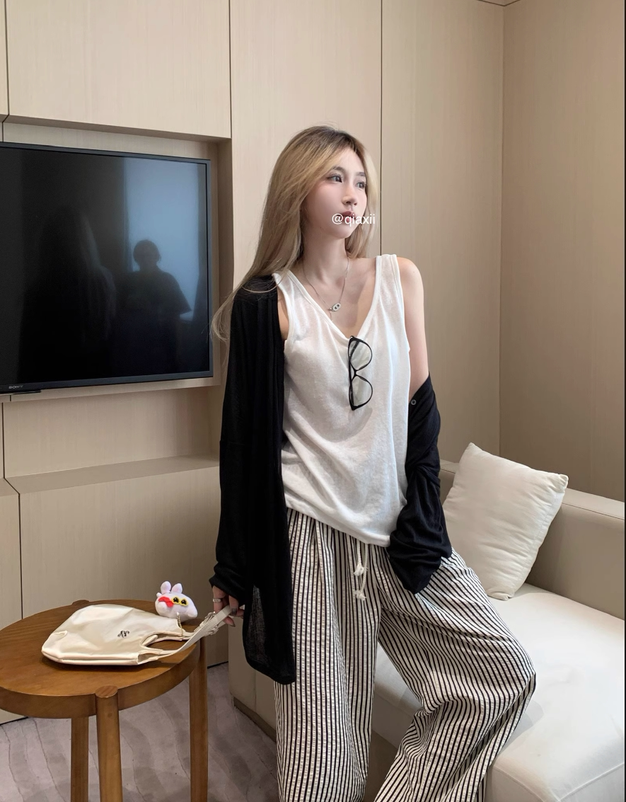 | Цвет: | Серый кардиган, Черный кардиган, Белый жилет, Полосатые брюки |